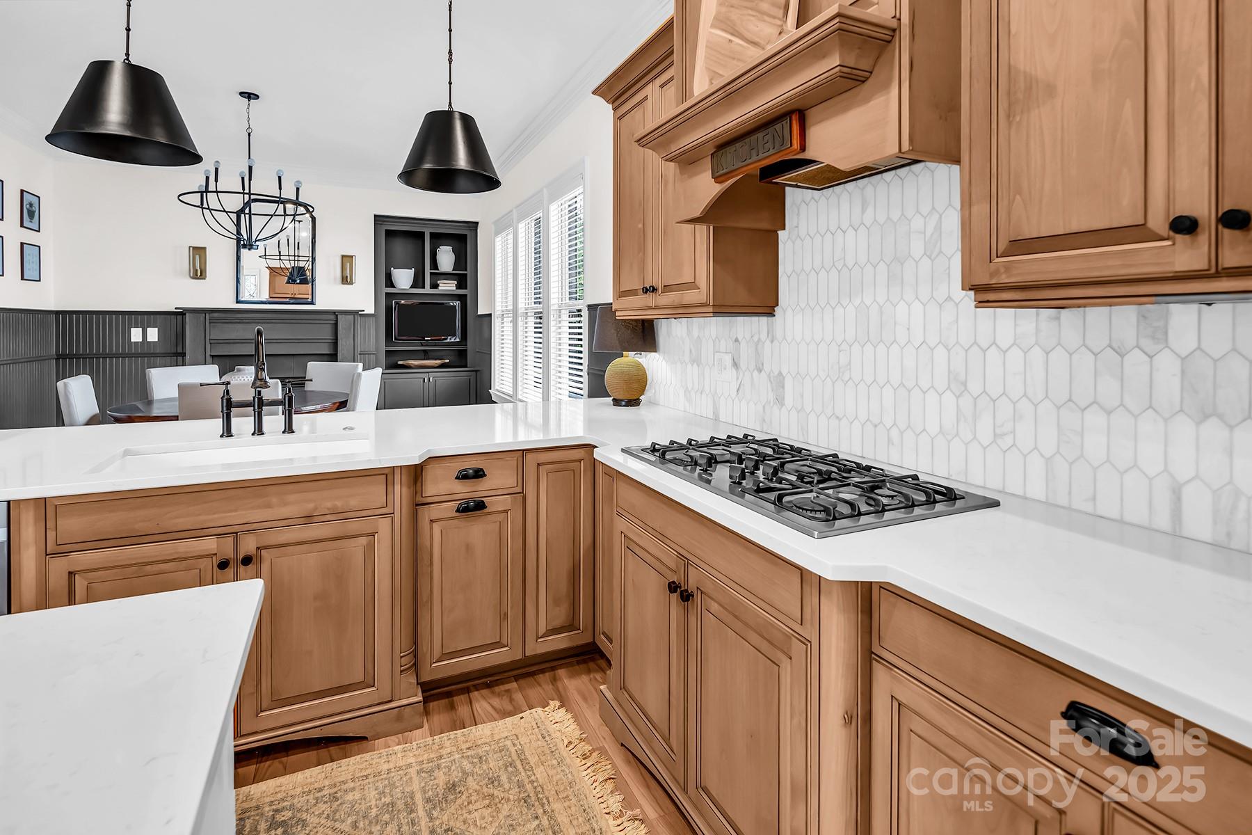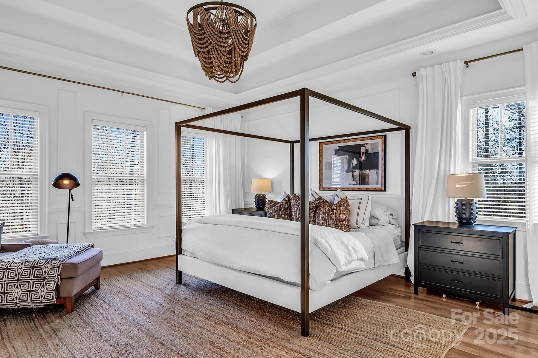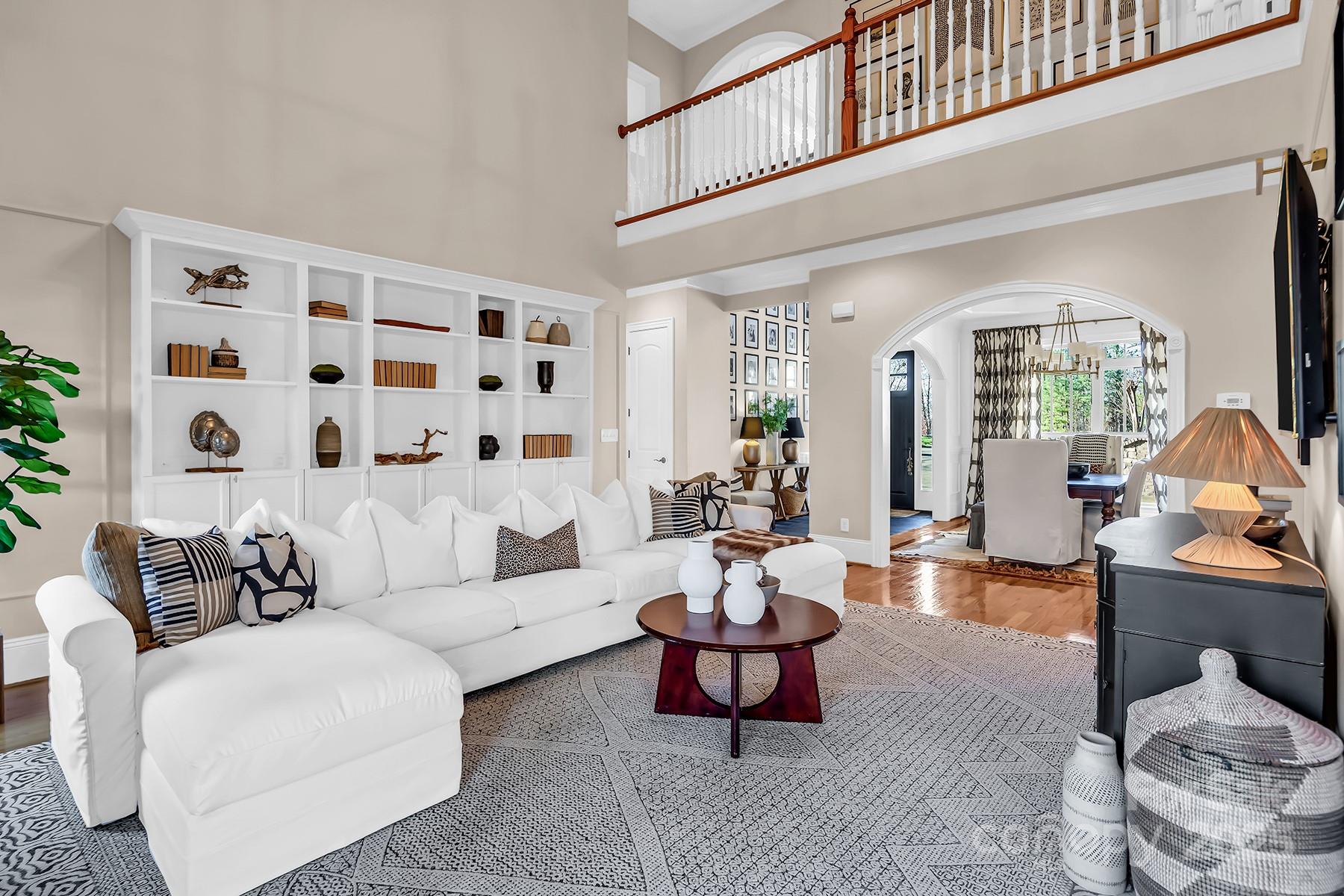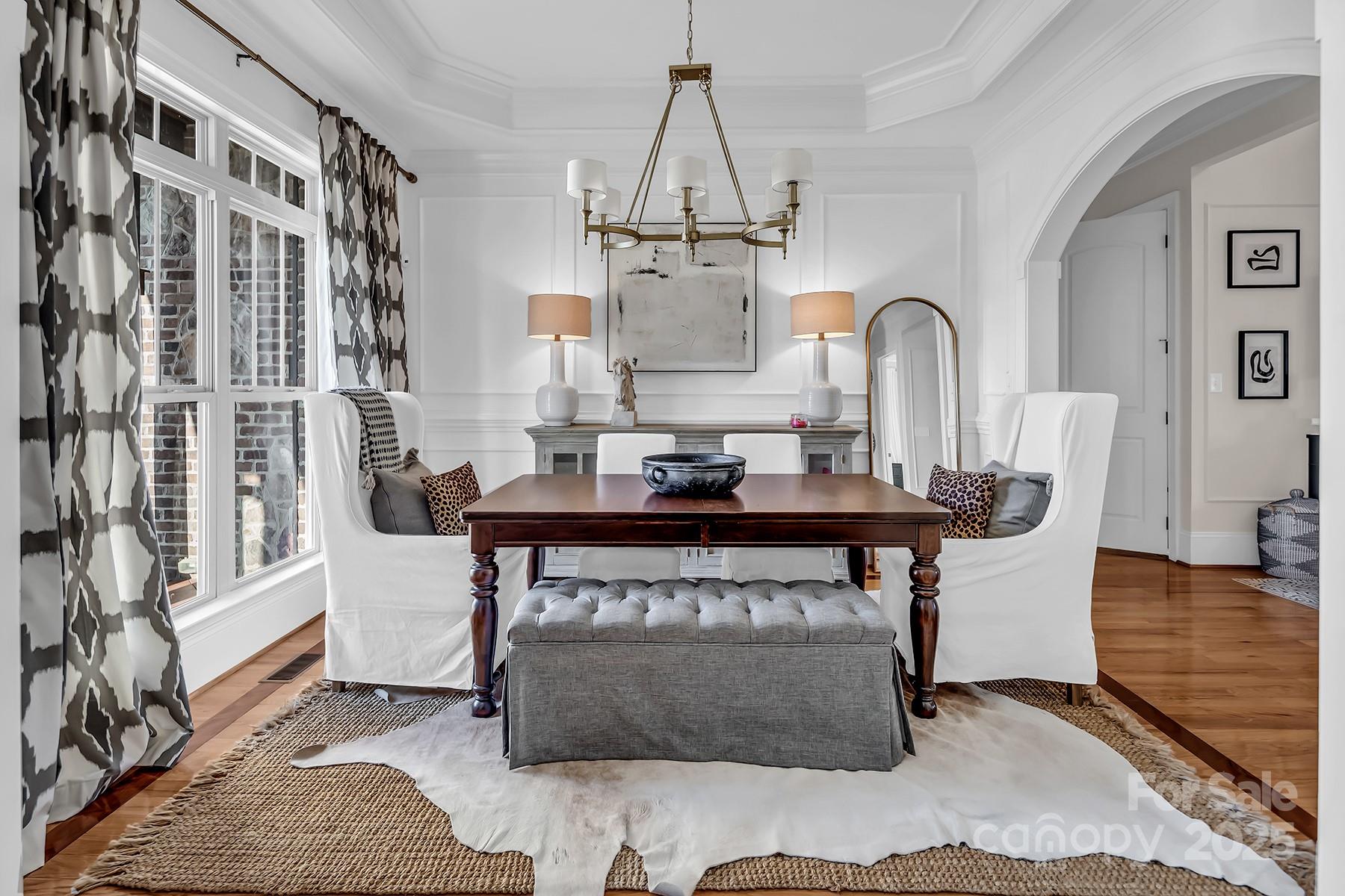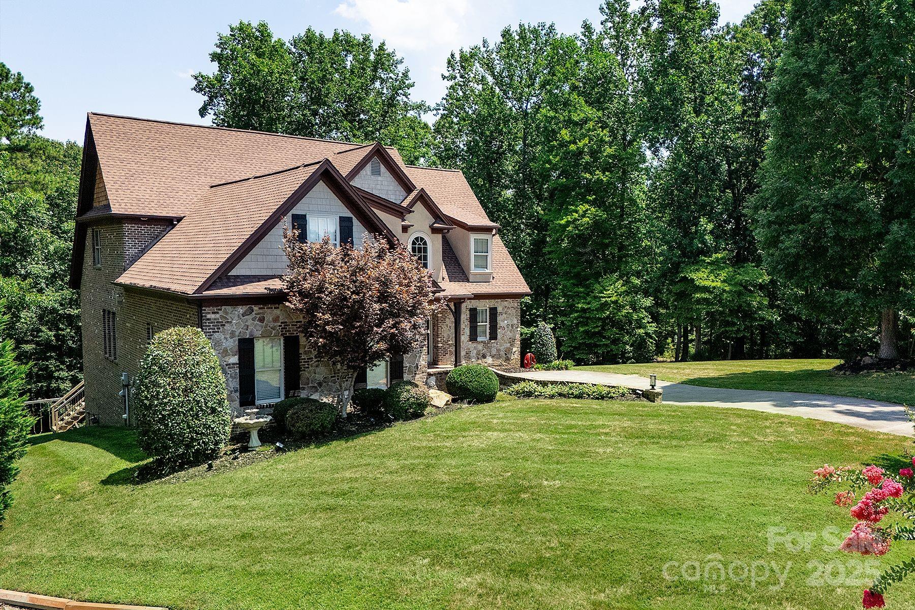 FULLY FINISHED BASEMENT! Stunning designer home located in a quiet cul-de-sac, offering exceptional space, luxurious finishes, and flexible living options ideal for today’s lifestyles. The fully finished walk-out basement is a standout feature, perfect for a private guest suite, multigenerational living, or a comfortable mother-in-law retreat. It includes a private office with elegant French doors, a stylish wet bar with granite countertops, a spacious recreation room with an electric fireplace, a dedicated exercise room, a large bedroom, a full bath, and additional laundry hookups—providing both convenience and privacy. On the main level, you’ll find an updated gourmet kitchen that is truly the heart of the home. It boasts gleaming quartz countertops, tile backsplash, newer appliances, and a walk-in pantry that offers ample storage. Adjacent to the kitchen is a cozy keeping room with custom built-in cabinetry and a warm gas fireplace—an ideal spot to relax or entertain. The sunny breakfast nook features a charming built-in bench seat and offers a beautiful seasonal lake view, making every morning feel like a retreat. The main-level primary suite is a serene sanctuary, showcasing a double tray ceiling, a spa-inspired en-suite bathroom with quartz countertops, dual sinks, a garden tub, separate shower, and custom closet shelving designed for optimal organization. Upstairs, you'll find spacious secondary bedrooms, including one with its own private en-suite bath—perfect for guests. A massive bonus room provides versatile space that could easily be converted into a home theater, media room, or play area. Throughout the home, you’ll enjoy thoughtful upgrades such as three fireplaces, hardwood floors, and abundant natural light. This home grants access to award-winning Clover schools. Whether you're hosting family, working from home, or simply enjoying quiet evenings by the fire, this property delivers on every level.