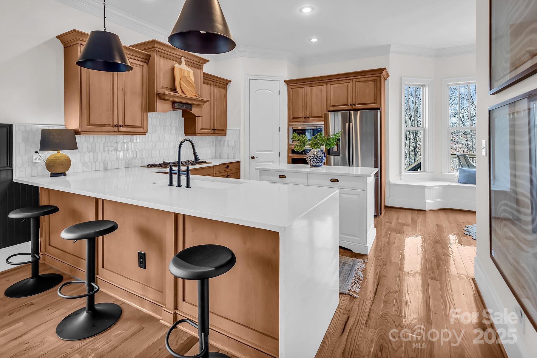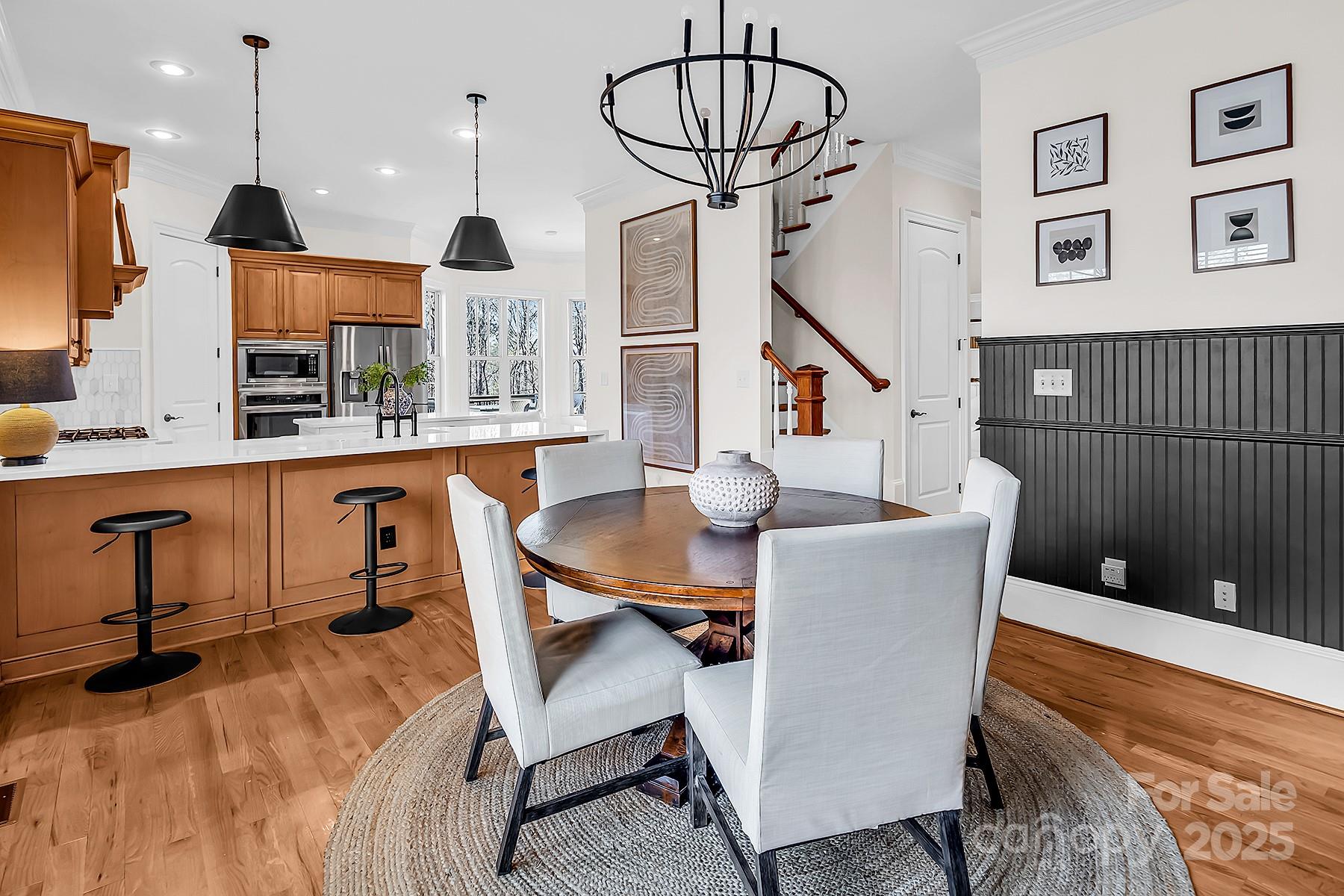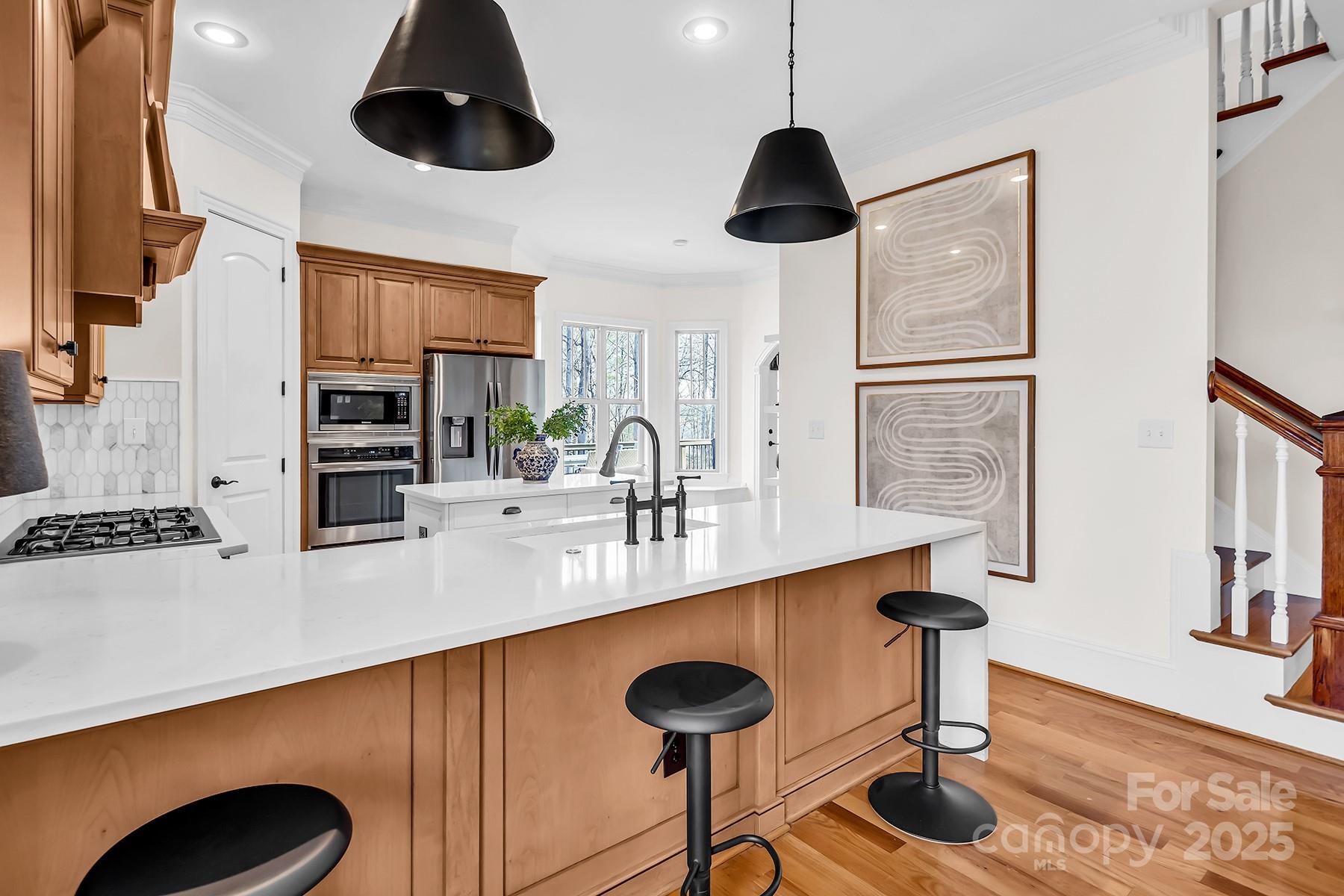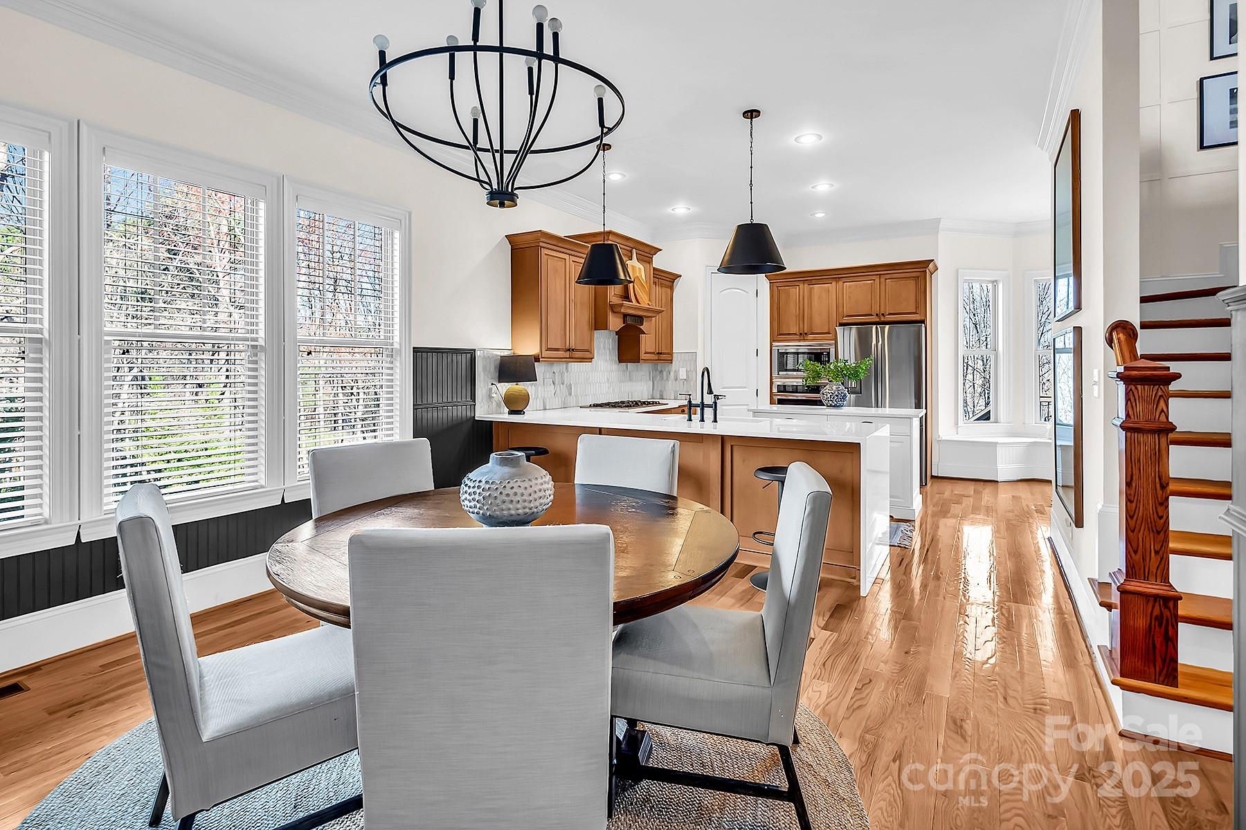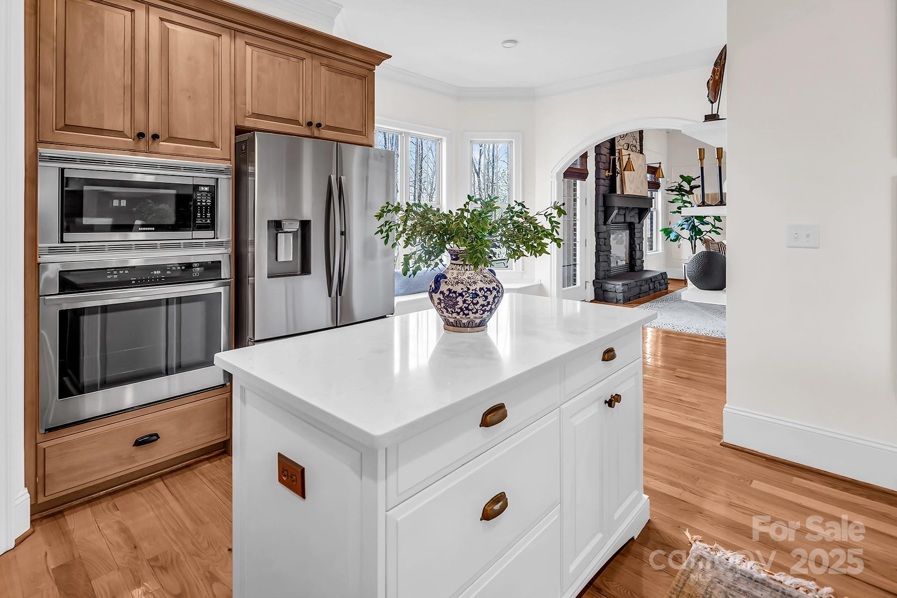FULLY FINISHED BASEMENT! Stunning designer home located in a quiet cul-de-sac, offering exceptional space, luxurious finishes, and flexible living options ideal for today’s lifestyles. The fully finished walk-out basement is a standout feature, perfect for a private guest suite, multigenerational living, or a comfortable mother-in-law retreat. It includes a private office with elegant French doors, a stylish wet bar with granite countertops, a spacious recreation room with an electric fireplace, a dedicated exercise room, a large bedroom, a full bath, and additional laundry hookups—providing both convenience and privacy. On the main level, you’ll find an updated gourmet kitchen that is truly the heart of the home. It boasts gleaming quartz countertops, tile backsplash, newer appliances, and a walk-in pantry that offers ample storage. Adjacent to the kitchen is a cozy keeping room with custom built-in cabinetry and a warm gas fireplace—an ideal spot to relax or entertain. The sunny breakfast nook features a charming built-in bench seat and offers a beautiful seasonal lake view, making every morning feel like a retreat. The main-level primary suite is a serene sanctuary, showcasing a double tray ceiling, a spa-inspired en-suite bathroom with quartz countertops, dual sinks, a garden tub, separate shower, and custom closet shelving designed for optimal organization. Upstairs, you'll find spacious secondary bedrooms, including one with its own private en-suite bath—perfect for guests. A massive bonus room provides versatile space that could easily be converted into a home theater, media room, or play area. Throughout the home, you’ll enjoy thoughtful upgrades such as three fireplaces, hardwood floors, and abundant natural light. This home grants access to award-winning Clover schools. Whether you're hosting family, working from home, or simply enjoying quiet evenings by the fire, this property delivers on every level.