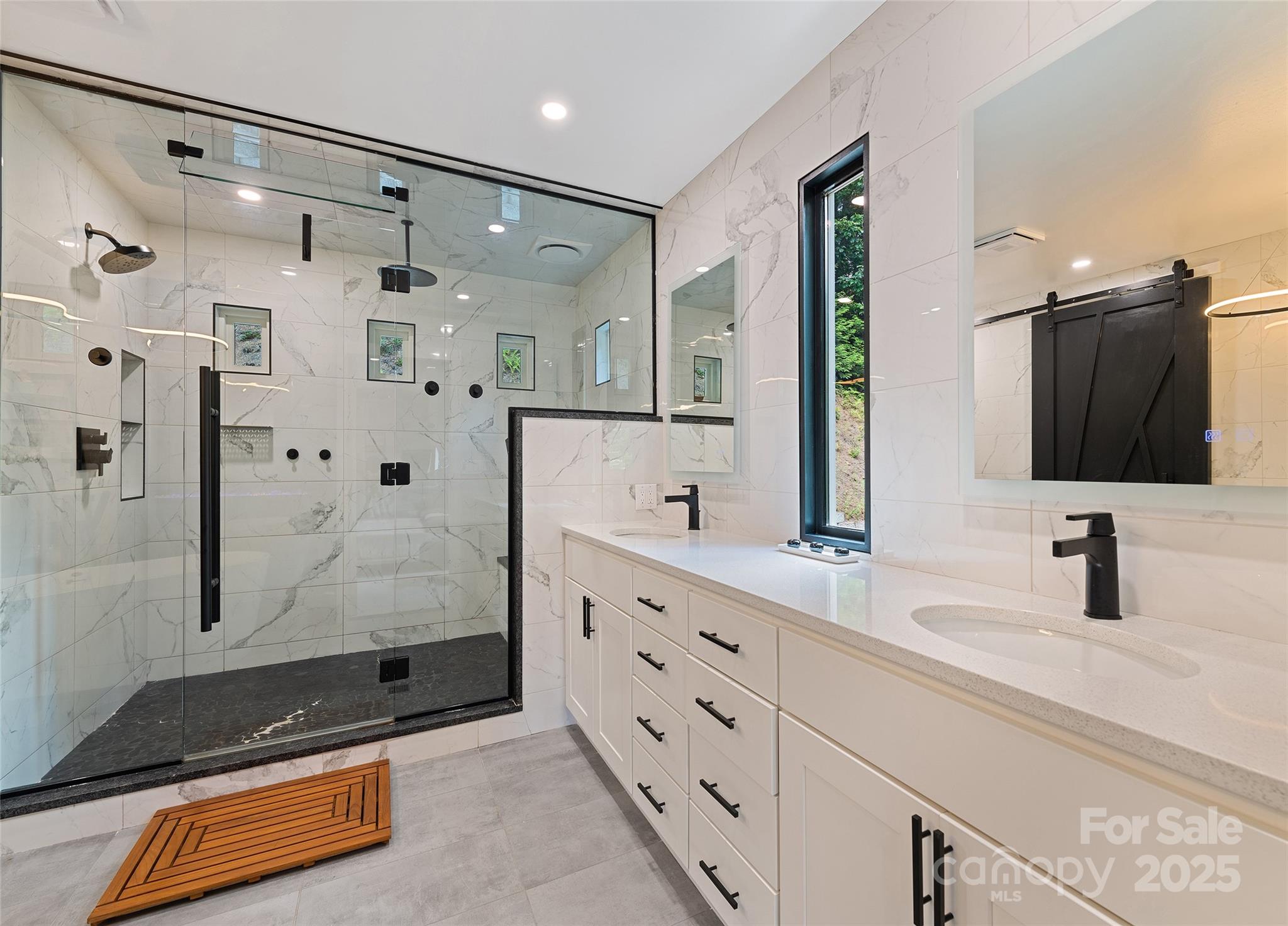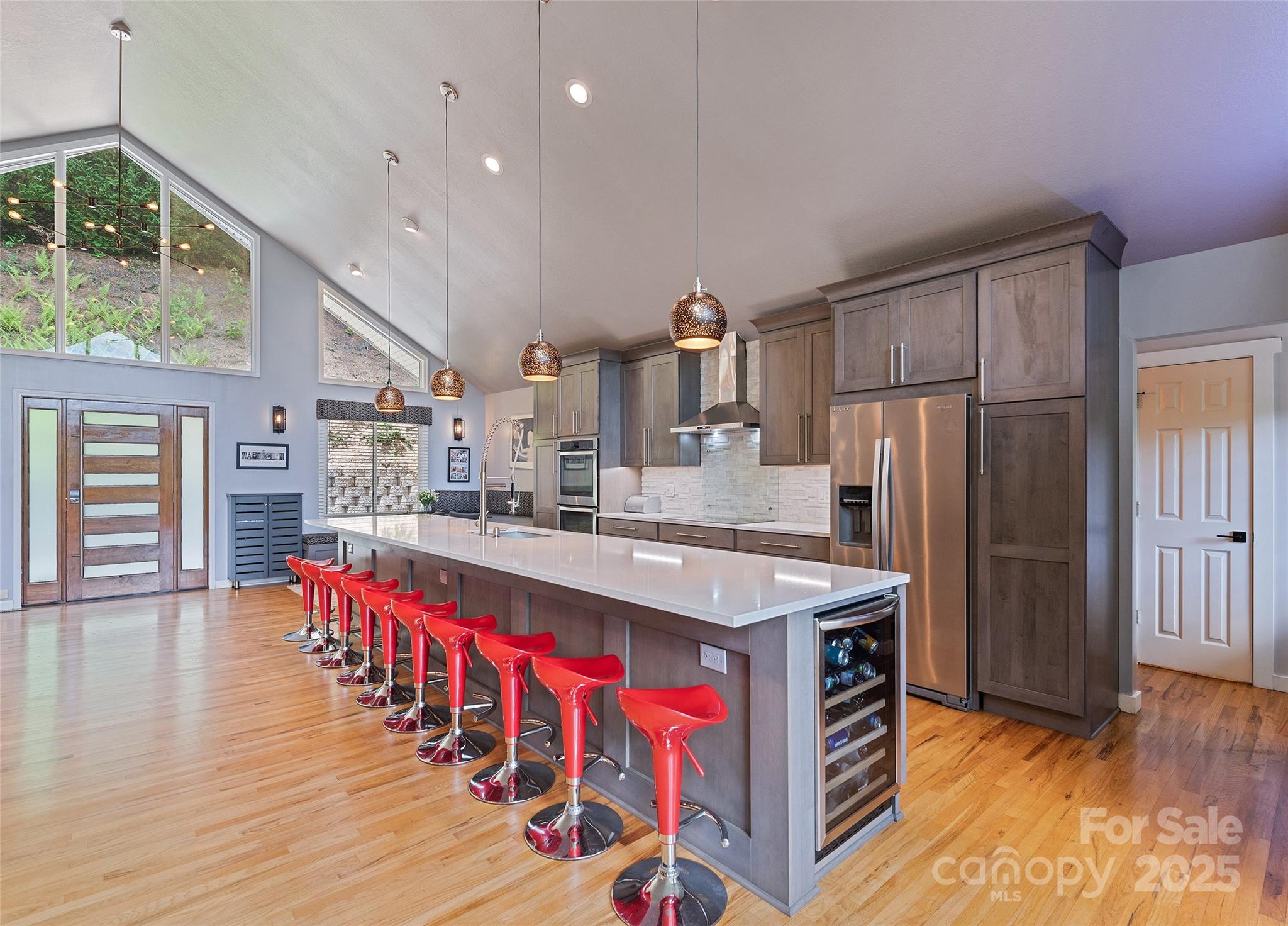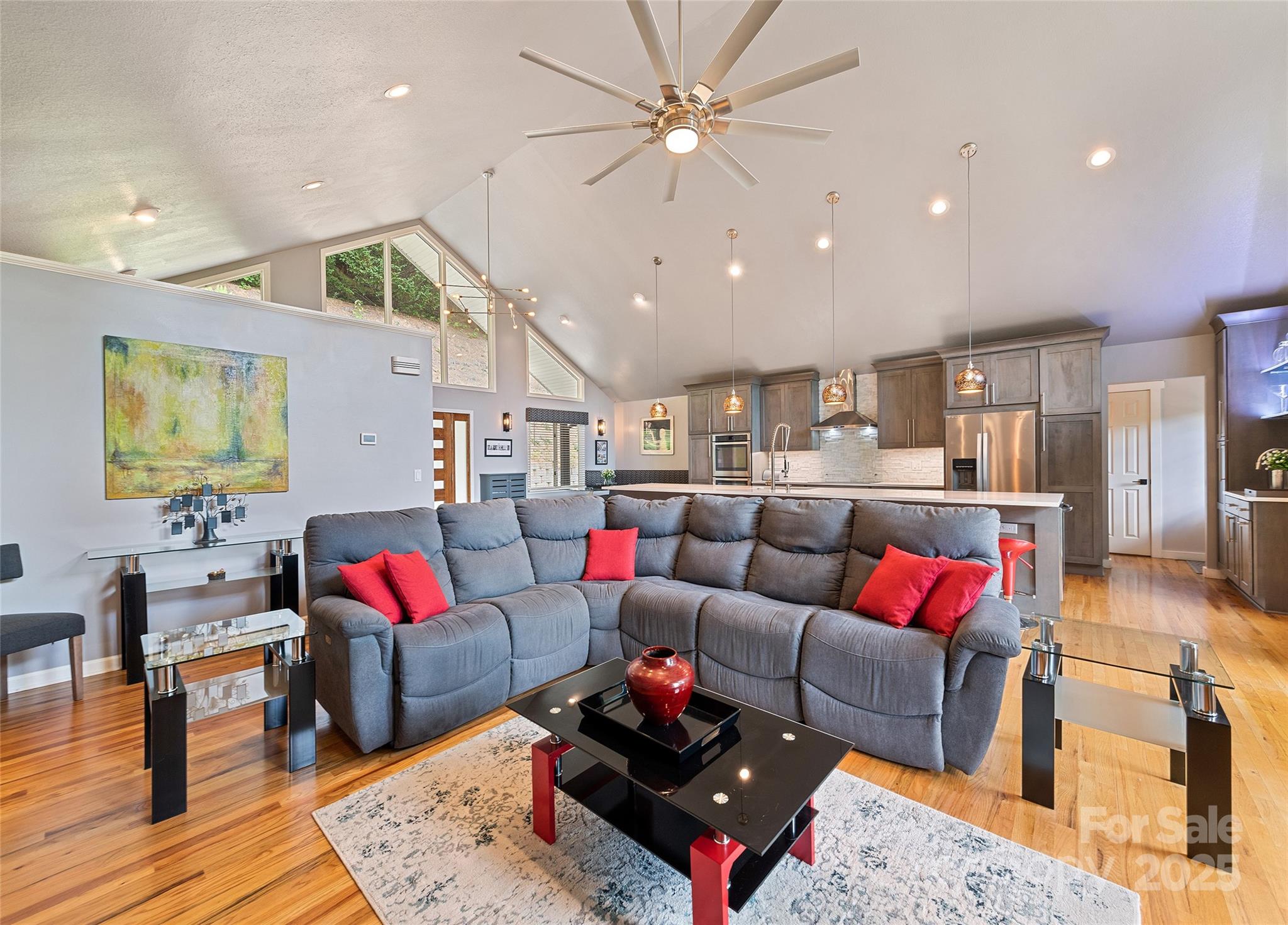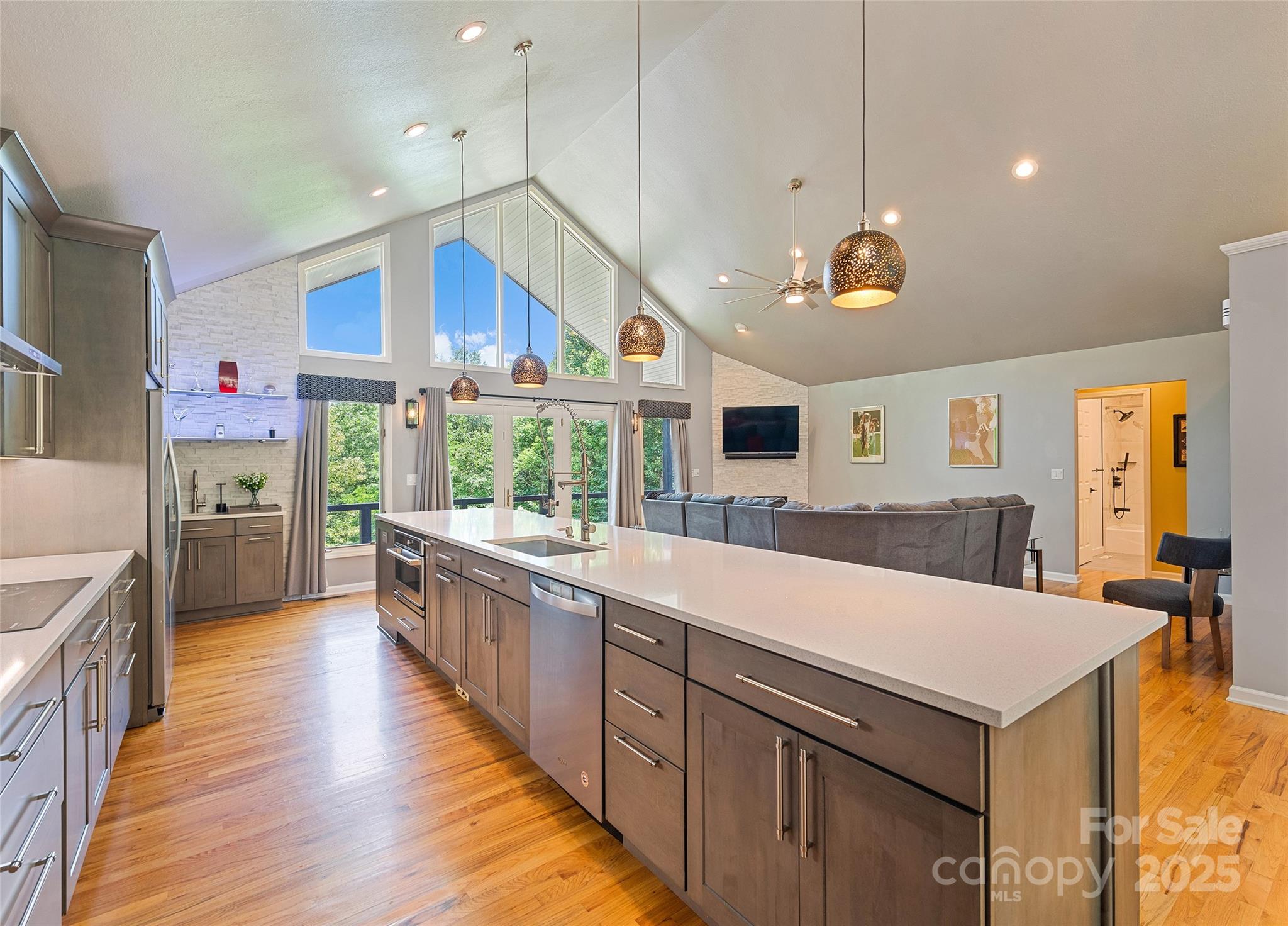 This energy-efficient mountain retreat, in Villages of Plott Creek, combines luxury, sustainability and natural beauty. Enjoy year-round comfort with low utility costs thanks to solar panels, three backup batteries, a whole-house generator (tied into the batteries), and a geo-thermal system. The home features three bedrooms, 3.5 baths, a gourmet kitchen with a 17-foot island and a renovated basement with a kitchenette, ideal for guests or entertaining. A soundproofed media room sets the stage for movie nights, while the expansive composite deck with new supports offers ideal outdoor living. Outside, enjoy a new stone retaining wall and stairs, plus a peaceful pond and creek.