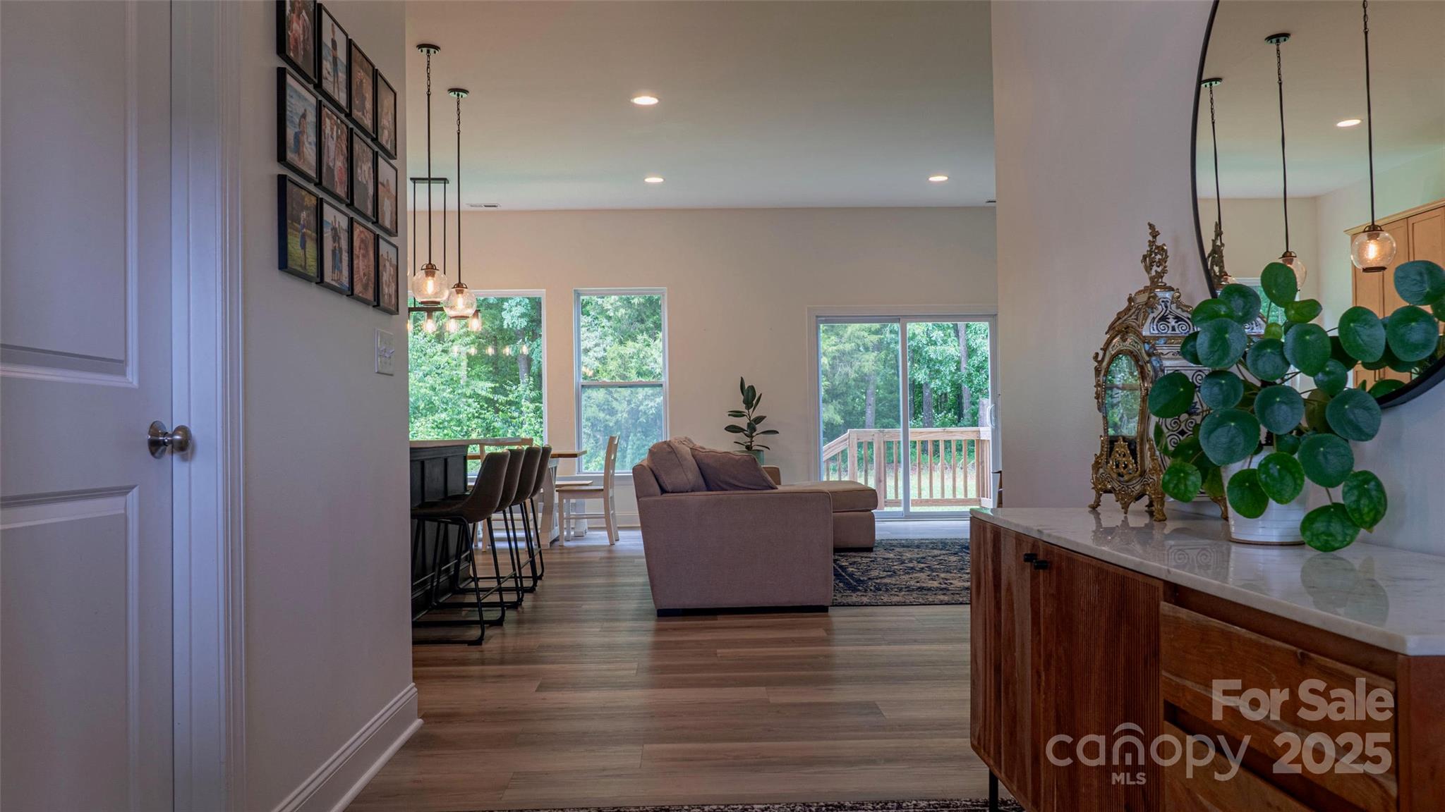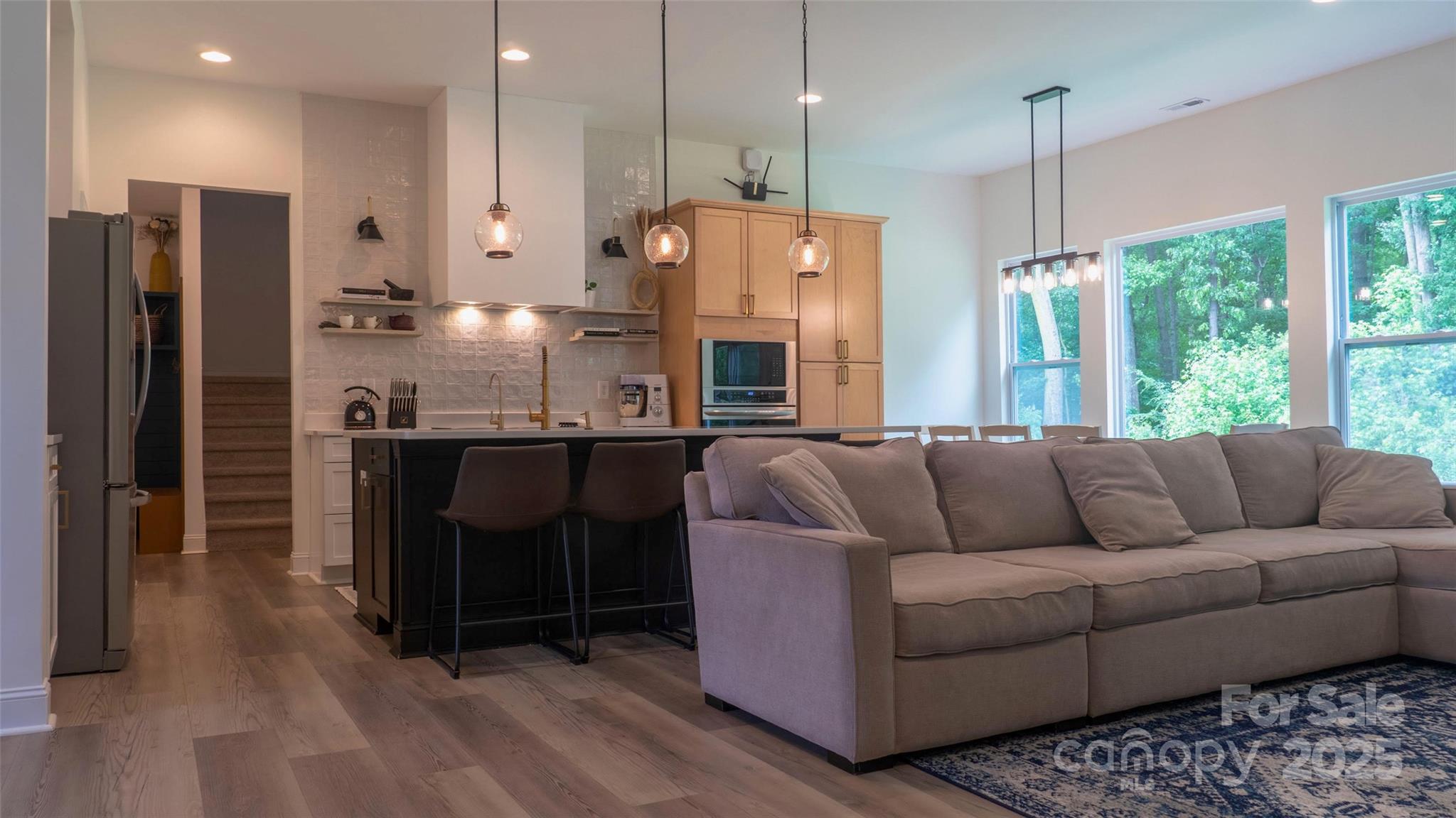 Modern ranch 4-bed, 2.5-bath ranch on 10.2 acres, accessed via a 0.8-mile private-shared gravel road. Features open-concept living, large windows, LVP flooring, black shiplap fireplace, quartz gourmet kitchen with walk-in pantry, and custom mudroom. Bonus room upstairs and flex room for office. Outside: fig-trees, fruit trees, chicken coop, and a fenced run. A peaceful blend of style, space, and country living.