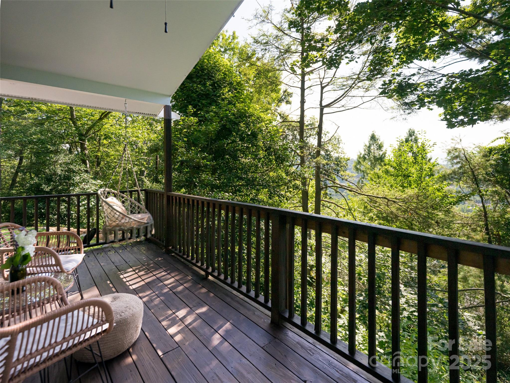 Escape to your own peaceful hideaway on Beaucatcher Mountain. This charming 2-bedroom chalet, originally built in the 1960s as a vacation home, has been thoughtfully remodeled with mid-century style and modern comfort in mind. Tucked away at the highest point of N. Delano Road, you'll enjoy incredible privacy, wooded surroundings, and beautiful eastern views—all just 1.5 miles from the heart of downtown Asheville. With 554 square feet of smartly designed space, this home lives large without the upkeep of a full-sized house—ideal for weekend getaways or extended stays. The renovation in 2016 preserved its vintage charm while adding fresh, stylish updates. Furnishings are negotiable, making it easy to settle in and start enjoying right away. Brand new HCAC outdoor unit. Whether you're relaxing on the mountain or exploring Asheville's vibrant food, music, and outdoor scene, this chalet offers the best of both worlds. Quick access to the Blue Ridge Parkway, Biltmore Estate, and Asheville!