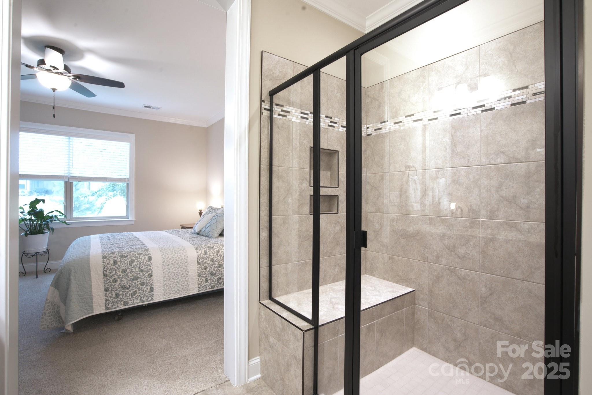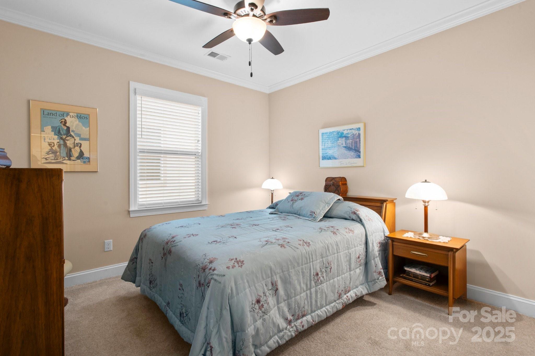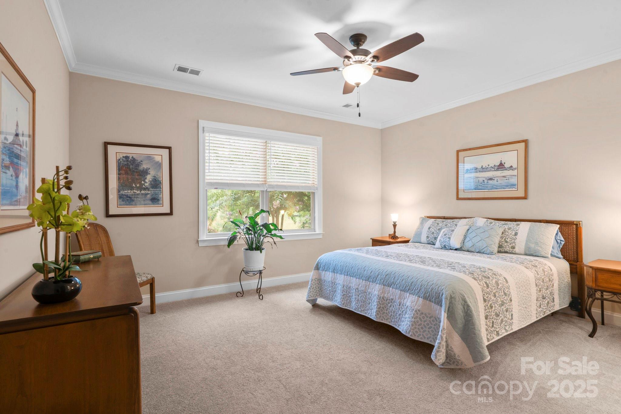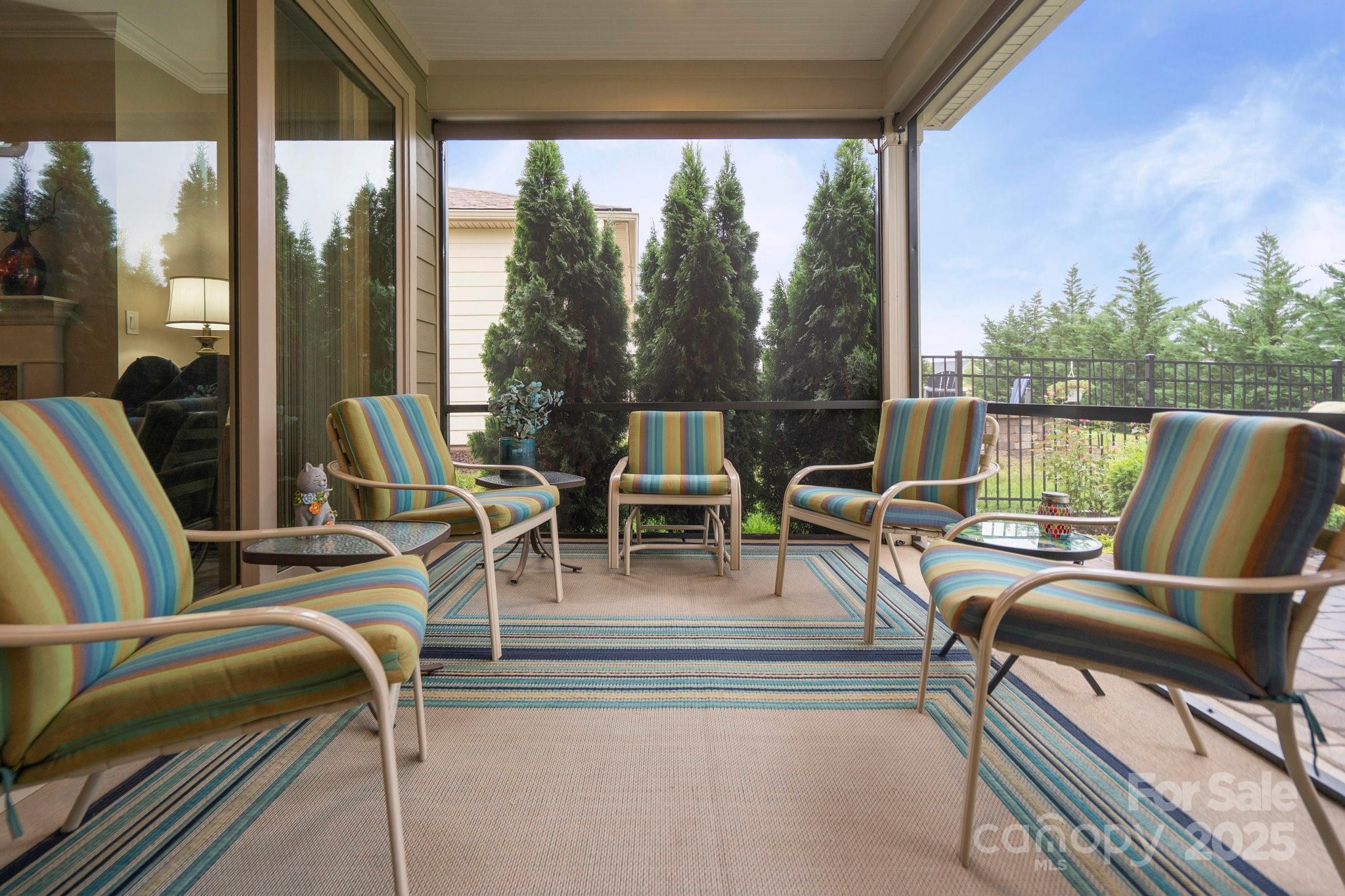 This split 2BR, 2B home with a 2 Car garage features decorator colors, lighting & finishes. Make yourself comfortable and enjoy the open-concept, beautifully landscaped Glory floorplan that has an amazing use of function and space. A well-appointed kitchen anchors the main living area and includes stainless steel appliances, gas range, granite countertops, pendant lighting, light craftsman style cabinetry and island breakfast bar. The great room has a gas fireplace that flows thru the wall of glass to a private screened lanai & onto an extended paver patio with unobstructed common area views. A serene master suite completes this home & ensuite bath with dual sink vanity, tile floor and a generous walk-in closet & tiled shower. Low maintenance wood and tile flooring main living areas and carpeted bedrooms plus crown molding throughout the home. Large laundry room with additional cabinetry/storage. Trilogy Membership includes Freedom Boat Club on Lake Norman plus award winning amenities.