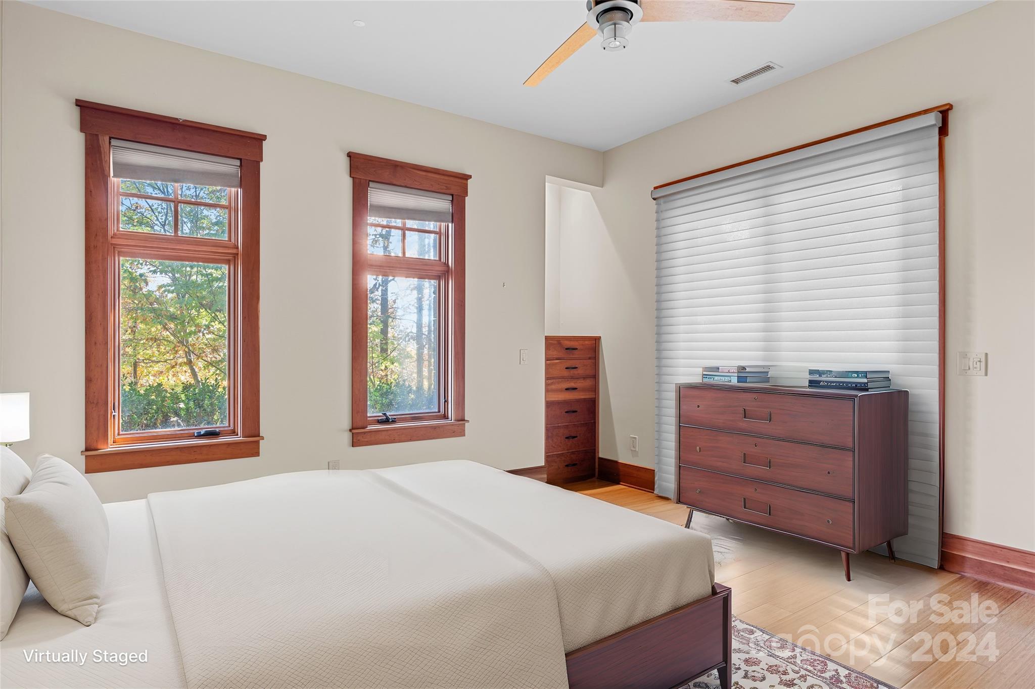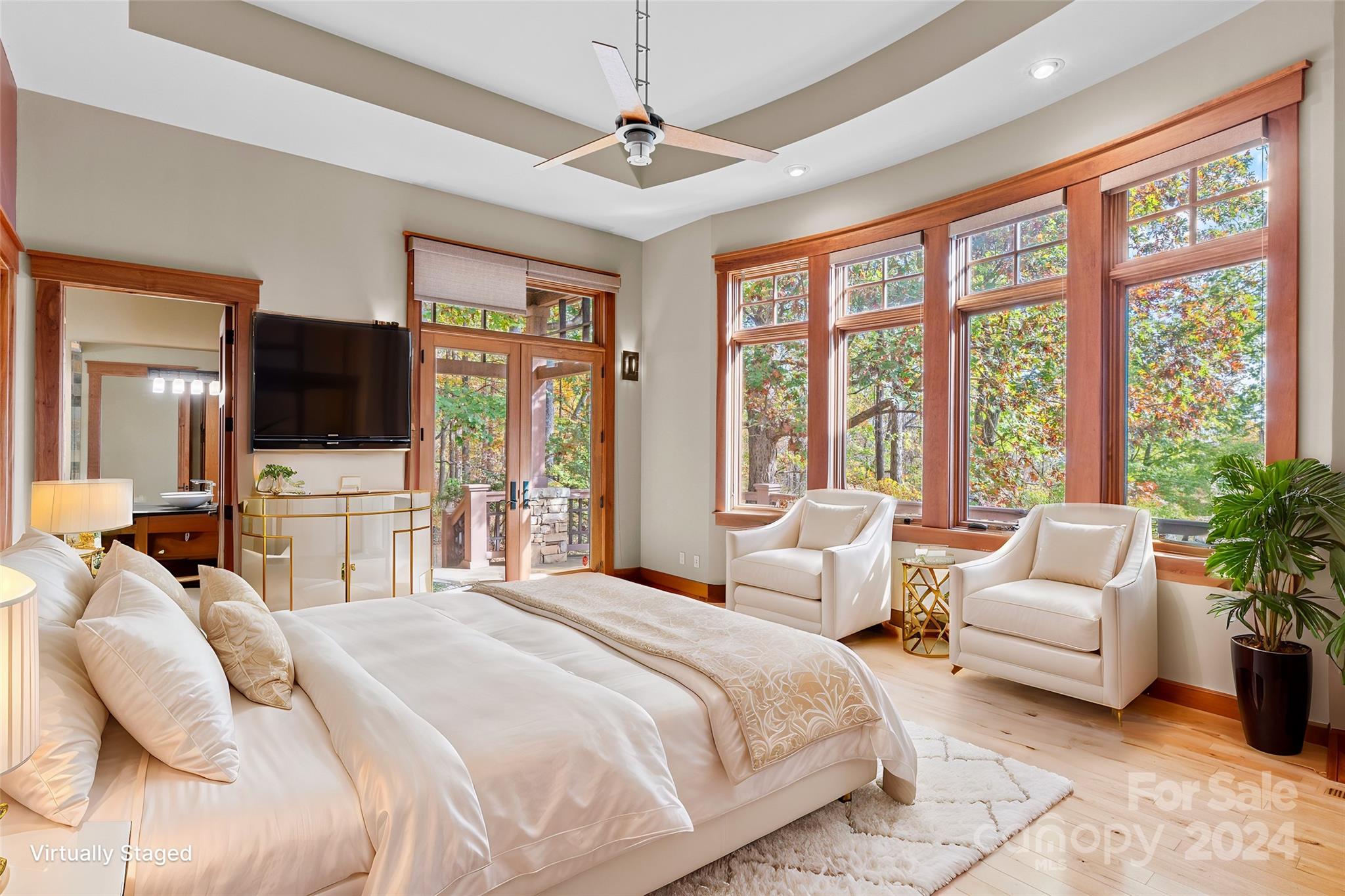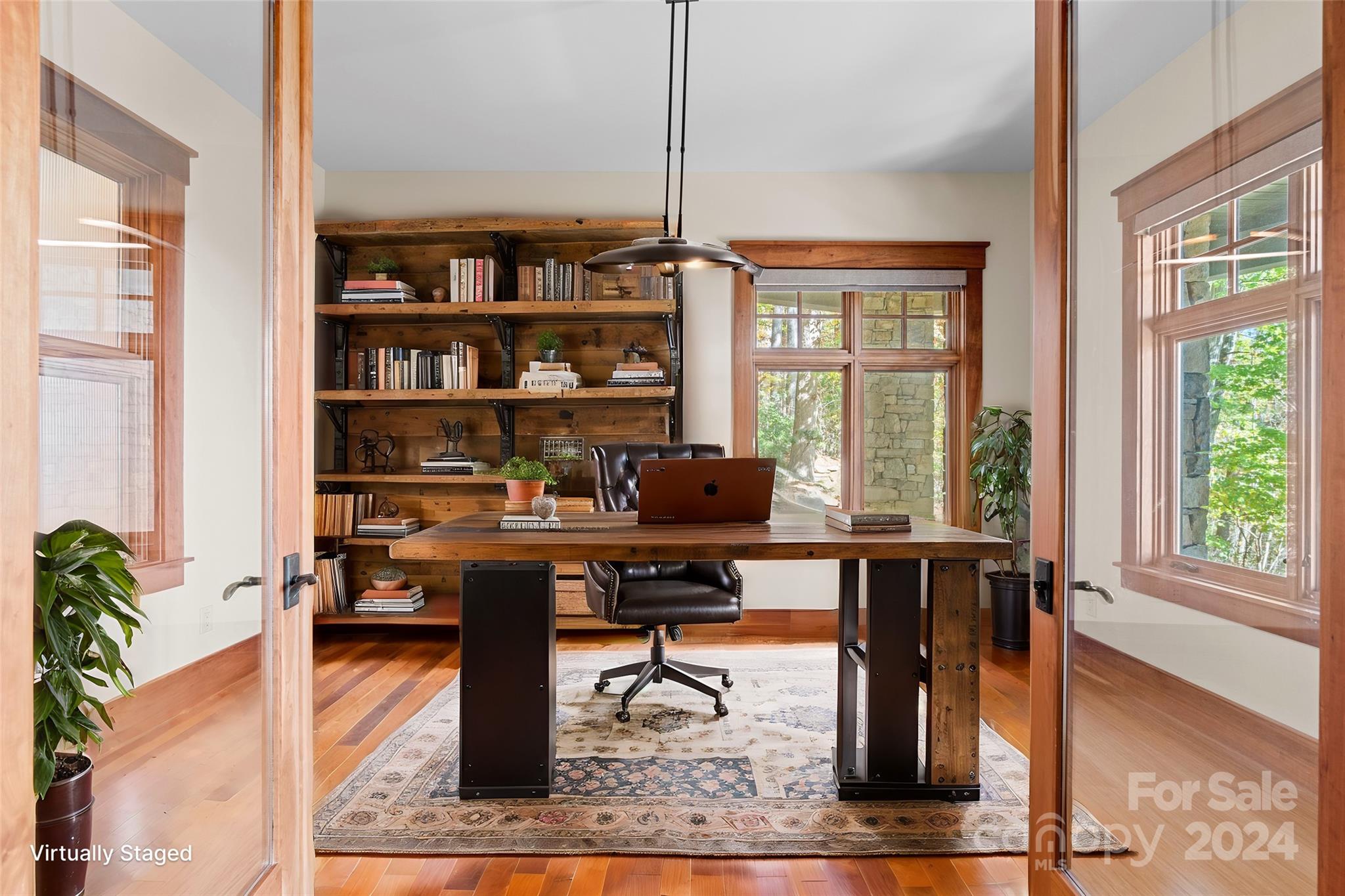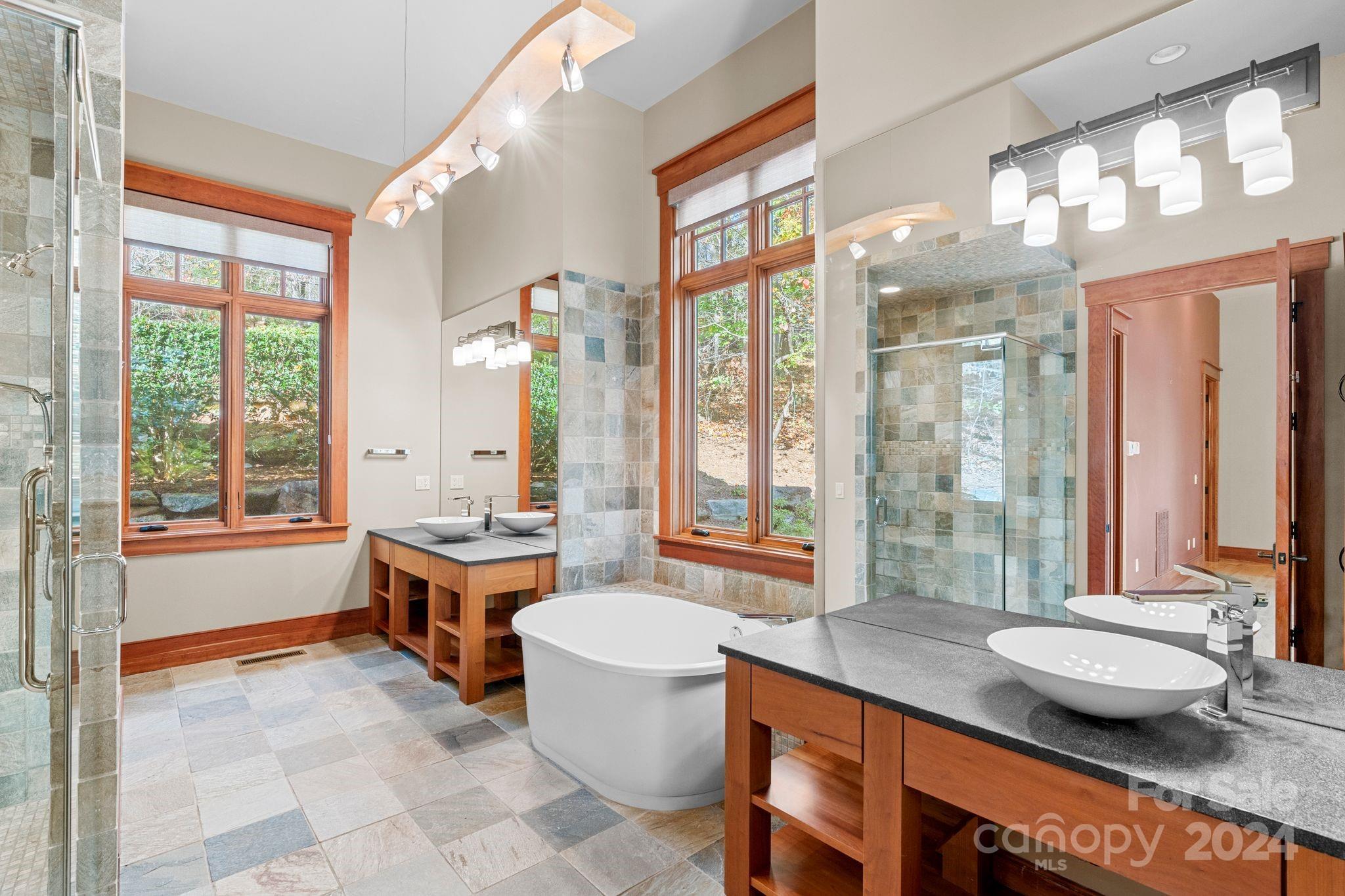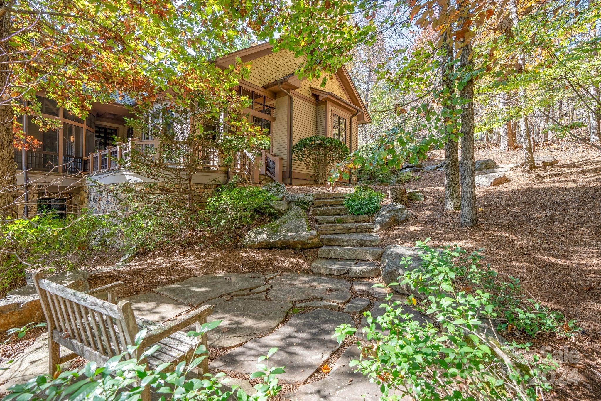 HUGE PRICE REDUCTION! Expertly crafted 5,280 sf luxury home with stunning mountain views. Majestic free standing stone fireplace highlights the main living space. Custom kitchen with solid cherry cabinets, pantry, coffee bar and center island. Main level primary bedroom/bath suite with two 10x12 walk-in-closets, laundry room, half bath and sunroom that could be used as an office. 3 season vaulted screened porch, open decks, and two car garage are all accessed from this main level. Upstairs is a full guest suite with private bath, walk in closet & sitting area. Downstairs offers another complete bedroom suite in addition to a family room with fireplace, office, bonus room, and half bath. Walk out the sliding glass doors to exquisite stone patios, landscaping and rock work. Over 2 private acres within the Brights Creek Community, ability to add a golf or a social membership. Community features include dining, pool, fitness center, hiking trails, pickleball, tennis, equestrian & more.