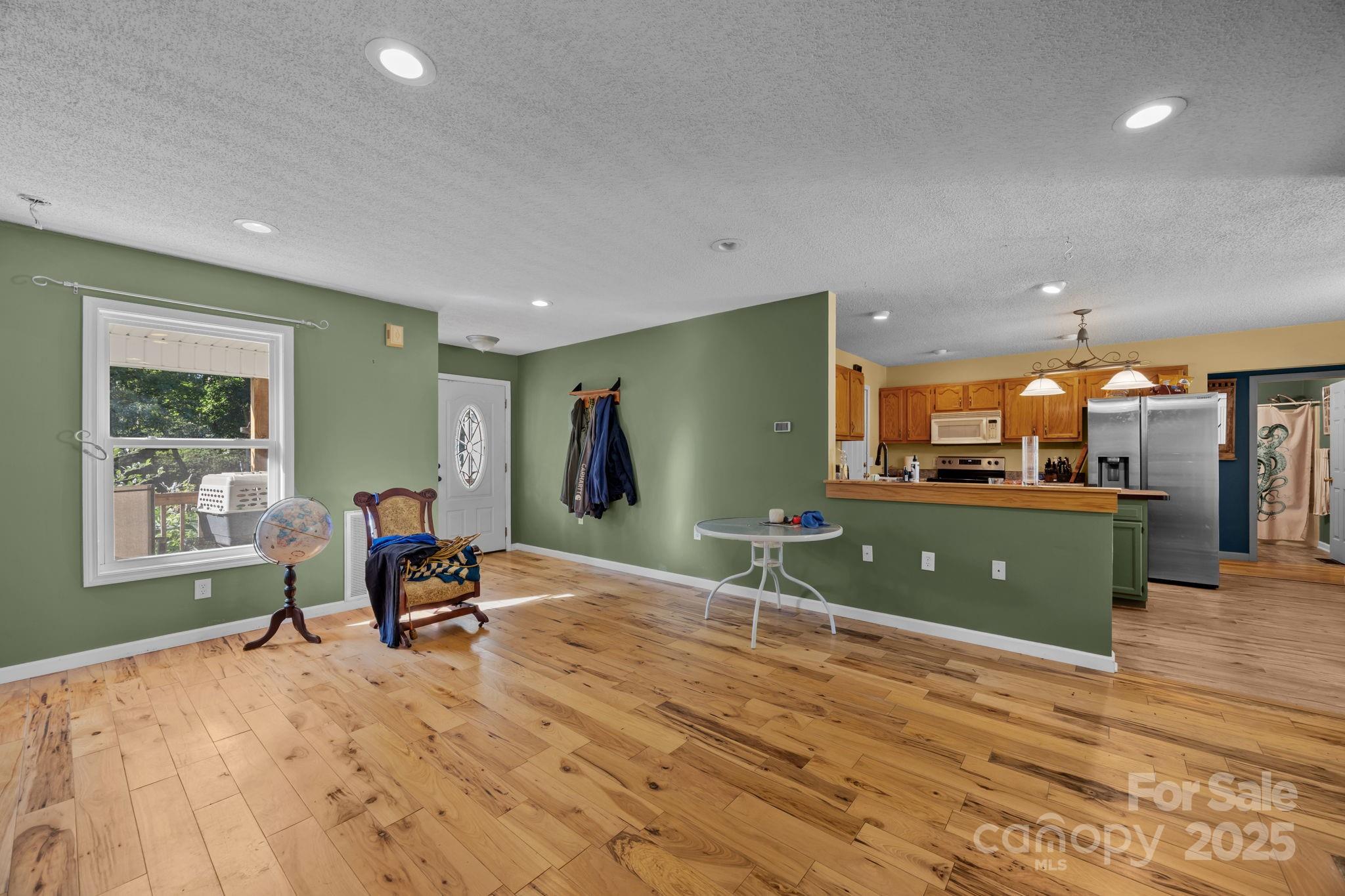 Discover this well-cared-for home nestled on 2.63 acres in a peaceful, wooded setting with year-round mountain views. Designed for privacy and tranquility, this single-level residence features stunning Hickory hardwood flooring and a Tennessee fieldstone fireplace, creating a warm and inviting atmosphere. The open-concept layout seamlessly connects the kitchen and living areas, making it ideal for everyday living. Enjoy ample natural light across the spacious yard—perfect for gardening or outdoor activities. The level driveway provides easy access and includes additional parking alongside a two-car garage. Covered front and back porches offer ideal spots to unwind and take in the surrounding natural beauty. A large outbuilding with electricity offers excellent potential for a workshop, studio, or future finished space. Recent updates include a new water heater (2023) and a heat pump (2024) plus a radon mitigation system is already in place. Don't wait. Schedule your private tour today!