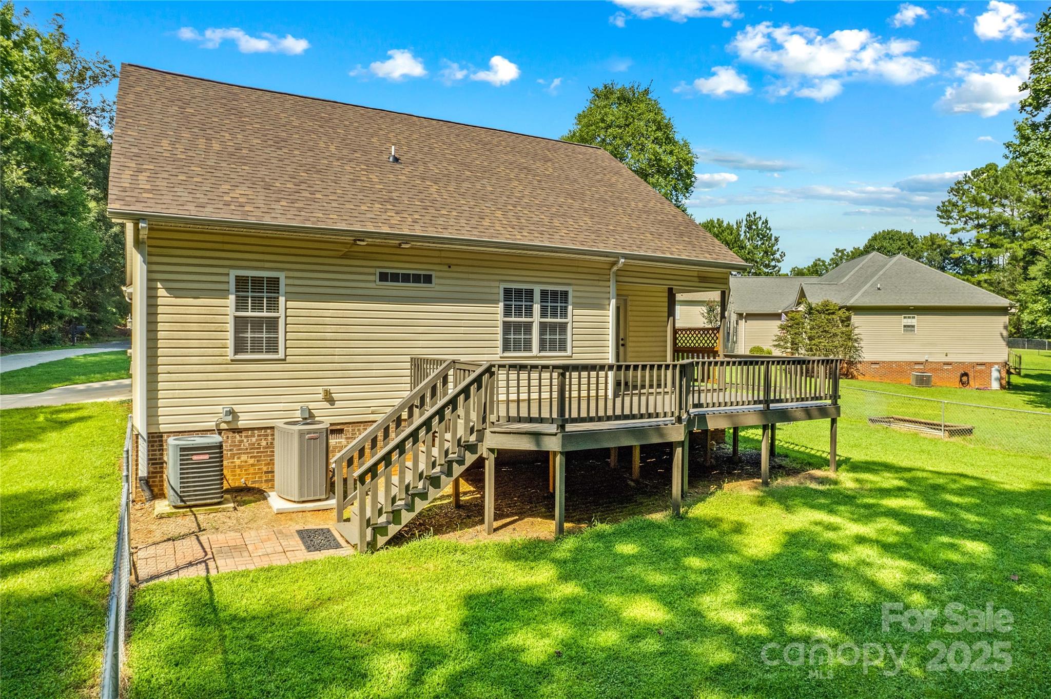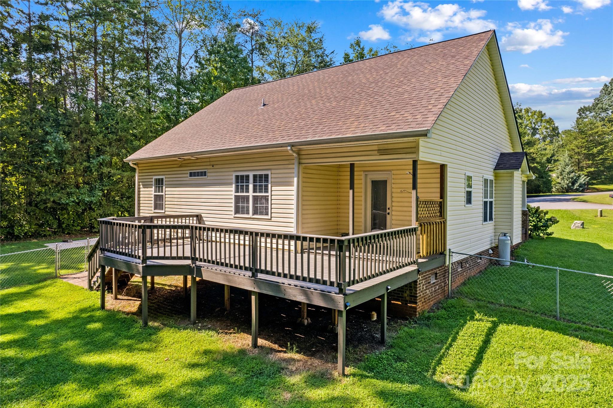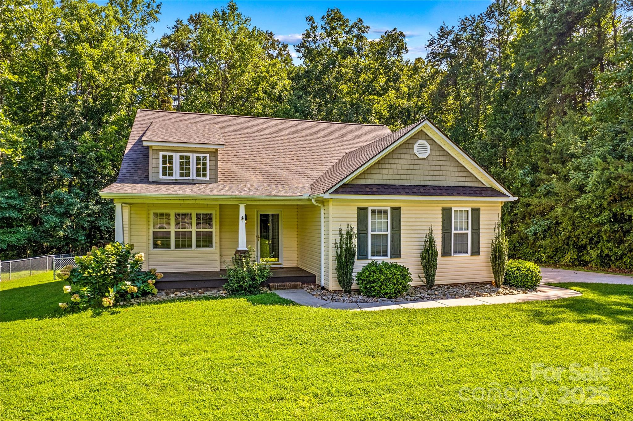 Live close to High Rock Lake in pristine Goodman Lake Meadows! Very pretty 3BR/2BA home on a large lot that sits at the end of a cul-de-sac. Welcoming front porch is "bench swing ready" as the mounts are already installed. Beautiful maple hardwood flooring is locally sourced. Gorgeous custom mantle in LR is locally sourced wood and the fireplace will heat the entire house within 20 mins during the winter. The propane tank for fireplace conveys. Spacious open floor plan. Kitchen has granite counters, newer ss appliances, dual door oven range (Nov 2023) and new dishwasher (Jun 2025). Custom curly maple staircase to large loft/flexible area with built-in bar and overlook for office, play area, or studio. The desk in the loft conveys. Storage in the attic and under stairs. The newly rebuilt & painted deck is supported for a hot tub. Ability to charge EV at 240V outlet on deck. Can connect to a generator with proper switches in panel box. Additional updates include brand new roof (Jun 2025) with 30-year warranty; new air handler with 10-year warranty and 10 mil vapor barrier by Terminix (2022). The additional HLA is an amazing shed with electricity, garage door, HVAC, hot/cold water, mini-oven, space for fridge, TV, electricity and huge concrete pad-mostly covered. Great poker den, studio, workshop– or enclose the entire area for additional living space. Fire pit area with wood storage hut. Large fenced yard with recent french drain. Wooded area behind house is about 250' from High Rock Lake, with walking trails. Near public boat put-in & quick ride on the lake to Water's Edge diner.