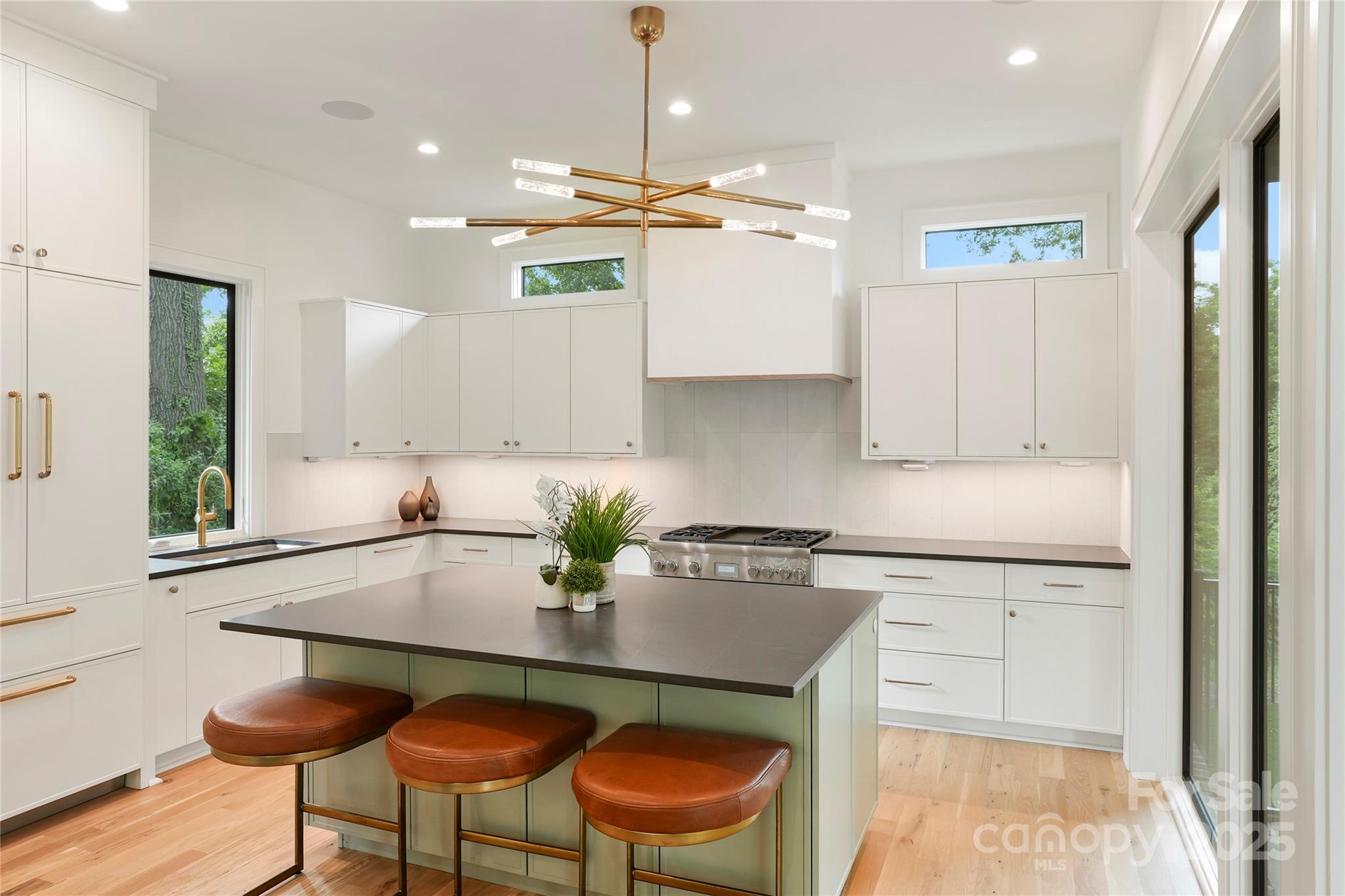 Immerse yourself in elevated urban living at Heirloom at Mattie Rose—a limited collection of custom single family homes in the heart of NoDa. This thoughtfully designed residence by Grandfather Homes and Elite Design Group features an open-concept for modern lifestyles: kitchen with Thermador appliances and oversized island flows seamlessly into the dining area and living room with gas fireplace. Primary suite with a spa-like bathroom including soaking tub in wet room and walk-in closet. Enjoy entertaining on the covered terrace complete with a cocktail pool. The third level offers a spacious media room with wet bar and rooftop terrace perfect for movie nights or hosting. Low-maintenance artificial turf in the front and rear yards. This artfully curated village of just nine homes combines luxury and sustainability in the heart of NoDa, offering walkable access to dining, nightlife, and culture. Come experience "art-itecture"—where every detail is designed to elevate your lifestyle. Property is fully fenced including driveway gate with remote opener.