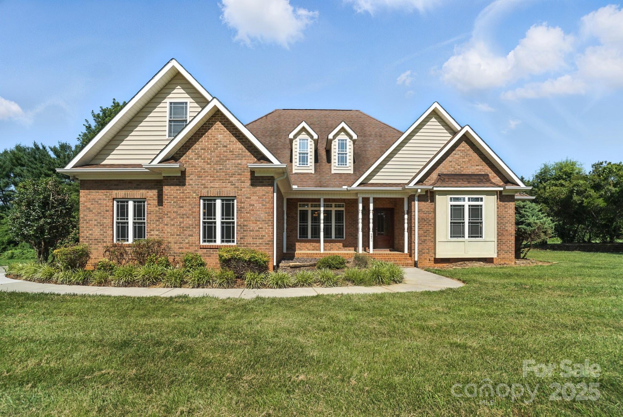GET A BELOW MARKET INTEREST RATE FOR THE FIRST YEAR! This beautifully crafted brick ranch w/bonus room is tucked away in a quiet, private location offering the perfect blend of comfort, style & functionality. From the moment you arrive, you’ll notice the attention to detail from the stone fireplace anchoring the living room w/cathedral heights to the French doors that open into a private home office w/closets! The heart of the home features a kitchen w/window wall that overlooks the living area allowing for connection & conversation. Enjoy meals at the breakfast bar, breakfast nook or in the formal dining. Gorgeous hardwoods flow thru out the main living spaces as natural light pours in from every angle. The split bedroom floorplan ensures privacy while the spacious primary offers a soaking tub & separate shower. Upstairs, a large bonus room & walk-in attic provide the flexibility & storage every homeowner desires. Step outside to relax on the covered porches & take in peace and quiet