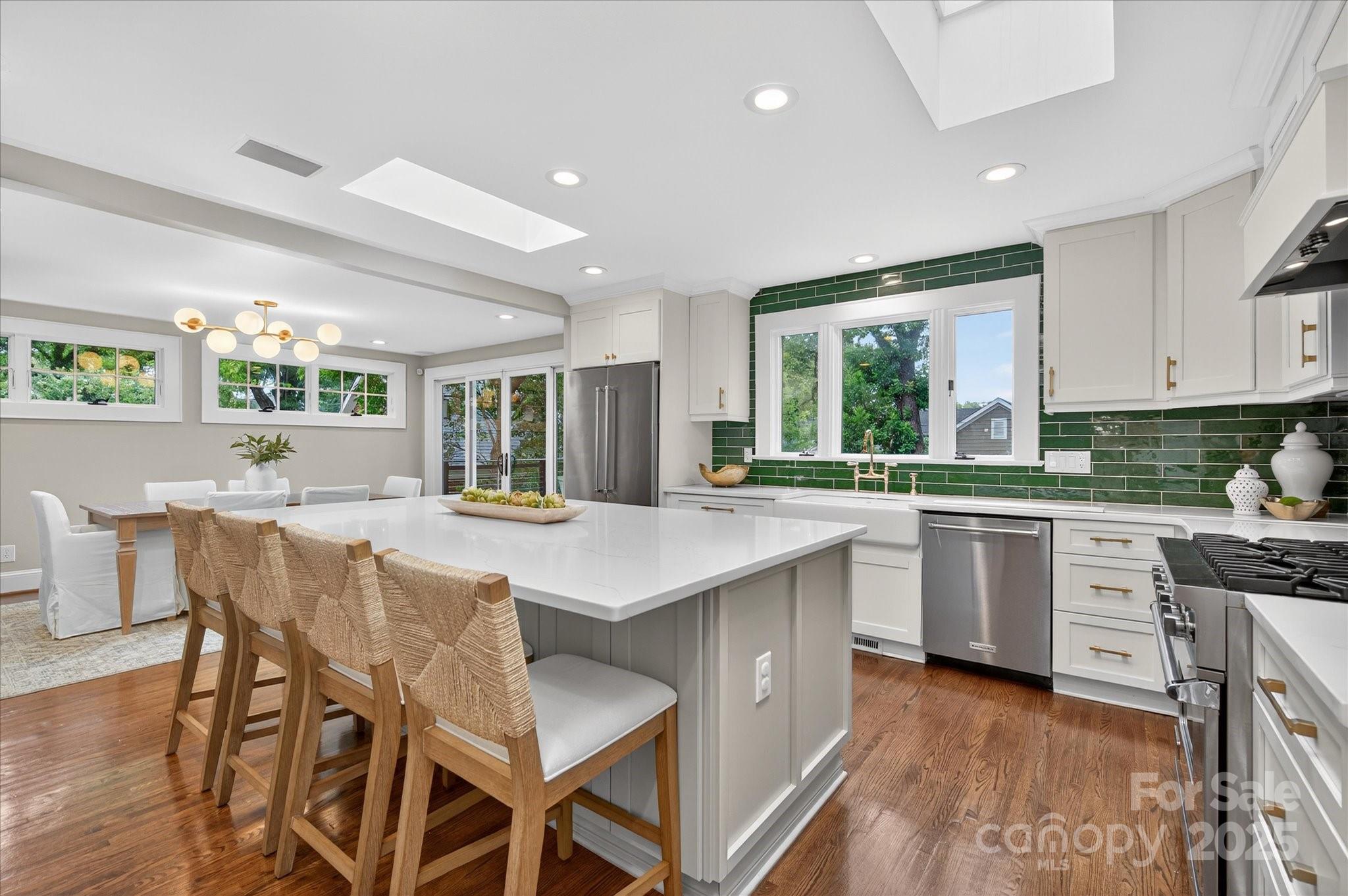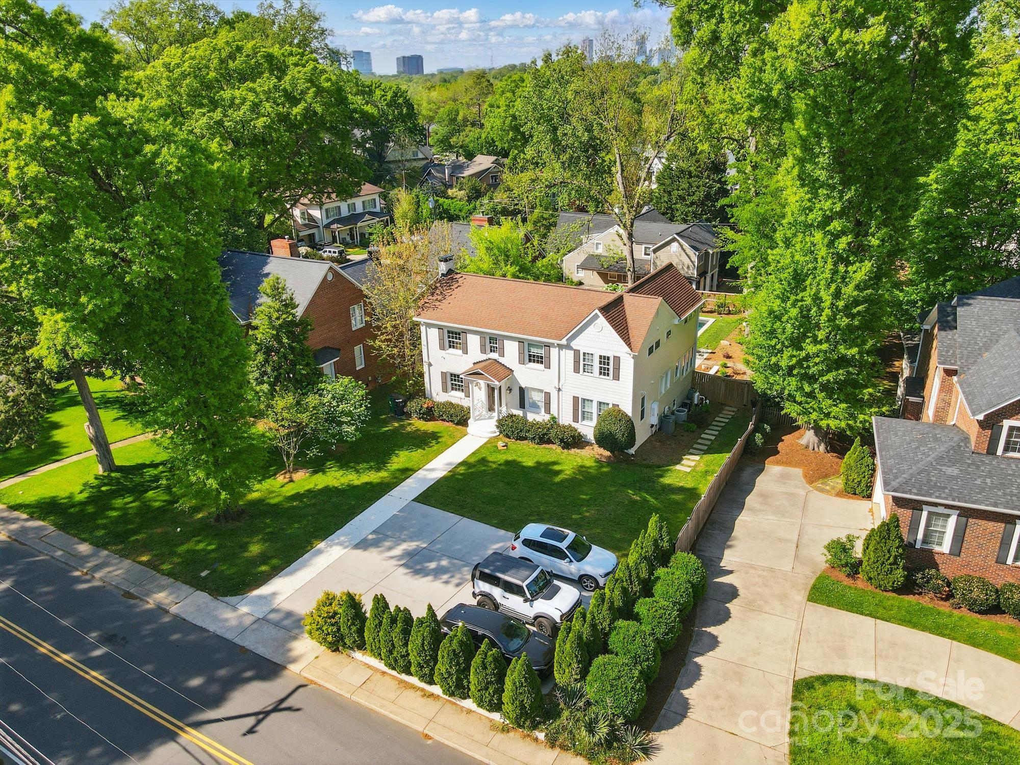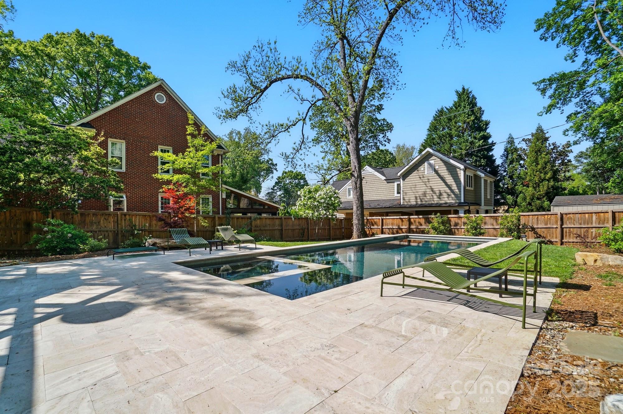 Timeless Myers Park Home Showcasing Classic Elegance and Modern Luxury Set on a deep, oversized lot in one of Charlotte’s most iconic neighborhoods, this beautifully renovated two-story residence blends timeless design with modern sophistication. The gourmet chef’s kitchen showcases custom maple cabinetry, MetroQuartz countertops, an expansive island, ROHL faucet, farmhouse cast-iron sink, and premium appliances. Step out to a brand-new luxury composite deck, perfect for morning coffee or sunset views. Offering a spacious primary suite upstairs and a beautifully appointed en-suite on the main level, the home provides exceptional flexibility for guests, a private office, or multi-generational living. The upstairs primary captures stunning city skyline views, while custom cedar-lined closets throughout enhance both beauty and functionality. The finished walk-out basement with custom millwork, a secure vault, and a private fitness area with a sauna that opens to a stunning backyard, complete with a spectacular backyard retreat featuring a sleek pool with silver marble decking a true showpiece that reflects the home’s uncompromising quality. Just minutes from Freedom Park, shops, and dining, this home delivers the complete Myers Park lifestyle where craftsmanship, comfort, and location meet in perfect harmony.