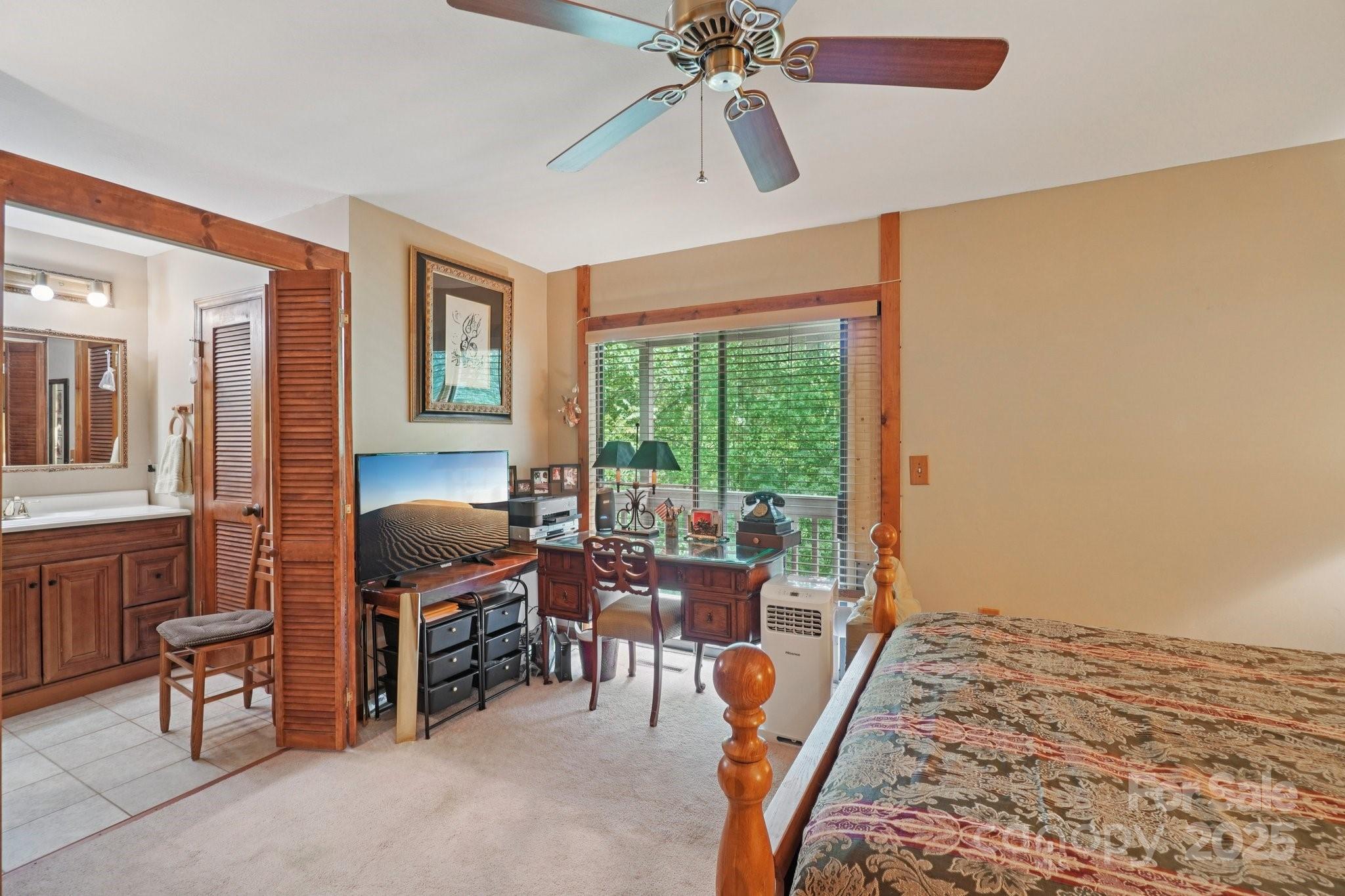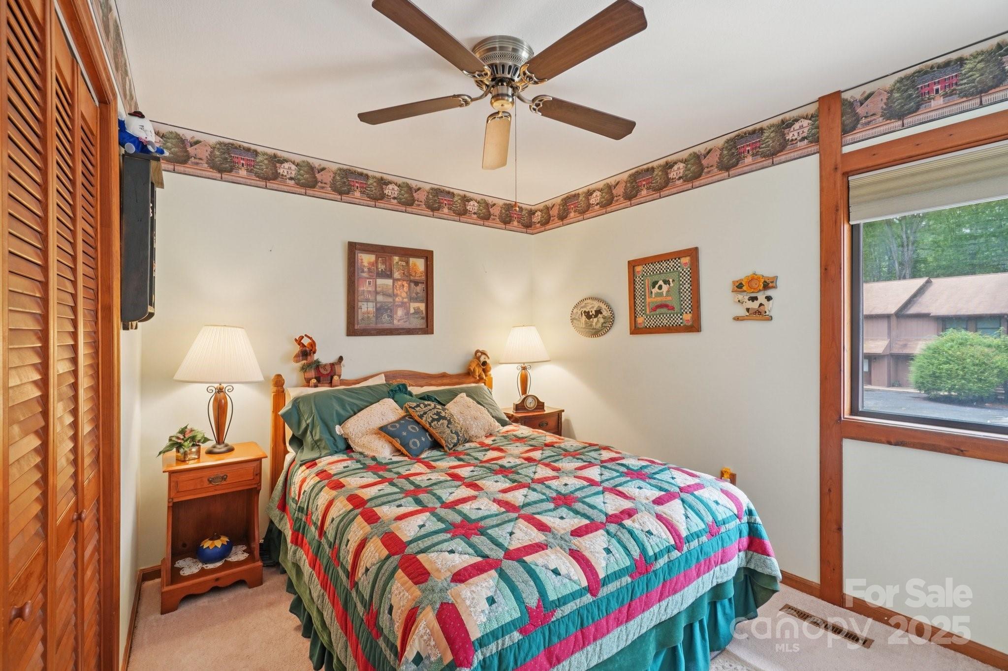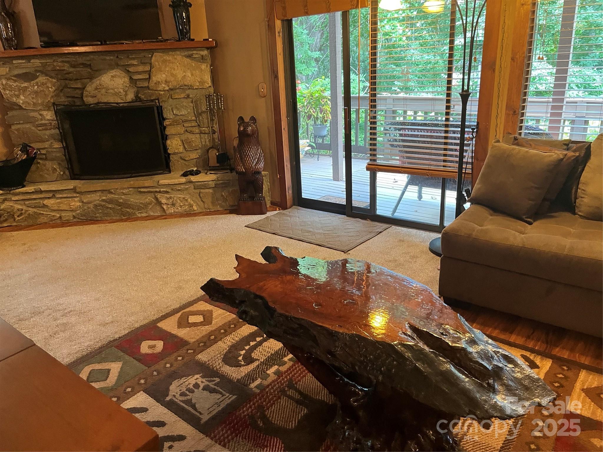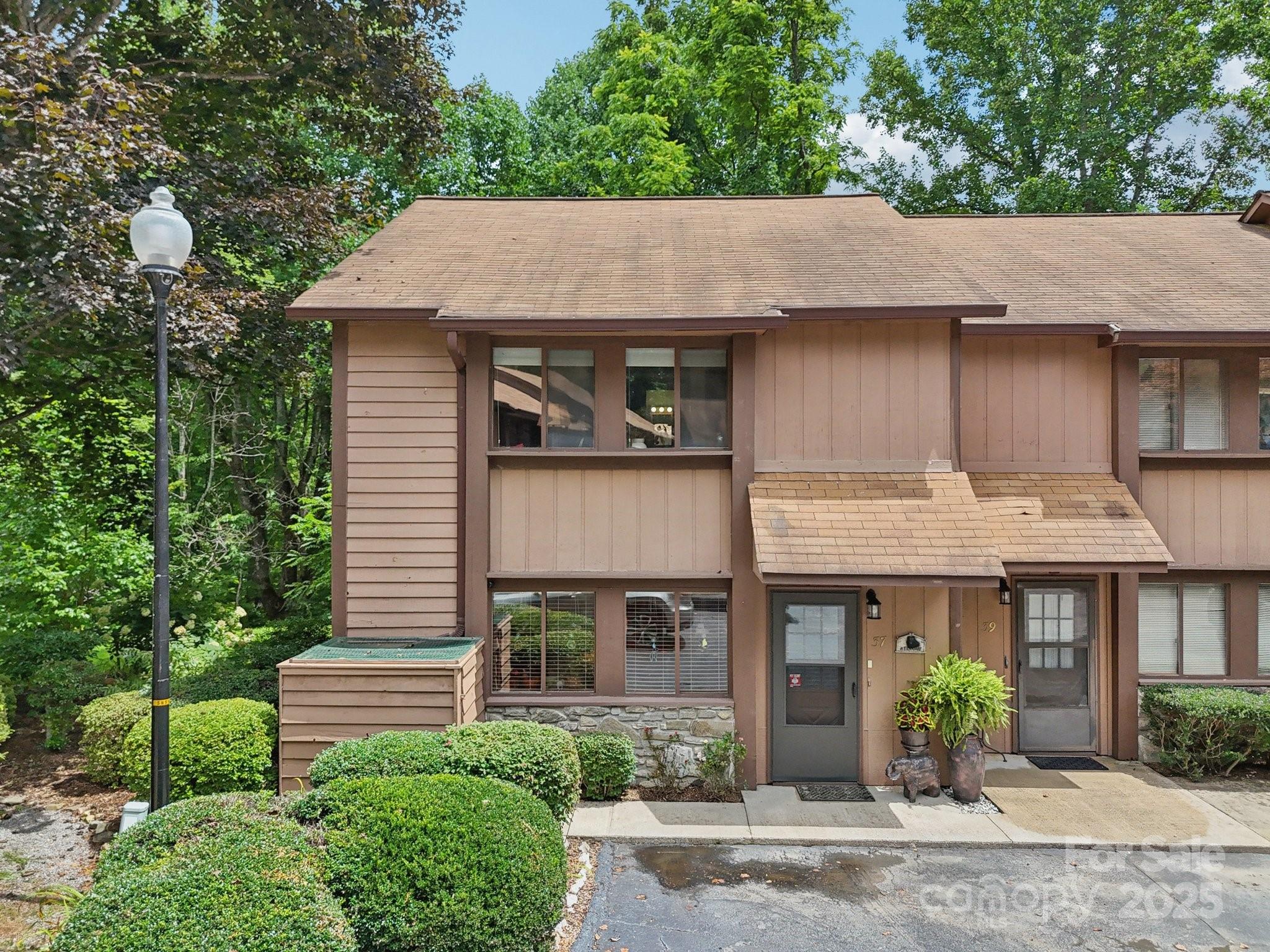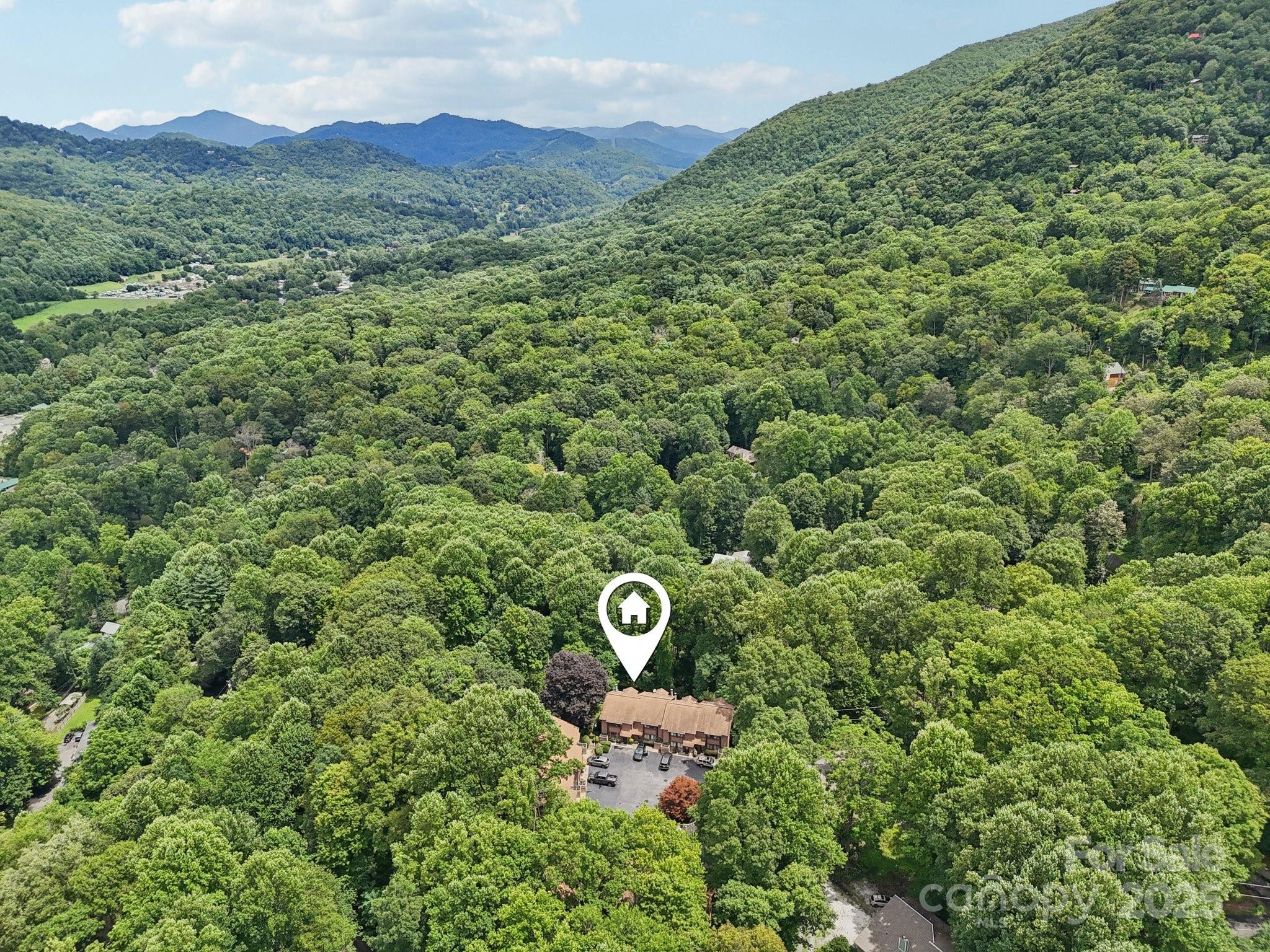 Welcome to this charming 3-bedroom, 2.5-bath townhome ideally located in the heart of Maggie Valley. Thoughtfully designed and well maintained, this residence offers both comfort and convenience in a low-maintenance setting. The main level features an inviting open-concept living area filled with natural light from a large picture window. A wood-burning fireplace creates a cozy focal point, while the kitchen offers tile countertops, a flat cooktop, electric oven, and freshly refinished cabinets. The washer and dryer, located just off the kitchen, are included. A convenient half bath and coat closet complete the first floor. Upstairs, the primary suite opens to a private balcony with panoramic mountain views—sweeping across the surrounding peaks and valleys for a truly breathtaking backdrop, particularly vivid during the winter months. The suite also includes a custom walk-in tile shower with built-in seat, tile flooring, a spacious walk-in closet, and a secondary window A/C unit for added comfort. A chair lift to the second floor conveys with the home, enhancing accessibility. A second full bath with tile flooring serves the additional bedrooms. Additional highlights include ceiling fans throughout, a mix of carpet, tile, and vinyl plank flooring, a dog-proof back deck, under-stair storage, level parking, and wood blinds on all windows. A level common area just outside the unit offers additional outdoor space. This townhome combines mountain charm with practical features—just minutes from all that Maggie Valley has to offer.