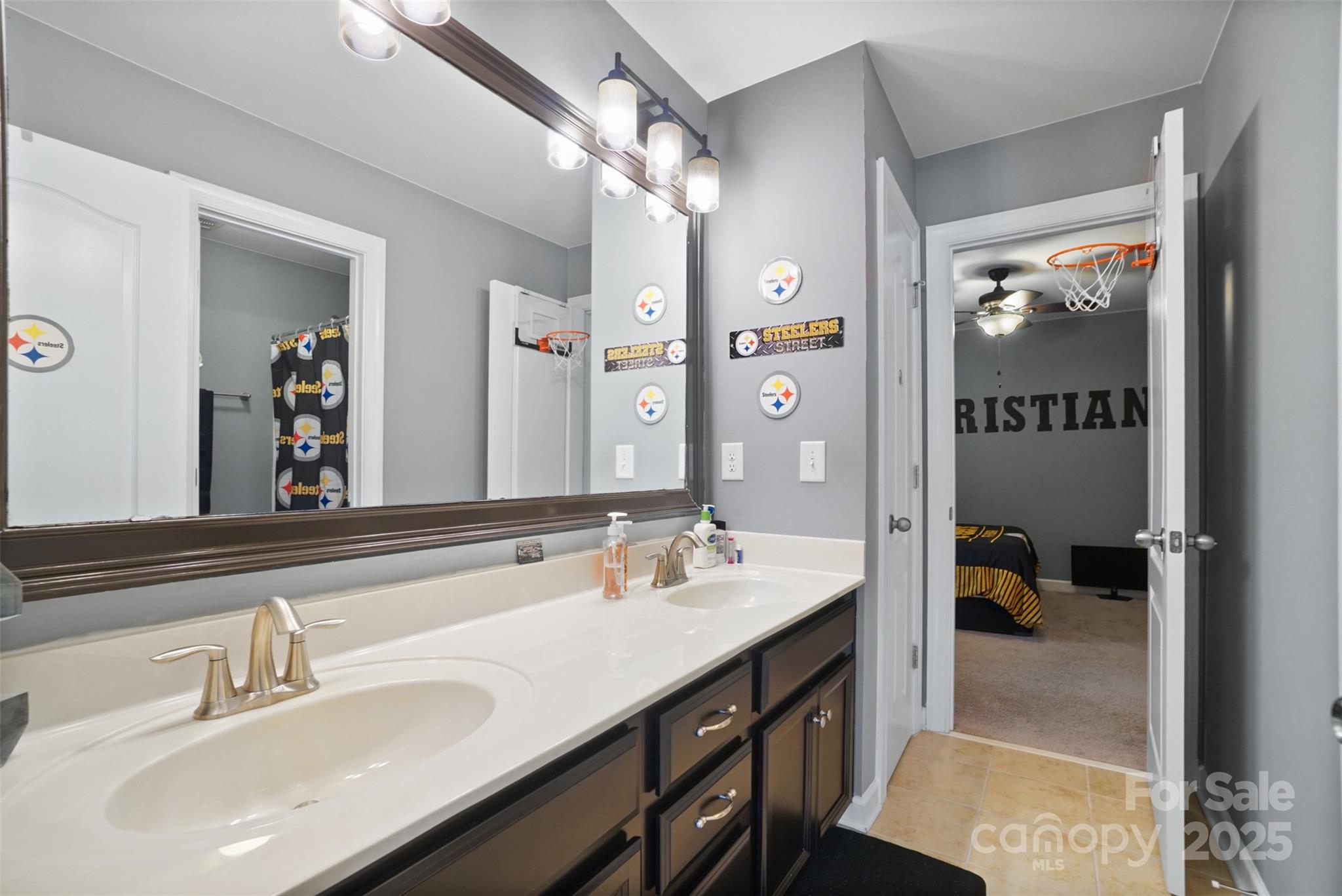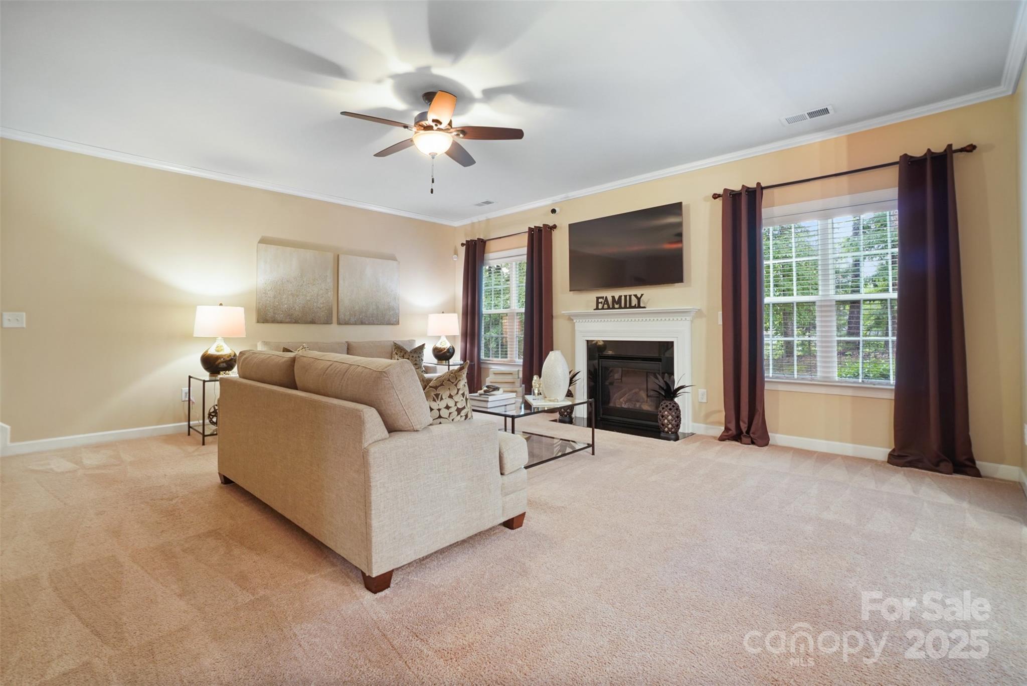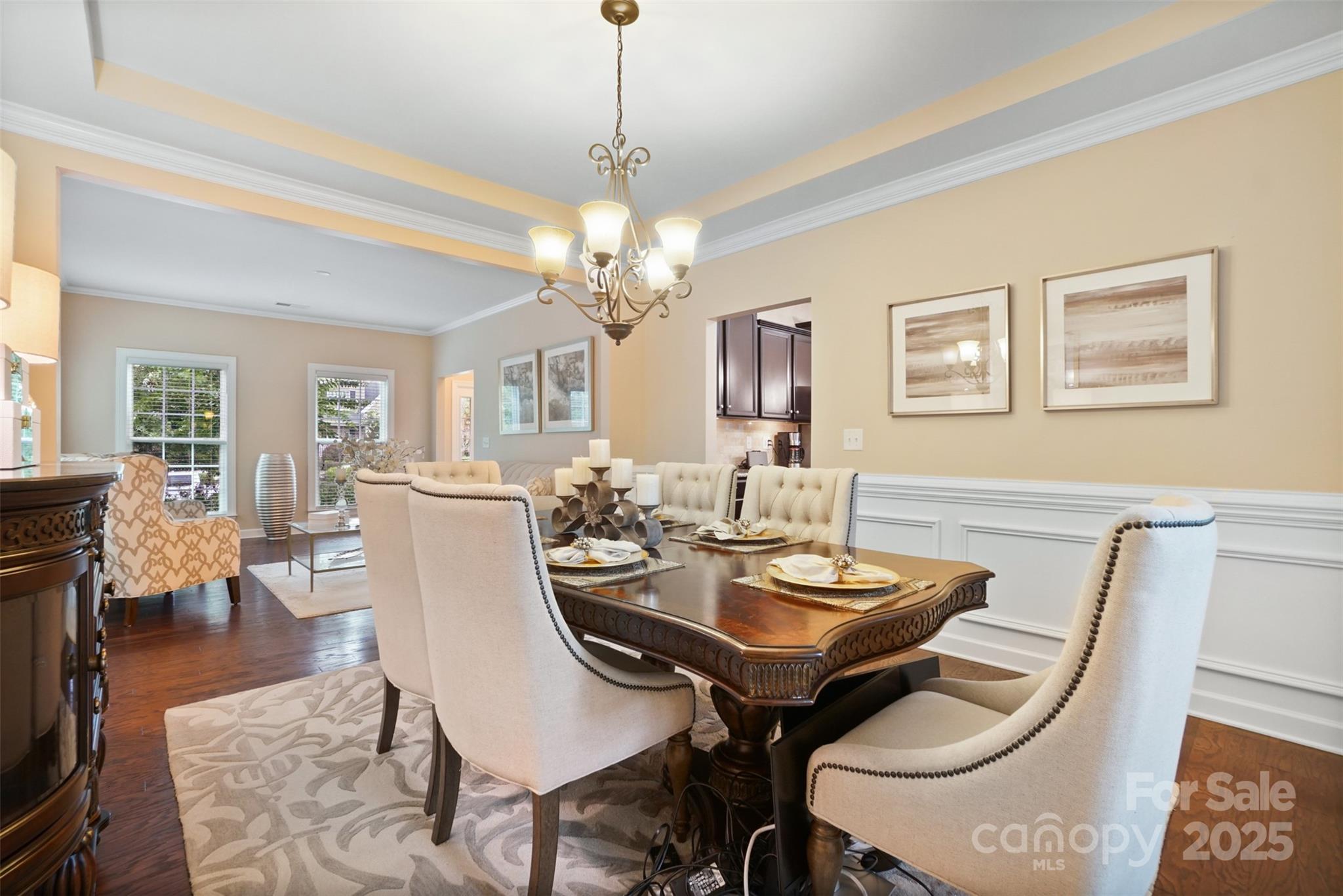 This BEAUTIFUL home offers 4 bedrooms, 3.5 baths and over 3,800 sq. ft of living space. Enjoy all the formals—living room, dining room, and family room—designed for gathering, relaxing, and making memories. The main level showcases a lovely 2 story foyer, gleaming hardwood floors with dual staircases. Front staircase upgraded to hardwood stairs. Spacious kitchen with an oversized island, serving as the centerpiece of the room, generous counter space, and plenty of cabinets with under cabinet lighting. Upgraded lighting package in the kitchen, dining room, foyer and upstairs bathrooms. All bedrooms have ceiling fans. Upstairs features 4 bedrooms and a large bonus room that can be used as a 5th bedroom. Large primary bedroom includes a sitting area. The primary bathroom offers separate vanities, an oversized upgraded frameless shower, garden tub and a large walk-in closet. Head out back and enjoy the outdoors on the extended 21x13 patio, complete with beautiful paver stones and a built in grill. The exterior uplighting shows the true beauty of the home at night. The community features include a swimming pool, pool house, walking trails and playground area.