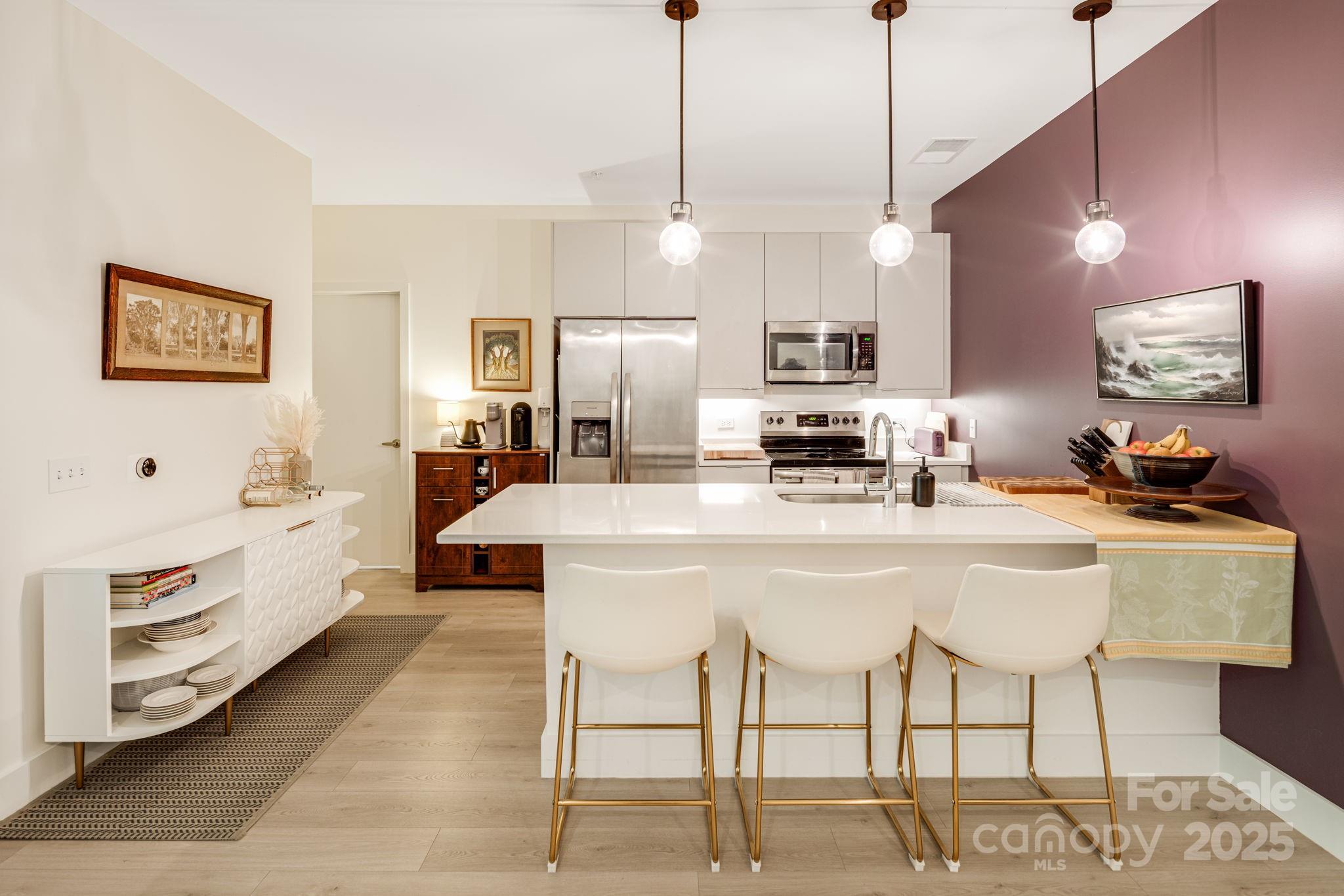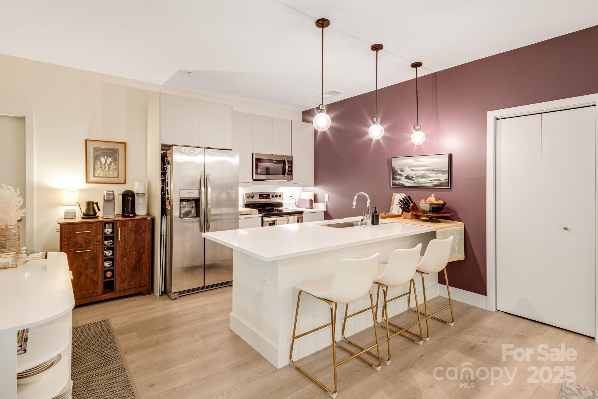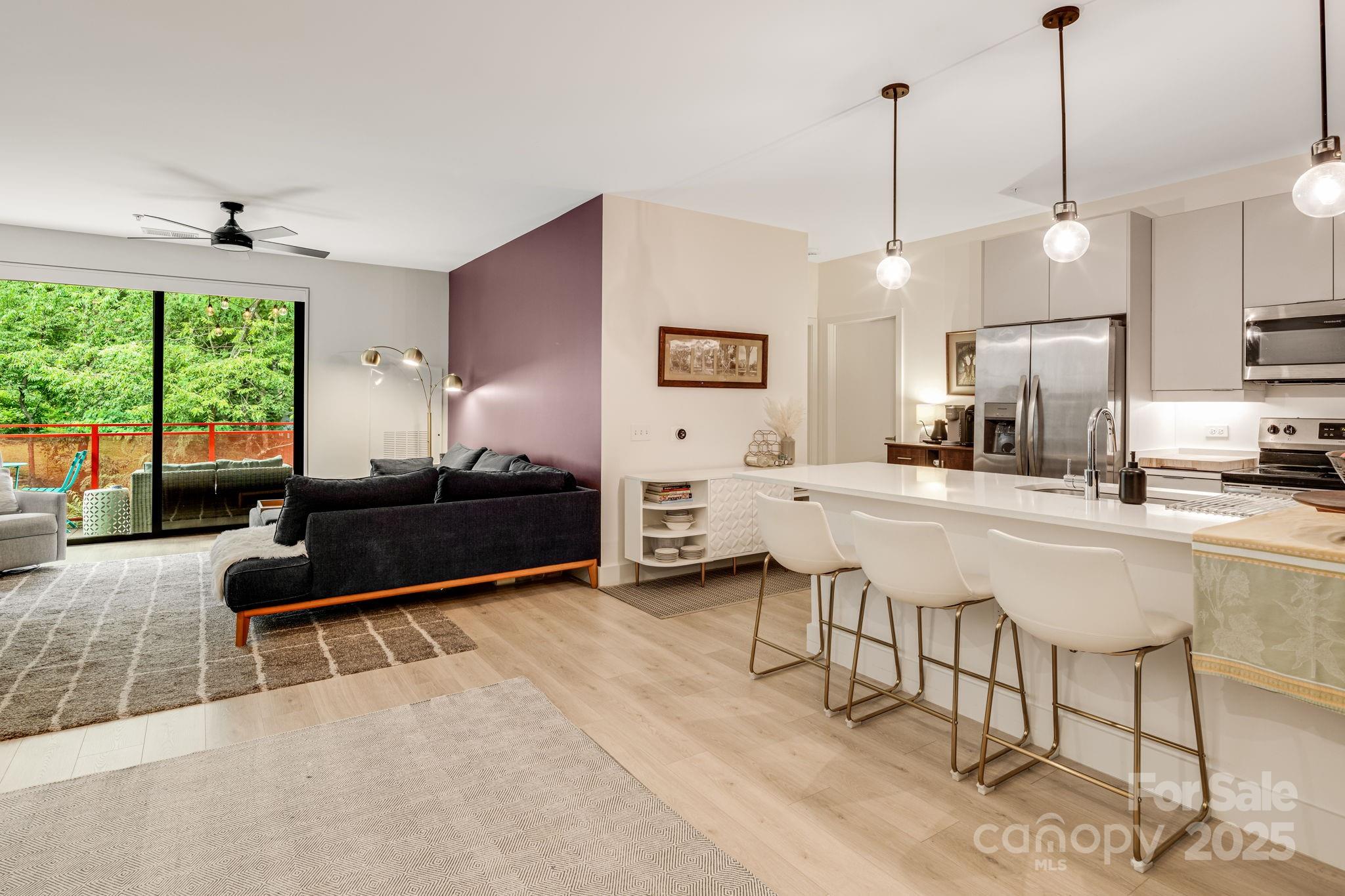 Experience the best of Asheville living at The Landings in the River Arts District. Unit 401 is a rare TOP-floor condo overlooking a tranquil wooded area filled with wildlife, offering the perfect balance of urban convenience and outdoor adventure. This prime location puts you steps from vibrant Downtown Asheville, eclectic West Asheville, and the scenic French Broad River. Across the street, New Belgium Brewing connects you to the French Broad River Greenway—ideal for biking, walking, and soaking in mountain views. Inside, enjoy an open floor plan with modern finishes and the convenience of in-unit laundry hookups. This is the first time this unique floor plan has been available at The Landings, making it a true standout in both layout and location. Deeded parking space in the secure garage and elevator access to the 4th floor make coming and going effortless. Whether for full-time living or a mountain getaway, this condo connects you to Asheville’s art, culture, and natural beauty.