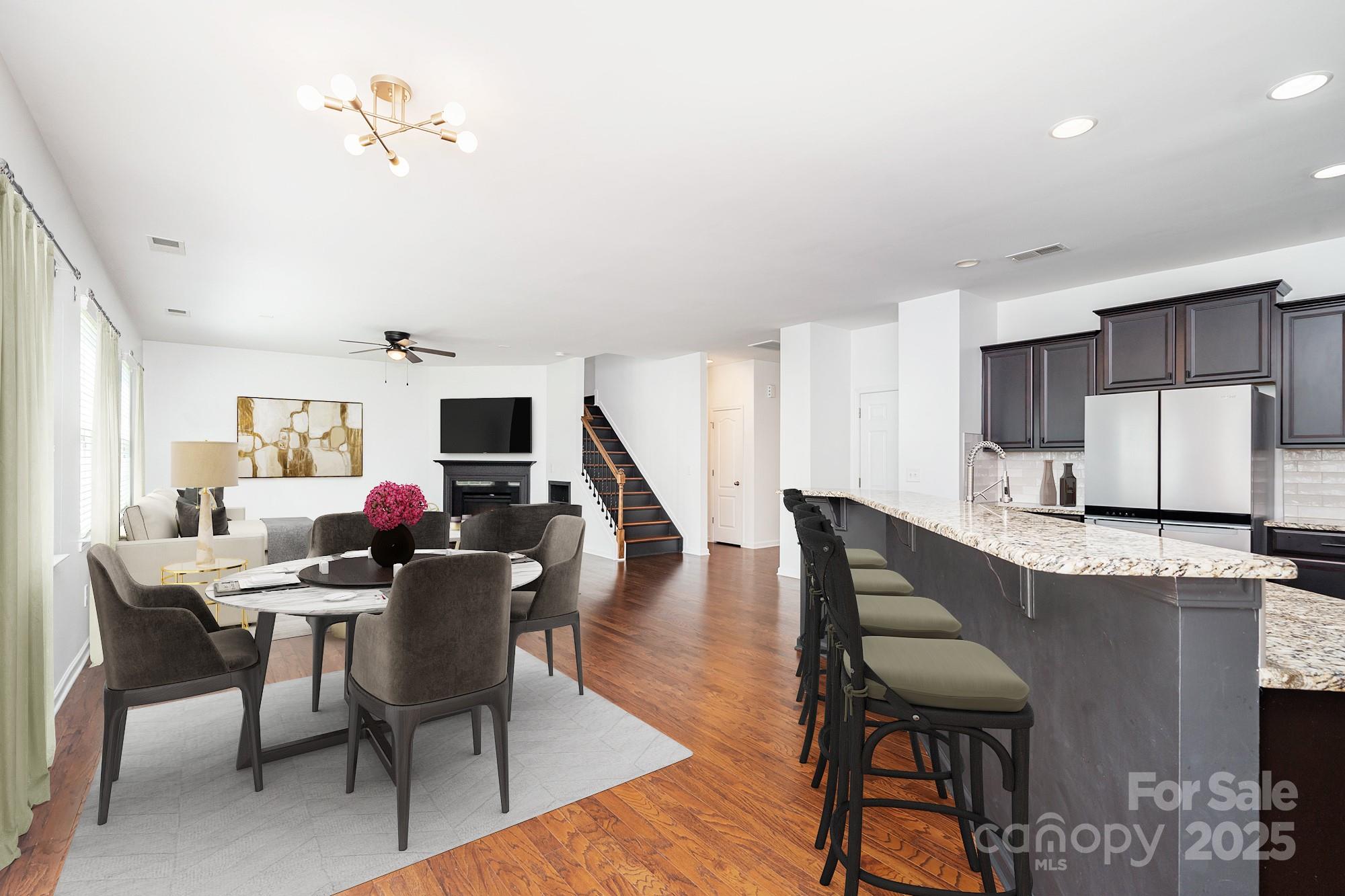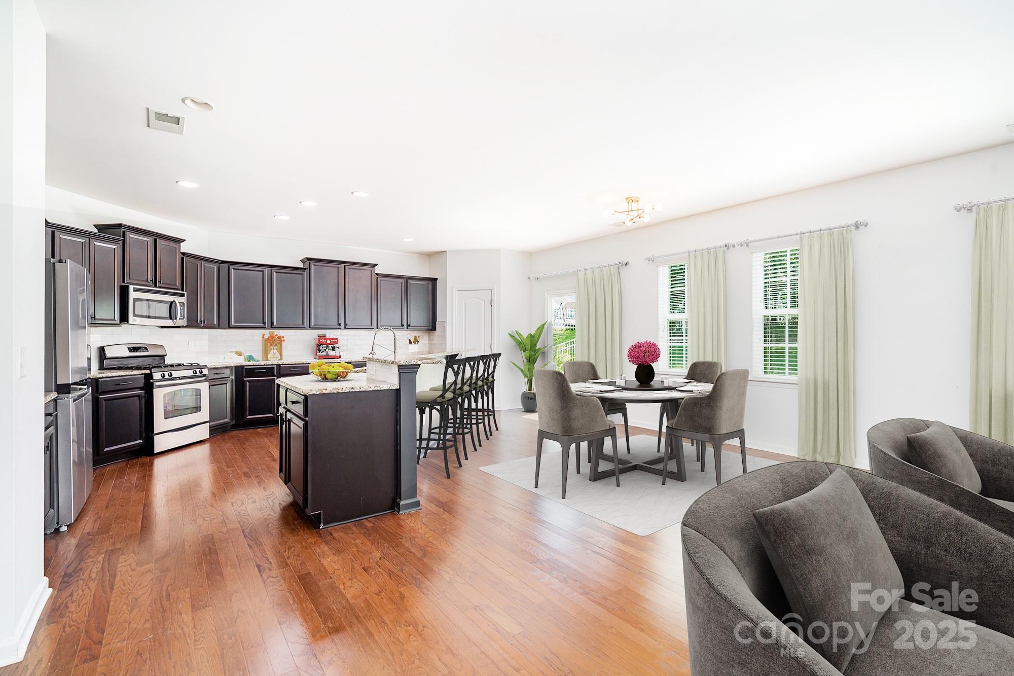 This move-in ready 5 bed, 3.5 bath home in the amenity-rich neighborhood of Lawson offers luxurious living. The open concept floor plan is perfect for entertaining and features a modern kitchen with granite countertops, updated backsplash, stainless steel appliances, walk-in pantry and breakfast bar that seats 5+. The kitchen flows seamlessly into a spacious breakfast area and a light-filled living room with a cozy gas fireplace. The main floor boasts 9ft ceilings, designer lighting and wood floors and includes an office, a formal dining room and half bath. Upstairs, the primary suite is a true retreat with a spa-like bath including a soaker tub, oversized shower, and large walk-in closet. Room for everyone upstairs with four more bedrooms, 2 full baths, and conveniently located laundry room. The two-car garage, fully fenced backyard with trees, and access to community amenities that include a pool, clubhouse, sport courts, playgrounds and walking trails make this home a must-see.