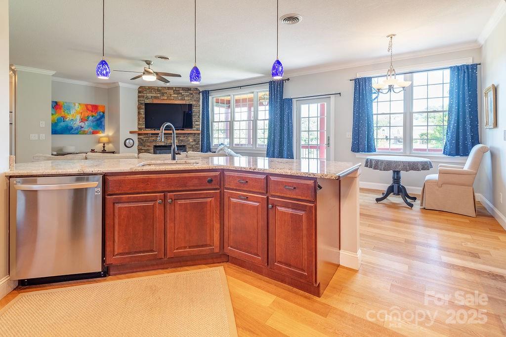 This meticulously cared for home starts with a gorgeous tiled front porch, white oak wood floors, a stone gas fireplace and ample natural light. Then there’s that ideal open plan, granite counters, soft-close cherry cabinets, 2 huge pantries, sturdy 2x6 cement board construction on an acre+ with a level front yard. The spacious basement offers so many options: 4th bedroom, game room, media room, mother-in-law suite, or separate rental with its own kitchenette, laundry and private entrance. In fact, the closer you look, the better this one gets! An extensive 4-year $250,000+ renovation has upgraded EVERYTHING! If you look hard, you might conclude that there is simply little-to-nothing left to be done to this home. And cost-of-ownership going forward should always be a consideration. Review the summary list in the pictures and consider your low long-term expenses! Then enjoy quiet evenings on the back deck while being only a short drive to town. Relish the dark night sky, revealing the Milky Way. Take in a sunset in the blue Adirondack chairs at the corner of the property for those long-range mountain views. All while being far enough away from highways to only have birds interrupt your silence. Carefully maintained, this turnkey home is ready for you!