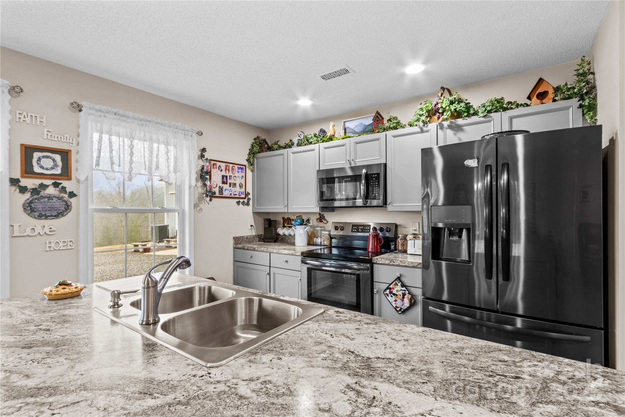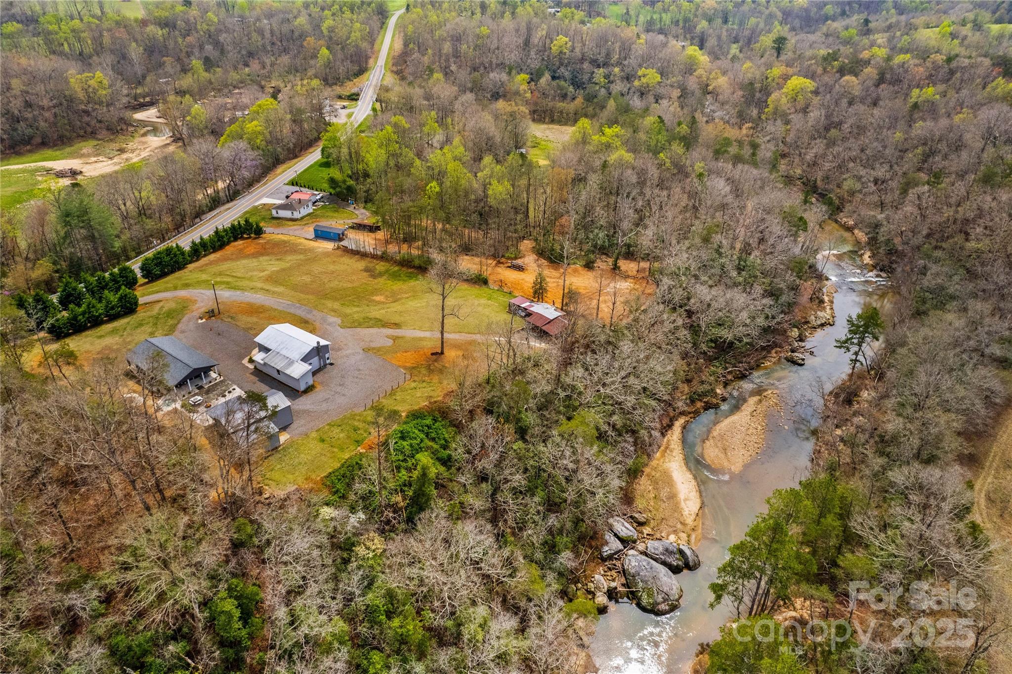 Escape to the tranquility of rural Hiddenite, North Carolina! This meticulously maintained home sits on a sprawling 2.85-acre lot, providing panoramic views of the majestic mountains and the picturesque South Yadkin River. Enjoy the peace and quiet of countryside living, enhanced by a delightful water feature. The property boasts a detached 2-bay carport, one bay is tall enough for an RV, along with a storage shed featuring a convenient garage door. Relax on either the front or back covered porch, perfect for enjoying the stunning scenery. The main house has 2 bedrooms and the accessory building has one bedroom. The accessory building, offers over 1300 square feet of versatile space, including a kitchen, bedroom and bathroom. There are 2 RV stations available on the driveway. Home and building each have their own septic tank & power meters. A tractor shed also included. Experience the perfect blend of comfort and natural beauty in this exceptional Hiddenite retreat.