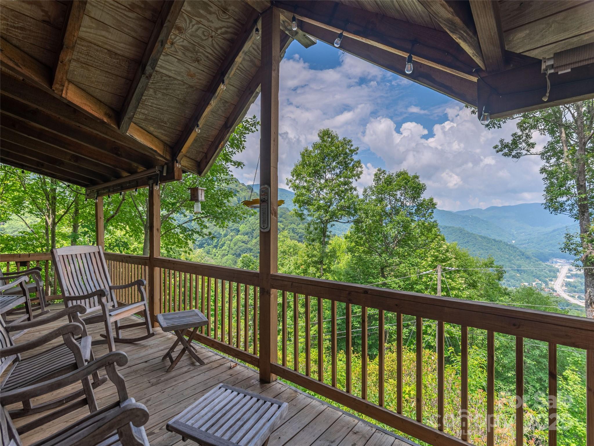 Nestled at a serene 3,800-foot elevation just above Maggie Valley, this inviting Arts&Crafts style home offers sweeping mountain views and a peaceful, private setting. Effectively four sleeping rooms spread across three levels for privacy’s sake. A longtime family vacation retreat, the home blends rustic charm with modern comfort, featuring recent upgrades that include a beautifully renovated kitchen and the addition of a spacious primary bedroom suite. Whether you're looking for a personal mountain getaway or a turnkey rental investment, this property boasts a strong history of successful vacation rentals. Enjoy crisp mountain air, stunning vistas, and the tranquil beauty of the Smokies from this idyllic mountain escape.