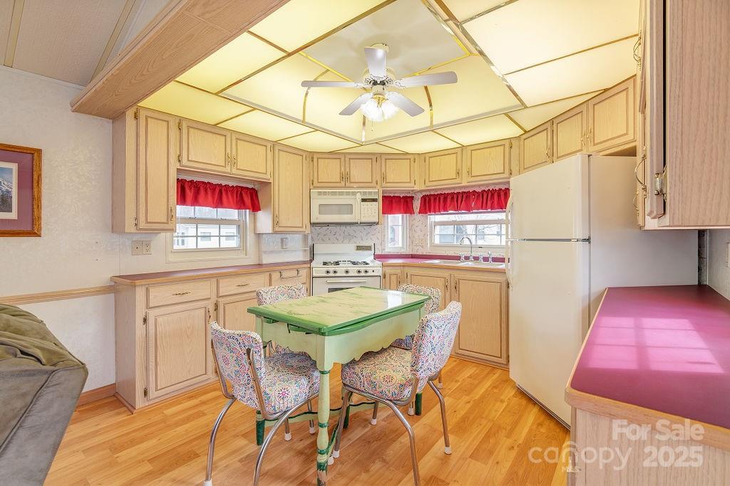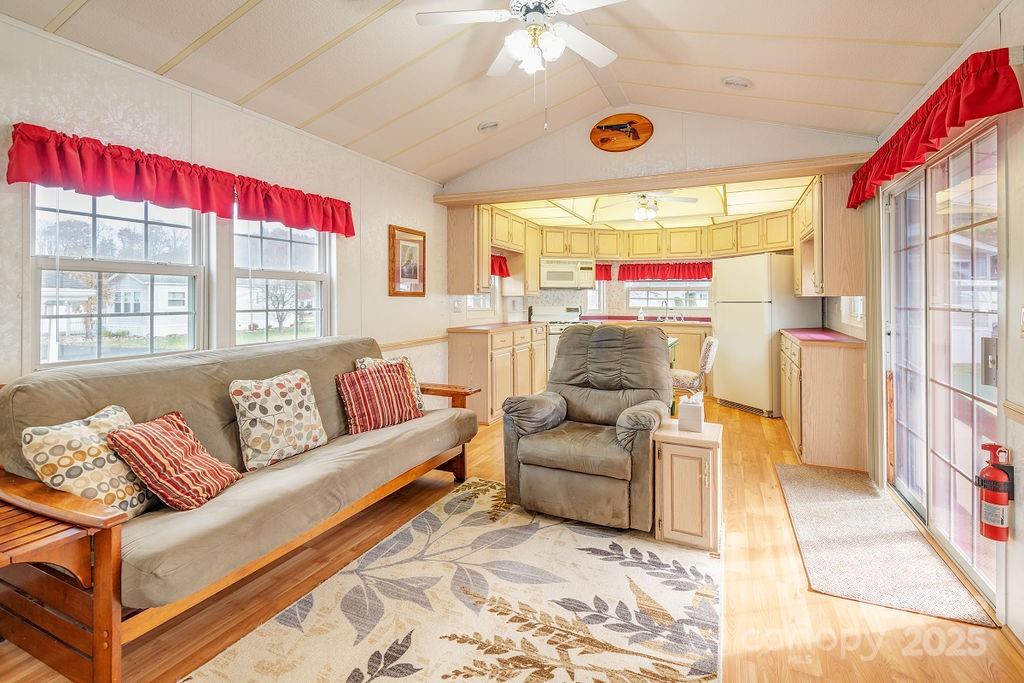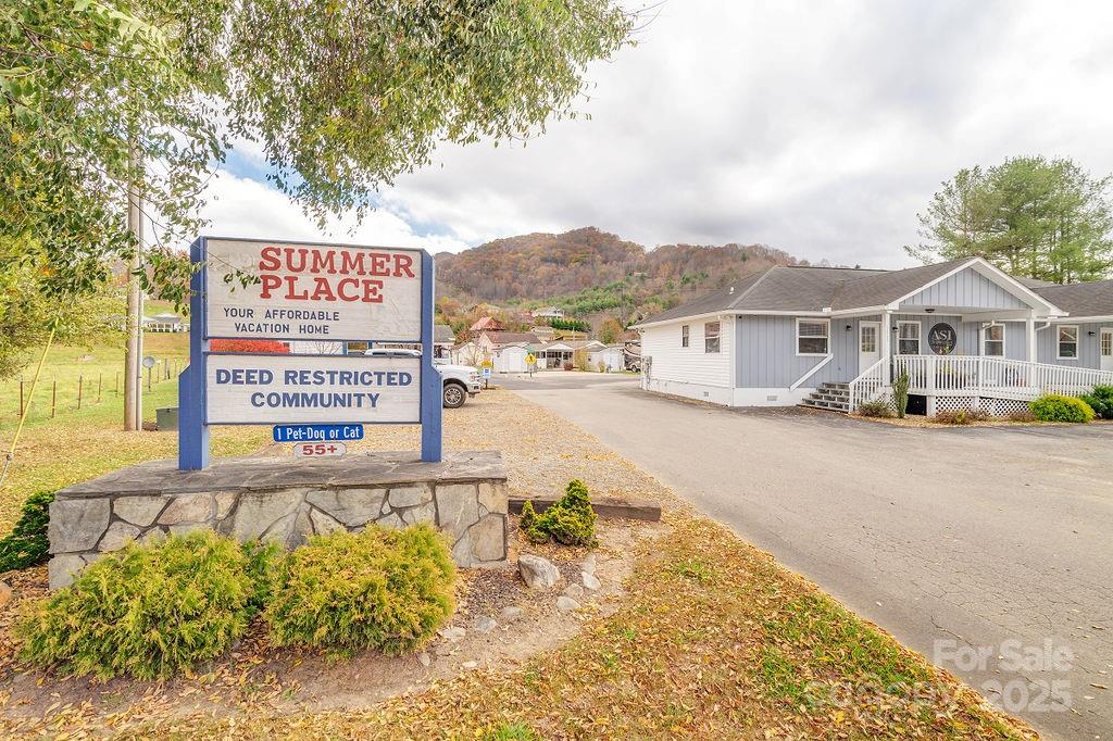 OWNER FINANCING AVAILABLE! Adorable park model tiny home with beautiful year round mountain views. Quiet 55 and older community where the neighbors take pride in their homes and yards. There is no lot rent, you own the land. Low hoa fee of just 100.00 a yr currently. Home is 1/1 with the kitchen open to the living room for easy entertaining, and a loft for extra storage or for when the little ones visit and will come fully furnished. Paved driveway with an attached carport and plenty of room for a patio area. Nice paved roads for walking or riding your bike. Easy access to I-40, close to Maggie Valley, historic downtown Waynesville, hiking trails, waterfalls and the Cataloochee ski area, which you can see from your home in the winter, so pretty! One pet allowed.