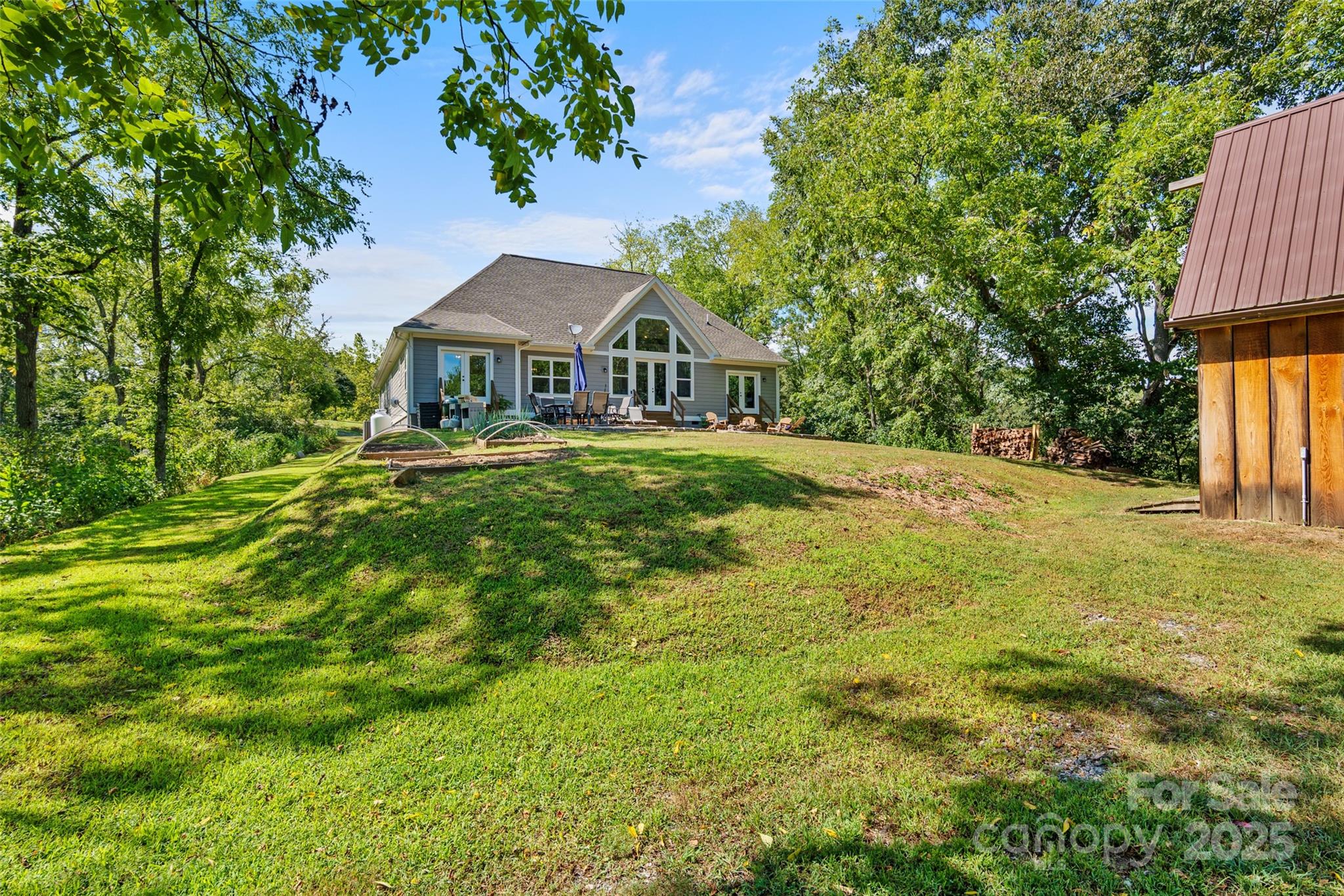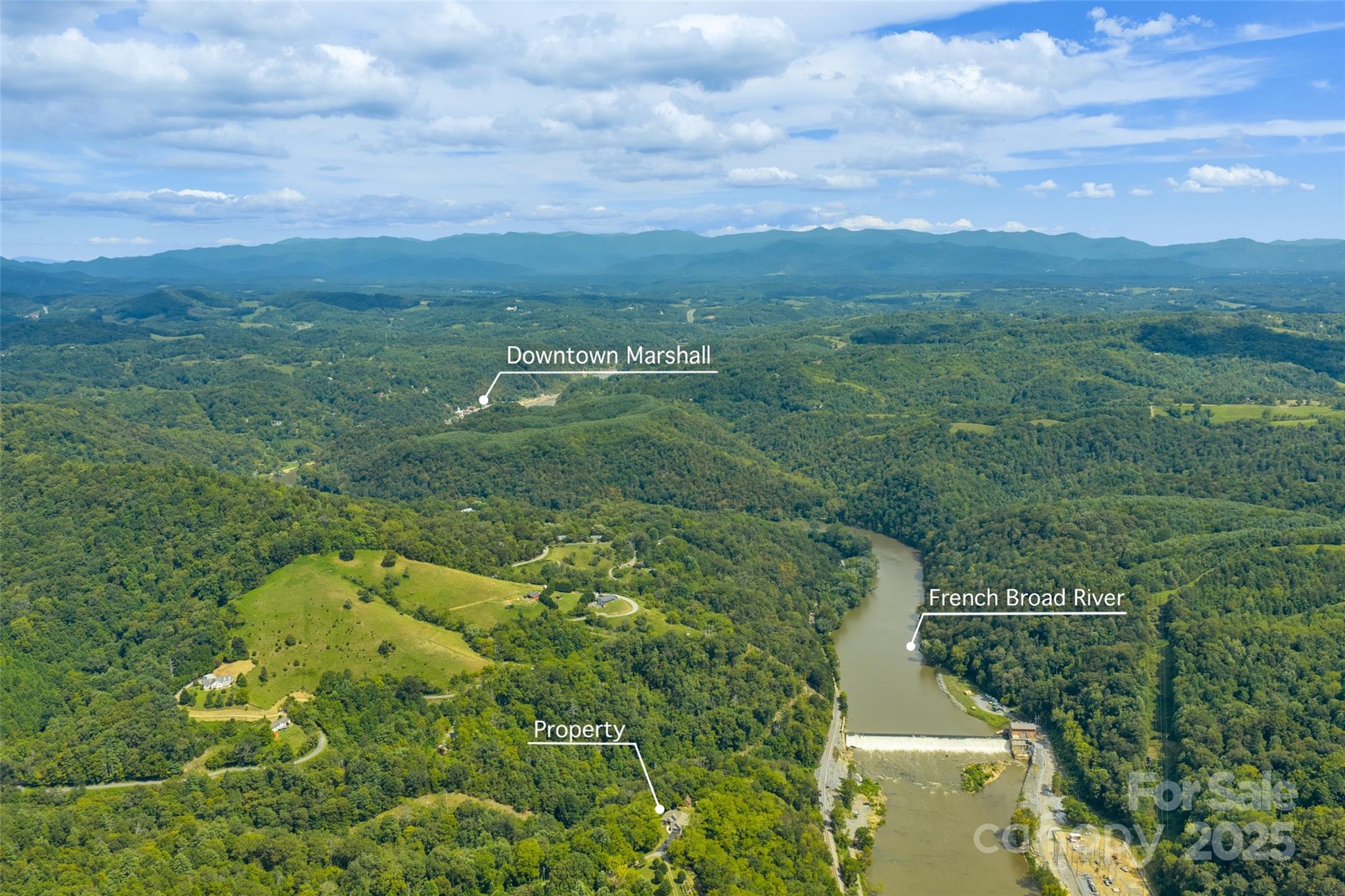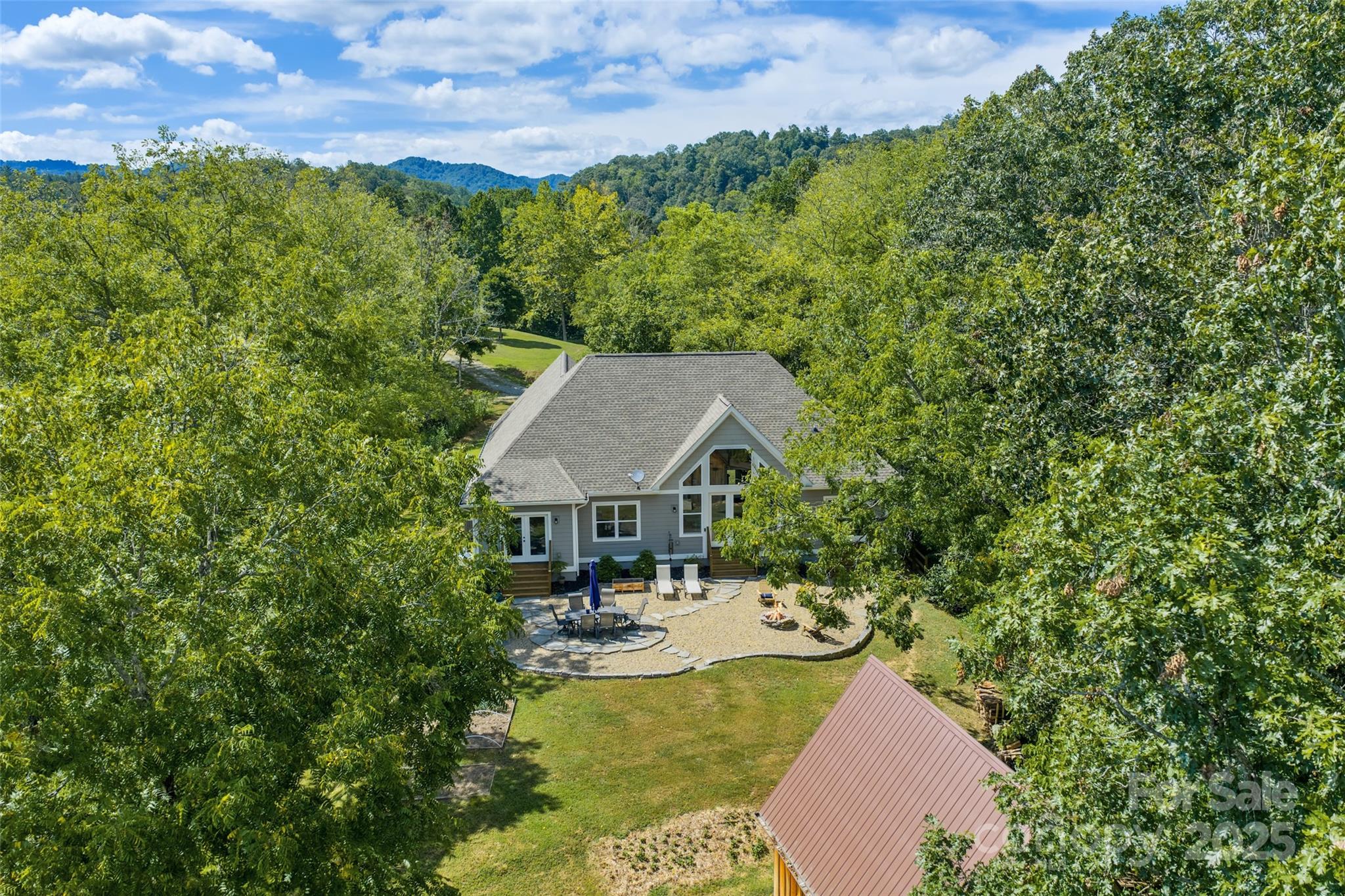 Priced for quick sale!! Welcome to this newer, move-in-ready custom home by Brown Haven, a contemporary masterpiece that blends upgrades with a tranquil, private setting. Situated on 11.83 acres, this property offers year-round mountain views and seasonal views of the French Broad River below, all while providing peace of mind as the entire property sits above the flood plain, having sustained no damage from the recent 100+ year storm. This home is designed for seamless, one-level living with minimal entry steps and a highly functional split bedroom design. The open floor plan is a highlight, featuring impressive 9-foot ceilings throughout and a soaring 17-foot cathedral ceiling with open beams in the living room. Natural light pours in through the spacious windows, offering constant access to the stunning views. The living room is anchored by a beautiful stone fireplace with unvented gas logs, flanked by custom built-ins. The kitchen is well designed with Hickory cabinets, stainless appliances and a beautiful work island/eat in bar. The home combines style with practicality, featuring low-maintenance vinyl plank floors in the main living areas, plush carpeting in the bedrooms, and durable tile floors in the bathrooms and laundry room. One of the bedrooms includes convenient pocket doors, making it a perfect, flexible space for a home office or den. The exterior is just as thoughtfully designed as the interior. The home has a low-maintenance fiber cement exterior, and the property features a flat, paved driveway leading to an oversized 2-car garage with a granite non-slip floor. The garage offers plenty of extra shelving for storage plus a drop-stair access to additional overhead storage. The rear yard is a true outdoor oasis, boasting an oversized gravel and stone patio with a firepit—ideal for gatherings and enjoying the sounds of the river. A small fenced area provides a safe space for pets. The property also includes a newer 550 sq. ft., two-story barn, a versatile space that could be used as a workshop, artist studio, or for additional storage. With an abundance of black walnut trees and a nearly-level yard at the homesite, this property provides ample privacy and a pristine setting. This home is a perfect primary or secondary residence with short-term rental possibilities (buyer to confirm). It offers a perfect balance of seclusion and convenience: located minutes from the Redmon Dam public river access (great for fishing, tubing, or kayaking), less than 10 minutes from downtown Marshall, and just 30 minutes from downtown Asheville. You are also less than 40 minutes from Hatley Pointe Mountain Ski Resort (formerly Wolf Laurel), ensuring endless outdoor recreation. This home checks all the boxes for a perfect mountain retreat, so don't delay!