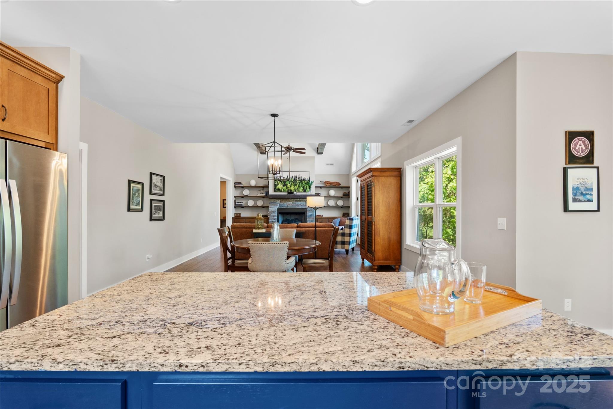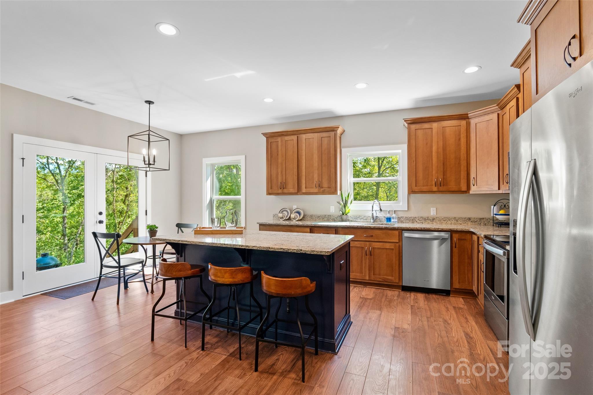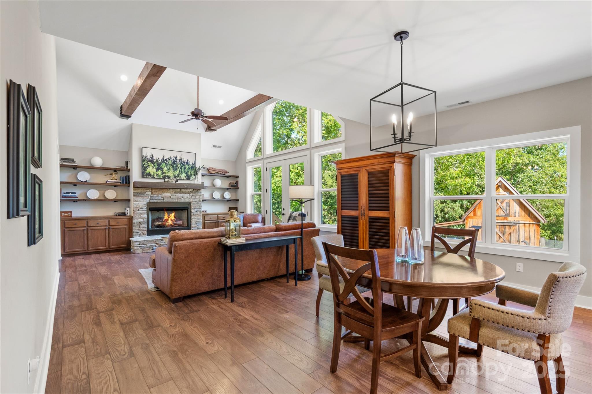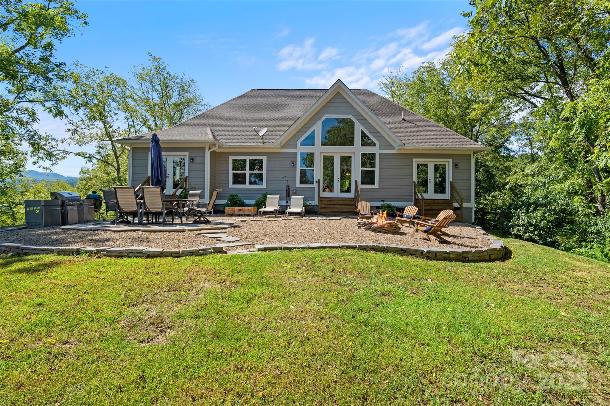 Priced for quick sale!! Welcome to this newer, move-in-ready custom home by Brown Haven, a contemporary masterpiece that blends upgrades with a tranquil, private setting. Situated on 11.83 acres, this property offers year-round mountain views and seasonal views of the French Broad River below, all while providing peace of mind as the entire property sits above the flood plain, having sustained no damage from the recent 100+ year storm. This home is designed for seamless, one-level living with minimal entry steps and a highly functional split bedroom design. The open floor plan is a highlight, featuring impressive 9-foot ceilings throughout and a soaring 17-foot cathedral ceiling with open beams in the living room. Natural light pours in through the spacious windows, offering constant access to the stunning views. The living room is anchored by a beautiful stone fireplace with unvented gas logs, flanked by custom built-ins. The kitchen is well designed with Hickory cabinets, stainless appliances and a beautiful work island/eat in bar. The home combines style with practicality, featuring low-maintenance vinyl plank floors in the main living areas, plush carpeting in the bedrooms, and durable tile floors in the bathrooms and laundry room. One of the bedrooms includes convenient pocket doors, making it a perfect, flexible space for a home office or den. The exterior is just as thoughtfully designed as the interior. The home has a low-maintenance fiber cement exterior, and the property features a flat, paved driveway leading to an oversized 2-car garage with a granite non-slip floor. The garage offers plenty of extra shelving for storage plus a drop-stair access to additional overhead storage. The rear yard is a true outdoor oasis, boasting an oversized gravel and stone patio with a firepit—ideal for gatherings and enjoying the sounds of the river. A small fenced area provides a safe space for pets. The property also includes a newer 550 sq. ft., two-story barn, a versatile space that could be used as a workshop, artist studio, or for additional storage. With an abundance of black walnut trees and a nearly-level yard at the homesite, this property provides ample privacy and a pristine setting. This home is a perfect primary or secondary residence with short-term rental possibilities (buyer to confirm). It offers a perfect balance of seclusion and convenience: located minutes from the Redmon Dam public river access (great for fishing, tubing, or kayaking), less than 10 minutes from downtown Marshall, and just 30 minutes from downtown Asheville. You are also less than 40 minutes from Hatley Pointe Mountain Ski Resort (formerly Wolf Laurel), ensuring endless outdoor recreation. This home checks all the boxes for a perfect mountain retreat, so don't delay!