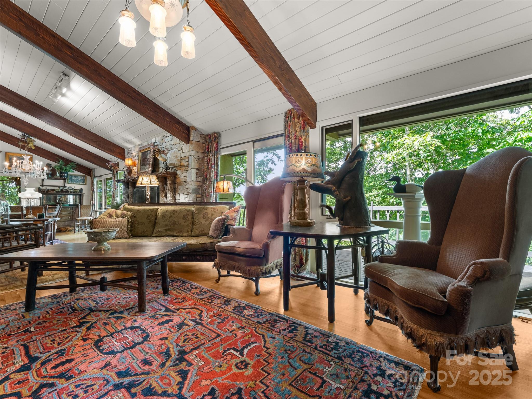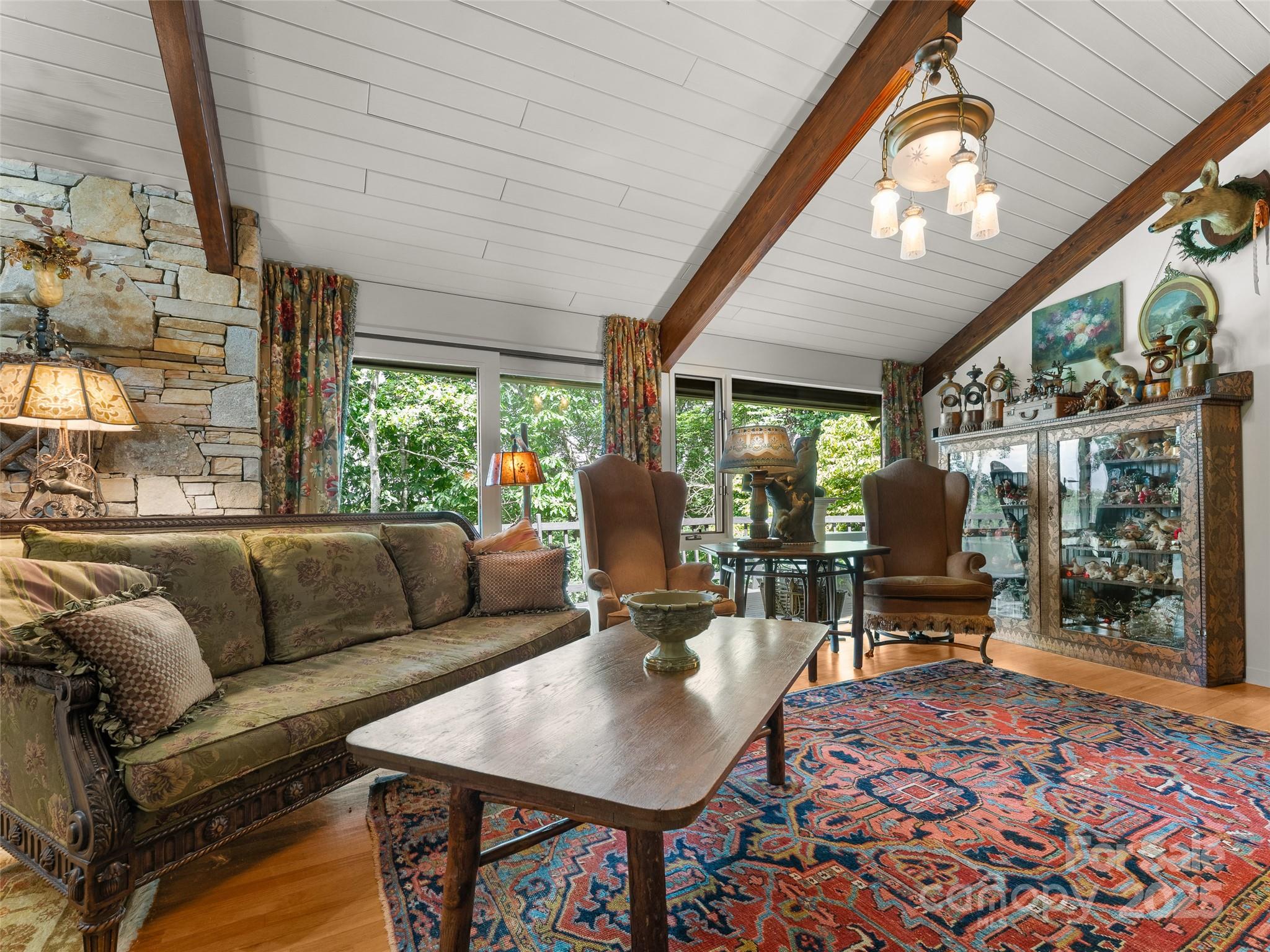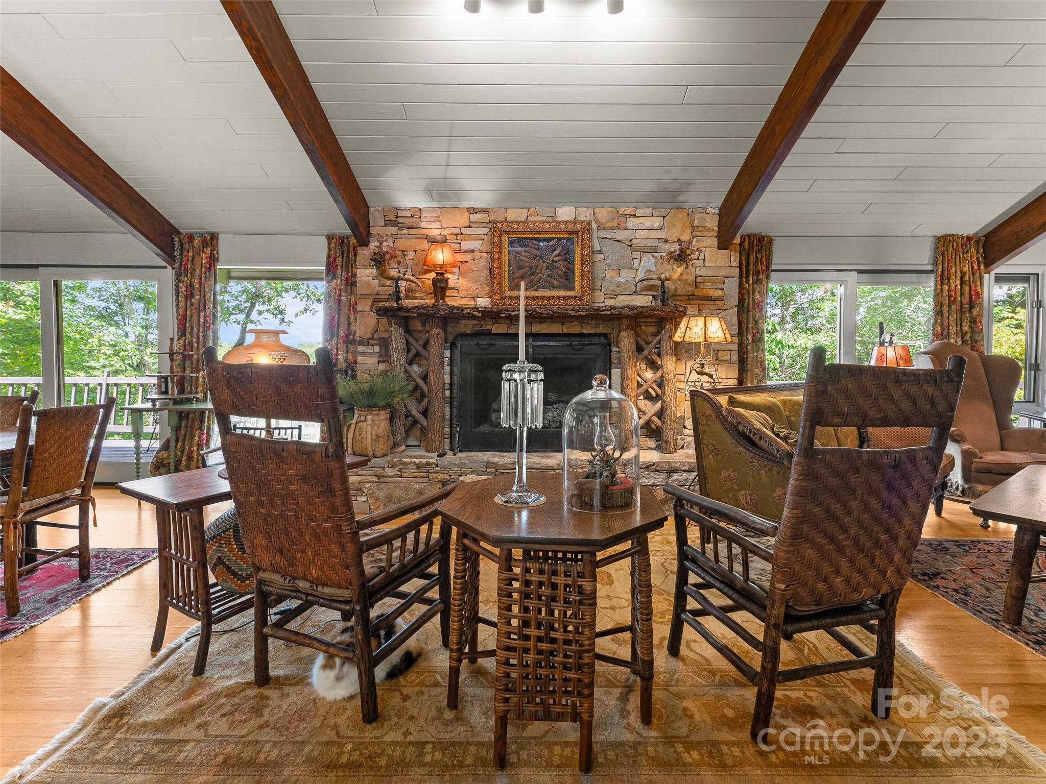Nestled at the end of a quiet cul-de-sac in Connestee Falls, 632 Dvdisdi Court offers a rare combination of privacy, mountain views, and modern updates. This 1.6-acre retreat is surrounded by mature trees, native ferns, and abundant wildlife, with a flat approach and welcoming front porch. Enjoy Blue Ridge Mountain sunsets from the expansive back deck. Inside, this Acorn Deck home blends classic lodge character including poplar siding, hand-cut locust railings, wood beams, and a massive stone fireplace, with recent renovations, including a brand-new chef’s kitchen, updated baths, new A/C, plumbing, and electrical. The main level features a spacious living and dining area, primary suite, office, and even a heated and cooled workshop. The lower level is perfect for entertaining, with a billiards area, wet bar, fridge, and three versatile rooms for guests, hobbies, or a home gym. A short drive to the clubhouse and amenities, this is a true mountain retreat where charm meets convenience.