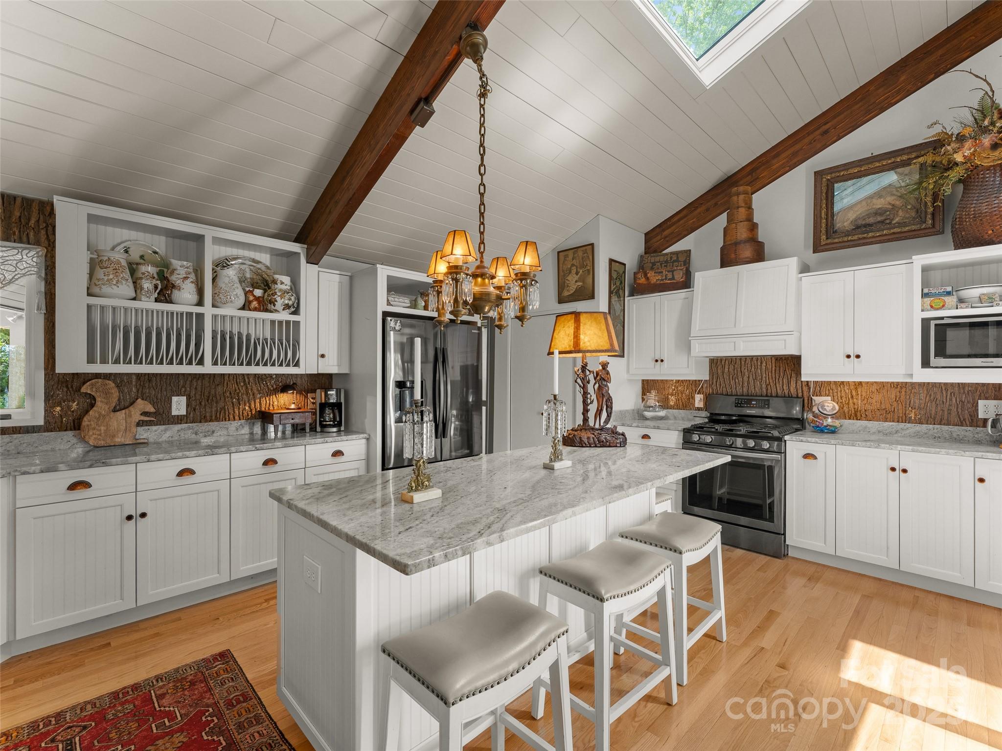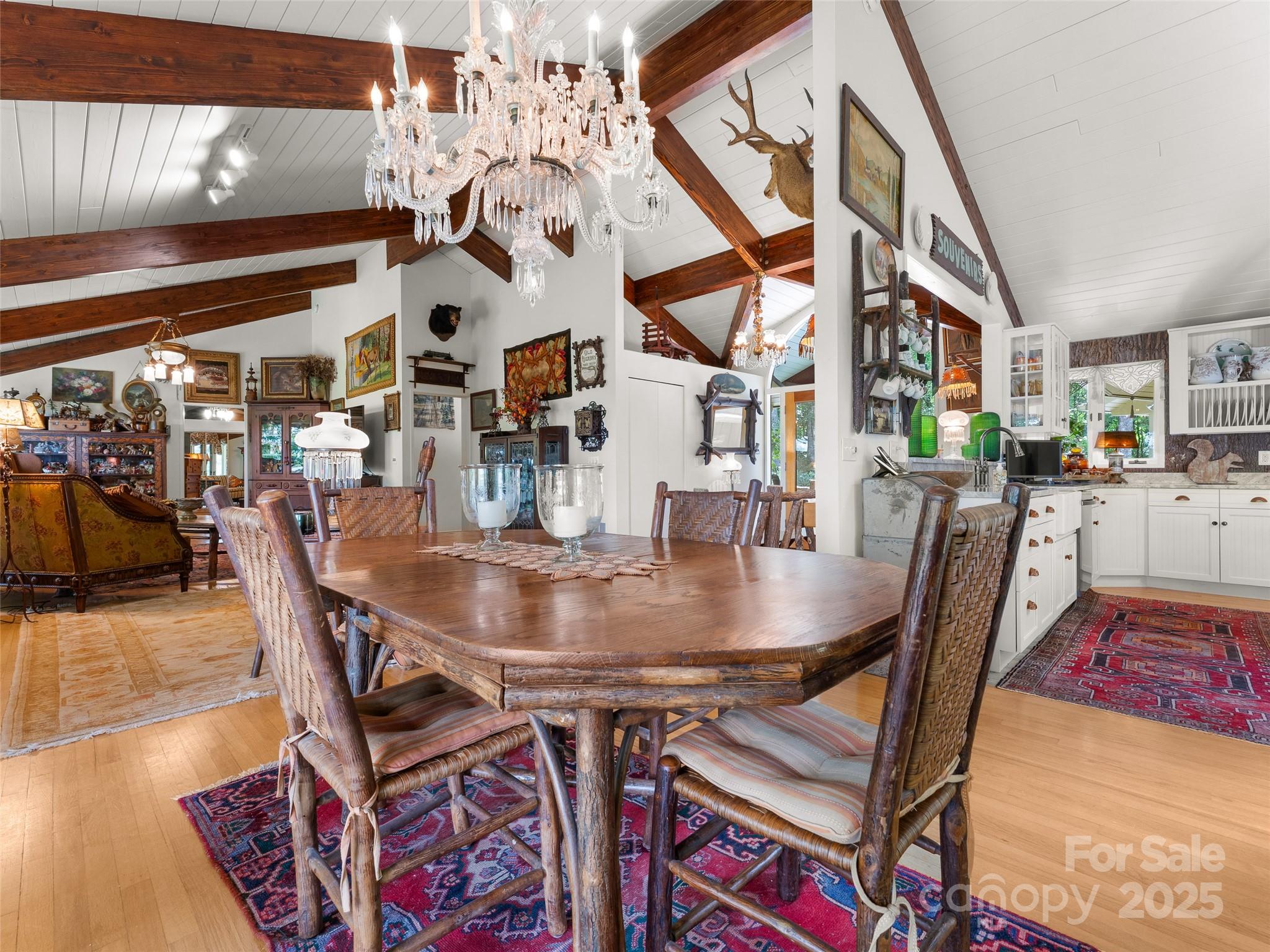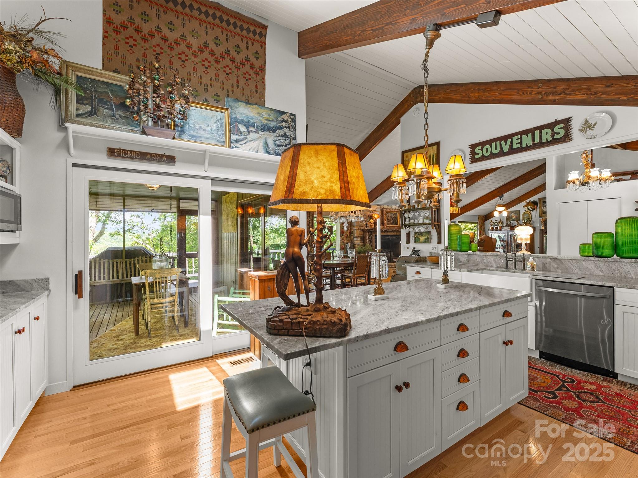 Nestled at the end of a quiet cul-de-sac in Connestee Falls, 632 Dvdisdi Court offers a rare combination of privacy, mountain views, and modern updates. This 1.6-acre retreat is surrounded by mature trees, native ferns, and abundant wildlife, with a flat approach and welcoming front porch. Enjoy Blue Ridge Mountain sunsets from the expansive back deck. Inside, this Acorn Deck home blends classic lodge character including poplar siding, hand-cut locust railings, wood beams, and a massive stone fireplace, with recent renovations, including a brand-new chef’s kitchen, updated baths, new A/C, plumbing, and electrical. The main level features a spacious living and dining area, primary suite, office, and even a heated and cooled workshop. The lower level is perfect for entertaining, with a billiards area, wet bar, fridge, and three versatile rooms for guests, hobbies, or a home gym. A short drive to the clubhouse and amenities, this is a true mountain retreat where charm meets convenience.
