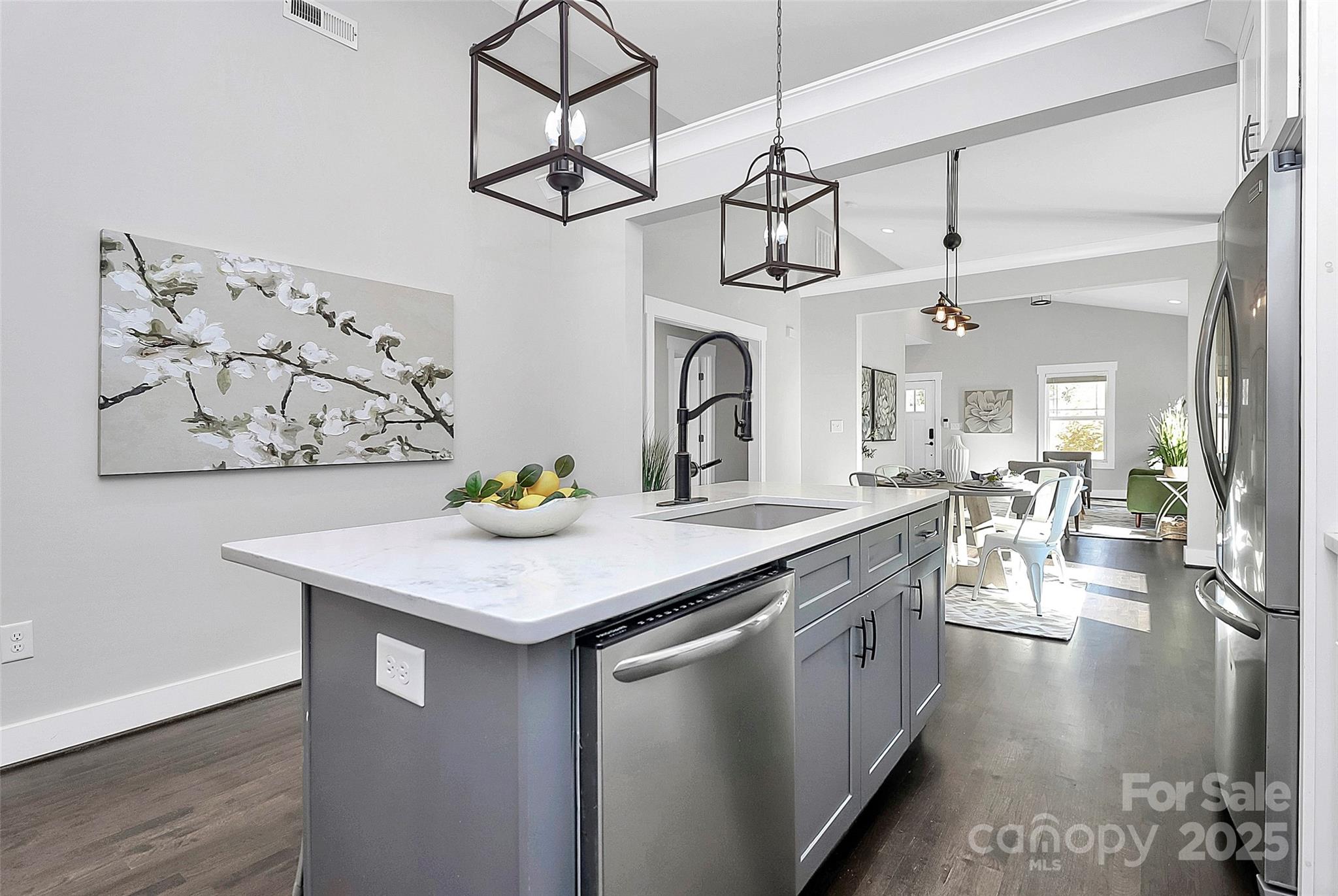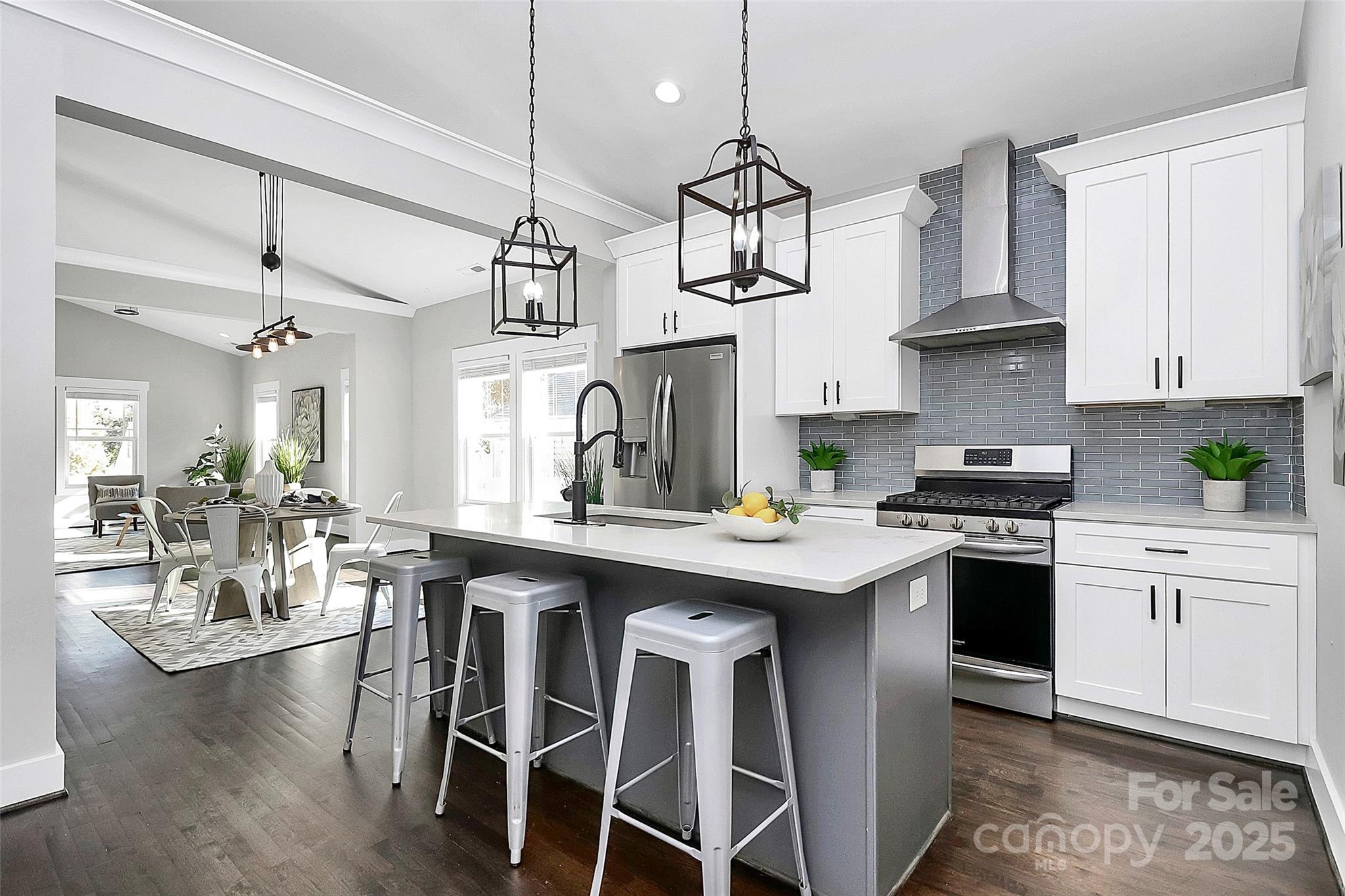 Built in 2017, this Home not only has an amazing UPTOWN Walkable Camp North End Location, it is also fully updated and beautifully showcased! This 'Heart of the City' Home welcomes you with All the Southern Charm! A spacious covered front porch, open floorplan, and beautiful hardwood floors. Perfect for entertaining; living room and dining area flow seamlessly to the gorgeous kitchen featuring quartz countertops, tile backsplash, stainless steel appliances with a gas range/hood. There is even an amazing walk-in pantry! The primary en suite has gorgeous french doors that open to a large deck overlooking the lush and private fenced-in backyard. (The huge backyard is such a rarity this close to the city!) Double vanity with oversized shower, water closet, and a huge walk-in closet make this the perfect space. Two spacious bedrooms, and a full bath complete the functional design. Off the kitchen you'll find the laundry/storage area, and access to the back deck/yard where raised garden beds are awaiting your herbs and flowers! Minutes to Uptown, Music Factory, NoDa, and Southend, this city gem is calling your name! This is such a great home and it is PRICED TO SELL! Come fall in love and make it your own!