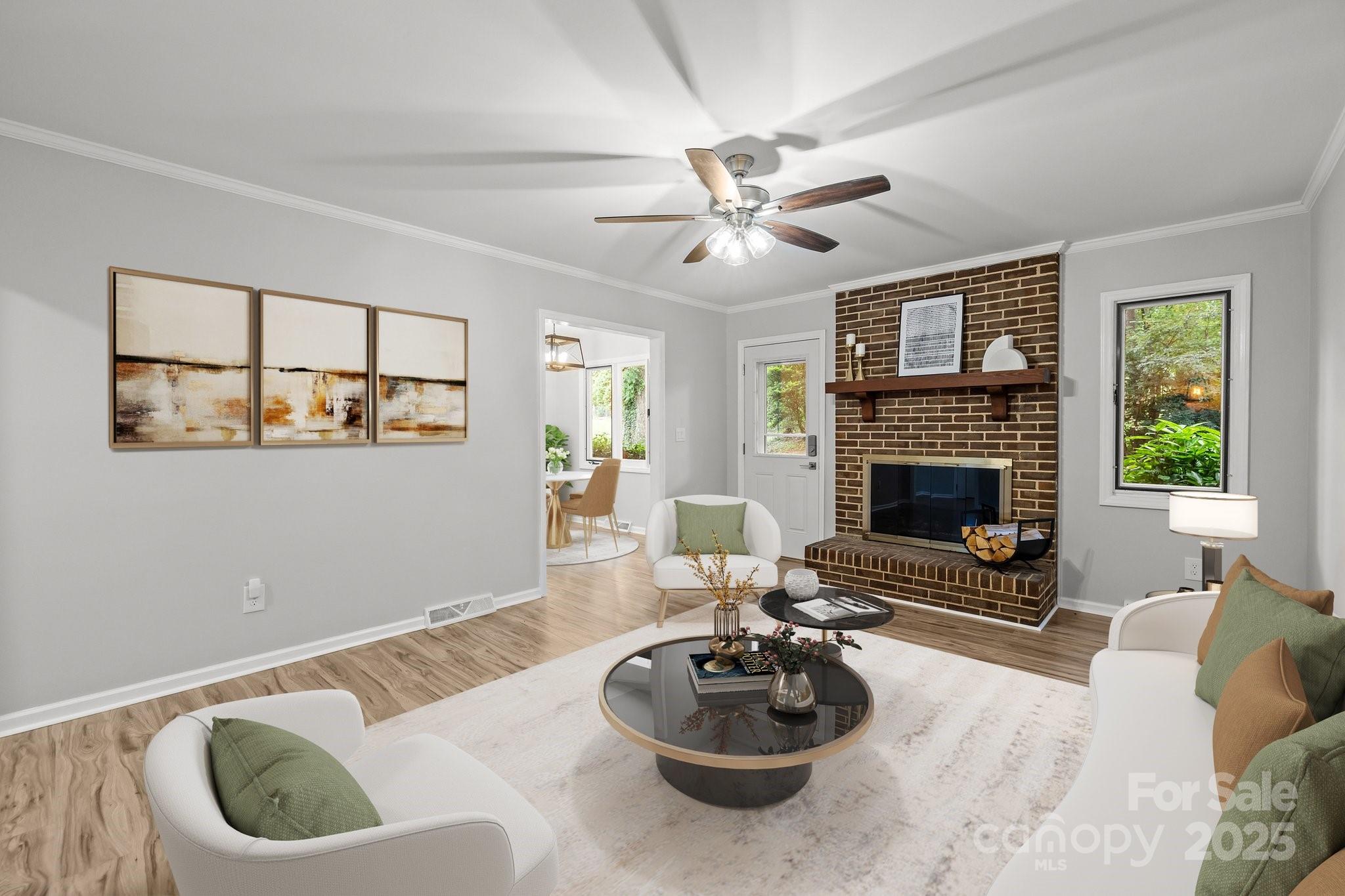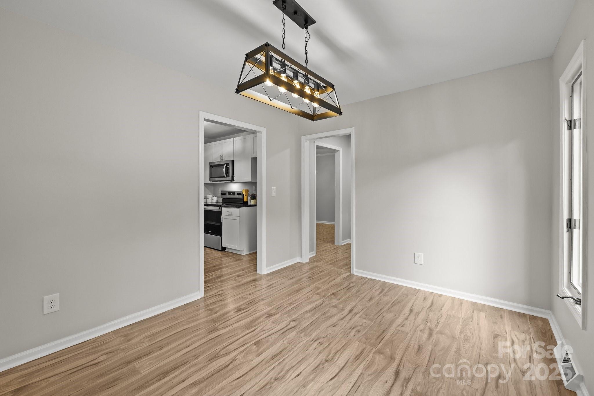NEW PRICE! Don't miss on this like NEW beautiful 3BR/2BA ranch in Idlewood, a quiet, tree-lined neighborhood in Matthews with Mint Hill schools. NO HOA! Nestled on over 1/3 acre, this move-in ready gem offers modern upgrades, spacious living & unbeatable charm. Inside, the floor plan seamlessly connects the living, dining, and kitchen areas, flooded w/natural light. The kitchen features brand-new shaker cabinets, granite counters, SS farm sink & appliances! The primary suite boasts an elegantly renovated bath designed for relaxation. Home has been thoughtfully updated throughout: LVP flooring, light fixtures, fresh interior & exterior paint, new gutters, HVAC &HW heater (2023). The oversized family room w/real brick hearth invites cozy nights, while the expansive partially fenced backyard offers great patio space, lush gardens, She/He shed & complete privacy! Conveniently located near Hwy 51, Hwy74 & I-485; shopping, dining & public parks in Matthews & Mint Hill are minutes away! A rare find - ready for you! Back on the market to no fault of the seller.