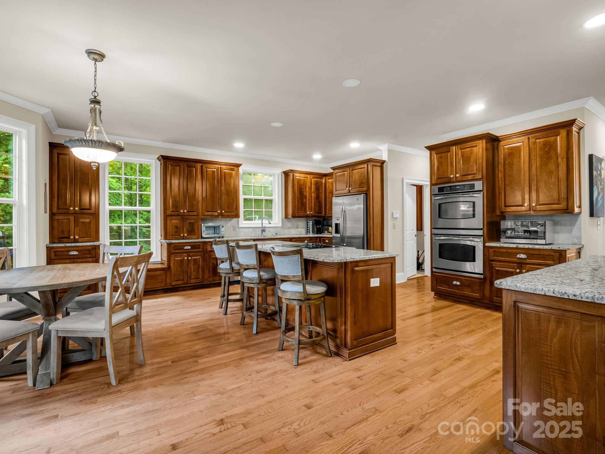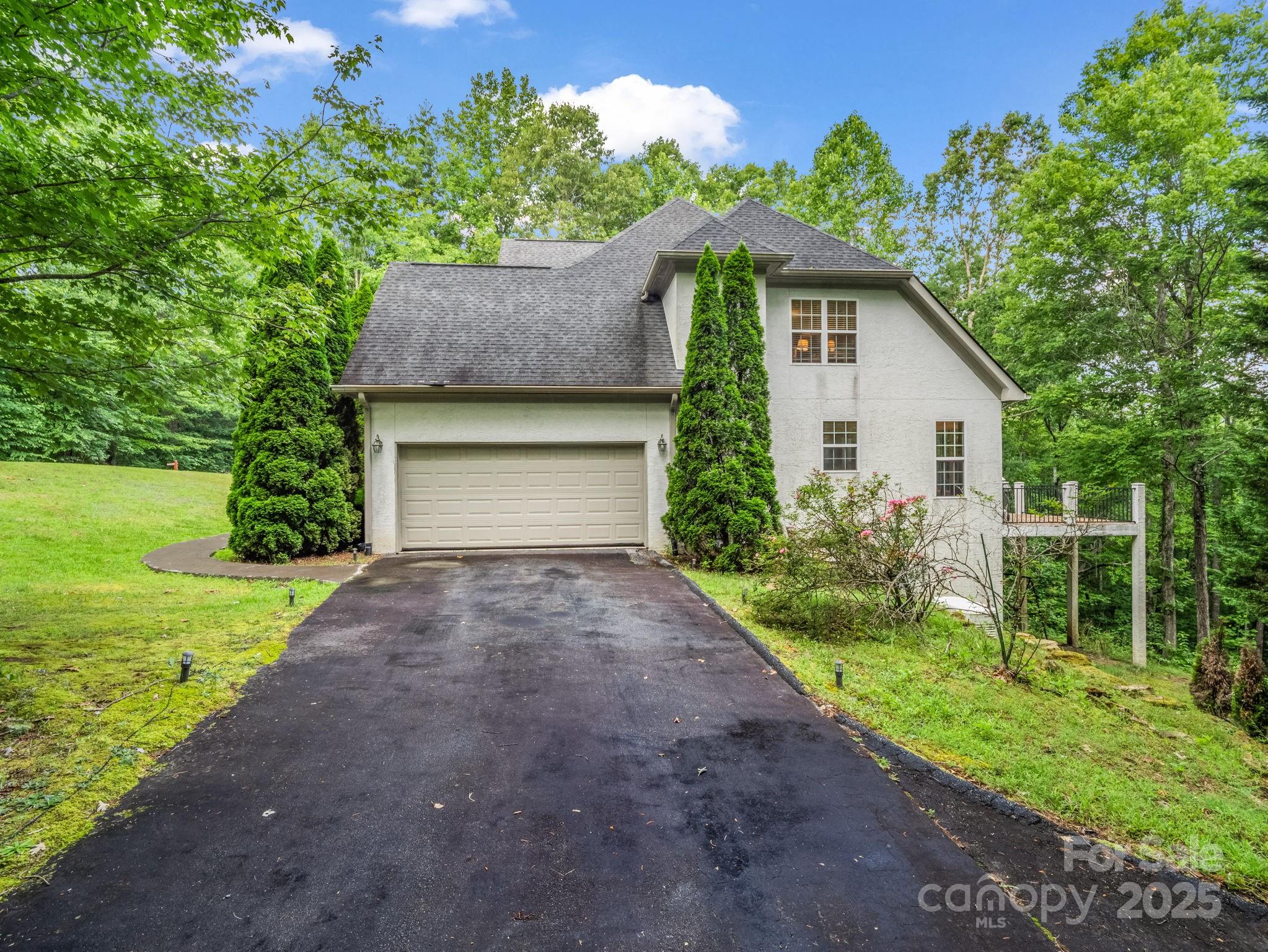 Serene luxury wrapped in a forested embrace, this stucco-and-stone estate rests on 3.66 private, tree-canopied acres. Step through the arched glass entry to soaring ceilings and huge windows, then flow into a chef’s kitchen with granite islands and double wall ovens perfect for entertaining. The primary suite on main features a vaulted ceiling and bath. Downstairs, currently used as a game lounge, keeps every gathering lively. An oversized steam/jet shower is for post-hike relaxation. A whole-house generator promises year-round peace of mind. Outside dine al-fresco on the forest-view deck and wander rock-lined garden paths, or simply watch the seasons change through walls of windows that frame your own woodland backdrop. Convenient to downtown Hendersonville, Asheville, and Greenville, SC, and minutes to trails such as the Carl Sandburg Home and Dupont Forest. Whether you crave weekend adventure or year-round sanctuary, Brown Bear Ridge Trail- five-star comforts perfectly unplugged.