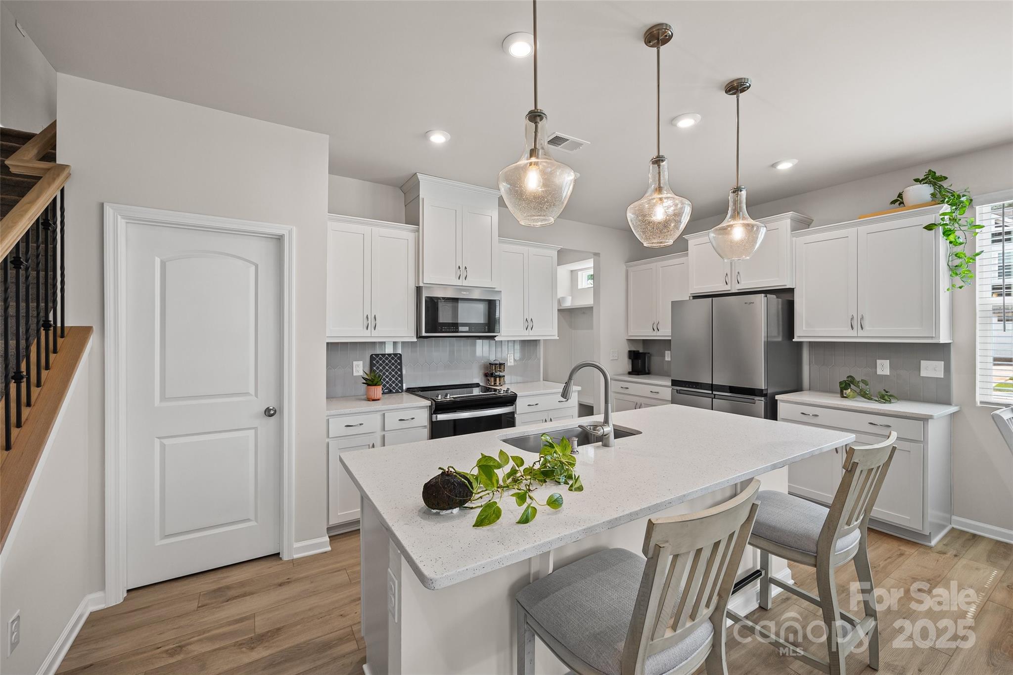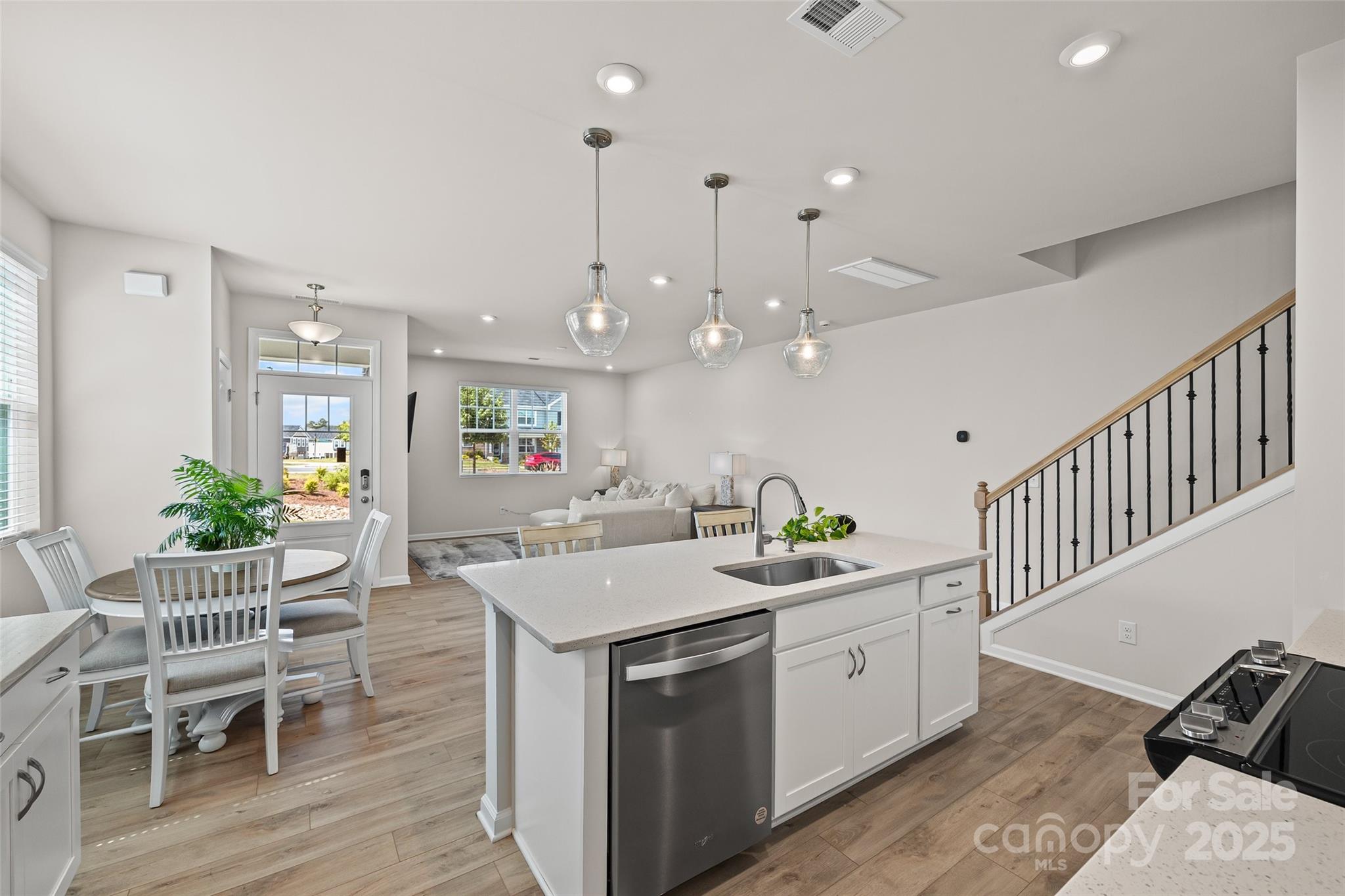 This gently lived-in, like-new residence offers an abundance of natural light throughout, thanks to its premium end-unit placement. Step into a spacious and thoughtfully designed interior featuring a stunning kitchen with a large island, sleek quartz countertops, a generous walk-in pantry, and a convenient drop zone perfect for organizing daily essentials. Upstairs, you'll find a second living area ideal for relaxing or entertaining, complete with access to a private outdoor deck. Each bedroom is comfortably sized, offering ample space and storage. The home’s layout is perfect for both everyday living and hosting guests. Located just 30 minutes from Uptown Charlotte and a short drive to the restaurants, shopping, and entertainment of Steele Creek, this townhome combines suburban tranquility with urban convenience. Don’t miss your chance to own this bright, spacious, and stylish home in one of Charlotte’s most sought-after communities!