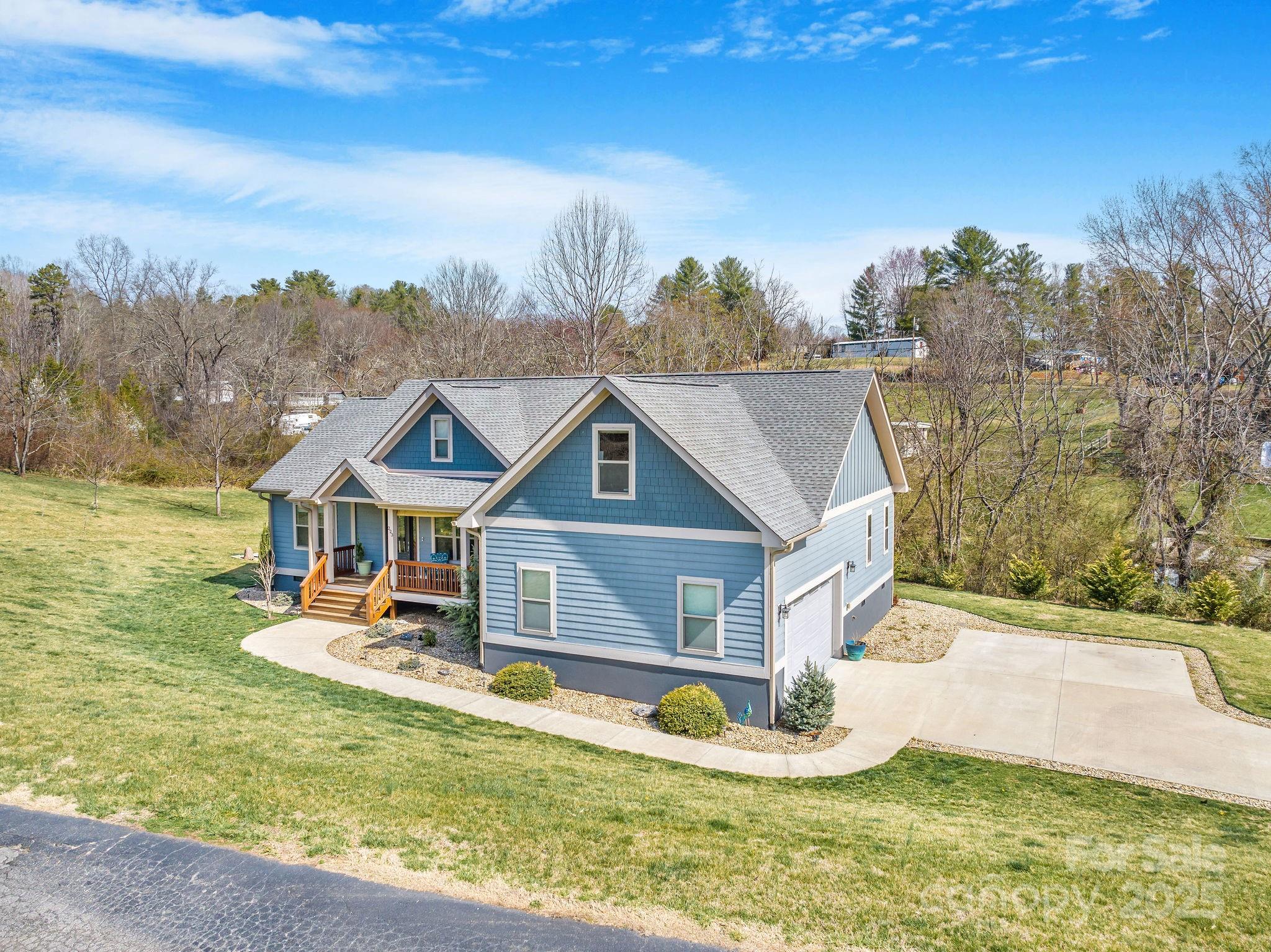 Motivated sellers! Near to groceries, gas stations, the library, great restaurants, a wonderful community center, and local farmers markets you'll discover the perfect blend of craftsmanship and modern design in this stunning arts and crafts home just 20 minutes from Asheville and move-in ready. A walkway leads to the covered front porch. Inside, the open floor plan features a fireplace with a floating mantle and shiplap backdrop, hardwood floors, arched bedroom entries, and tons of natural light. The chef’s kitchen boasts a spacious island, granite countertops, and stainless appliances. The primary suite offers a spa-like ensuite bath, while guest rooms are on the opposite side for privacy. Enjoy a 324 sq ft bonus room over the two-car garage and a tall walk-in crawlspace with full encapsulation and a dehumidifier. Outdoor living includes over an acre of land, a large composite deck, paved fire pit area, raised garden beds, and an expansive driveway. No city taxes!