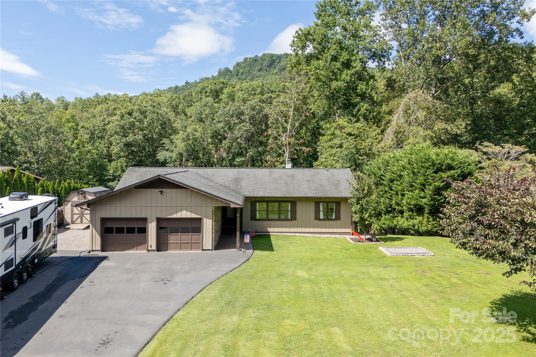 Beautiful Black Mountain home convenient to the back nine of the Black Mountain Golf Course. This split 3 bedroom plan is perfect for so many stages of life. Easy one level living with a light and bright open concept feel. Beautifully remodeled baths offer step in showers. The kitchen is a cook’s dream with custom built kitchen cabinets from a trusted local artisan. Everyone will gather around the island and enjoy this gorgeous space! Situated on a level half acre lot with privacy off the back deck complete with hot tub and mountain view. Home has an ample 2 car garage, separate storage shed, tons of covered and seasoned firewood to keep you warm on those chilly winter nights. This amazing home ticks all of the boxes! There is even a 50 amp external electric camper hookup that has the possibility of converting to an EV charger. A home with this many tasteful updates, in this well established area of Black Mountain is truly a rare find!