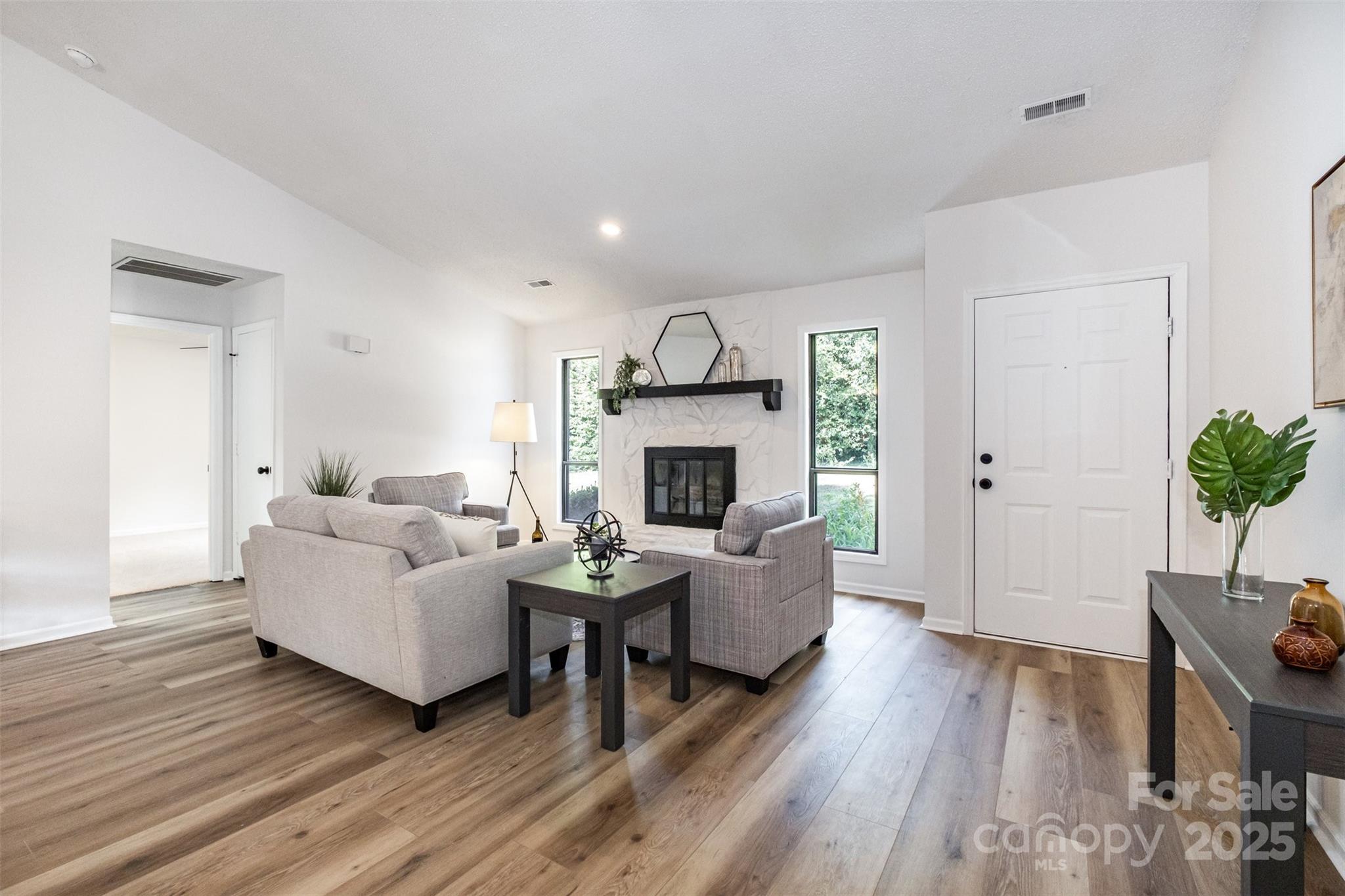 Welcome home to this beautifully updated ranch nestled on a quiet street with no HOA restrictions. Featuring fresh interior and exterior paint and brand-new flooring throughout, this home is truly move-in ready. Enjoy evenings by the wood-burning fireplace in the inviting great room or entertain guests on the expansive back deck. The enclosed backyard offers plenty of space for gardening, hanging out, or playtime with your furry friend. You'll love the added convenience of a garage and a large shed—perfect for extra storage or hobby space. All this just minutes from shops, schools, dining, and other amenities. Don't miss this one!