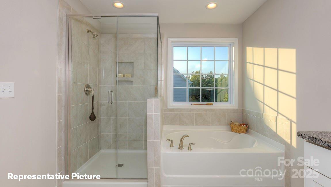 Spacious new construction London plan in The Enclave at Falls Cove! This home features a charming covered front porch and thoughtful upgrades throughout. The open kitchen offers quartz countertops, a gas cooktop, and walk-in pantry, flowing into a large family room with gas fireplace. Tile floors in all bathrooms, a tankless gas water heater, and main-level guest bedroom with full bath add convenience and comfort. Upstairs, enjoy a spacious primary suite with trey ceiling and luxurious bath, plus three additional bedrooms and three full baths. Located minutes from Lake Norman State Park and downtown Troutman. Includes smart Home Is Connected® features to keep you in control.