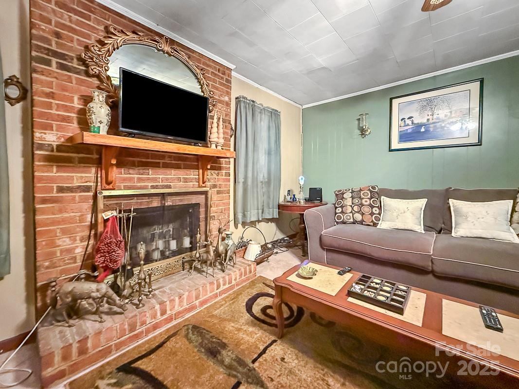 One level brick home has 3 bedrooms and 2 full baths.... one of which is completely updated with tile, flooring, fixtures, and vanity. Shared driveway.... Per seller... carport in back is currently shared, but new owners will have full use of the double carport. Building in back was used as second living quarters with bathroom and kitchen... That space is in addition to the advertised size and square footage and bed/bath count for the house. Covered front and rear porches... private patio courtyard area in back!