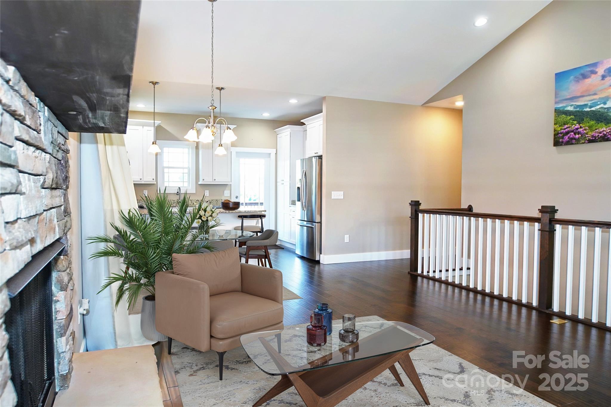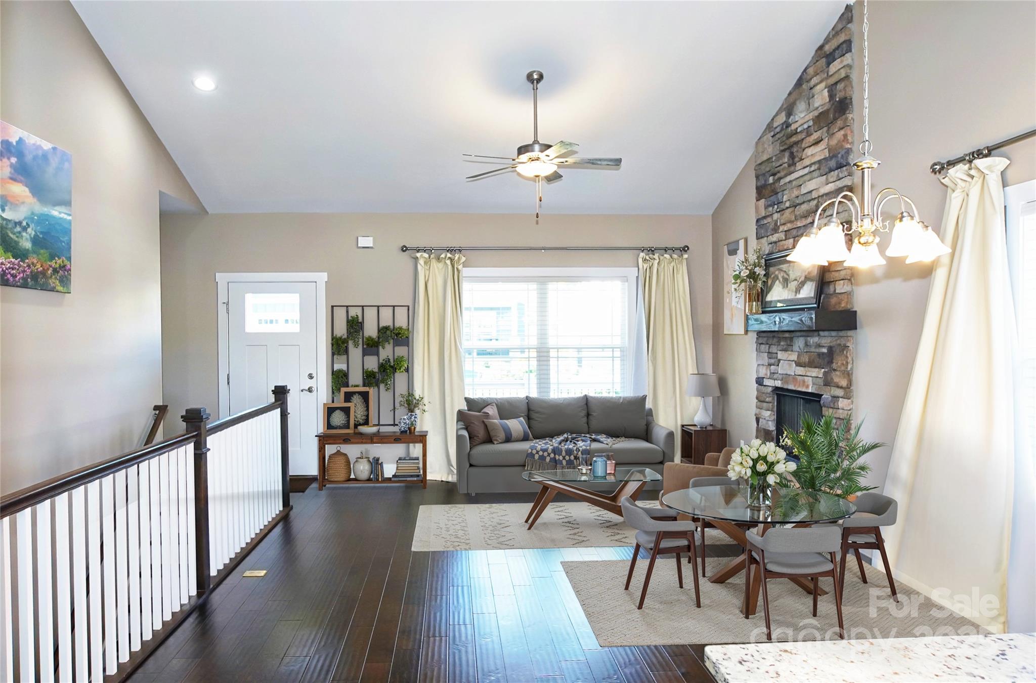 Welcome to immaculate maintained, like new 4-bedroom home. Main floor offers an open floor plan, cathedral ceilings and natural light, stainless steel appliances, natural gas oven and fireplace and your 2 bedrooms. Downstairs to discover your second family room, 3rd bedroom and 4th bedroom recently done and full bathroom. Outdoors, the landscaped yard includes a fully installed irrigation system for easy lawn maintenance, so your grass stays green with minimal effort. Located in a desirable neighborhood close to local parks, shopping, and dining, this home combines peaceful living with everyday practicality. Recent upgrades includes, finished 4th bedroom in the basement, painted 2 porches, added shelving in primary bedroom closet and garage. Hoa includes lawn care, upkeep with mulch, enjoy the neighborhood dog park, & sidewalks for some nice strolls outside. Washer/dryer convey. No flood or damage from Helene.