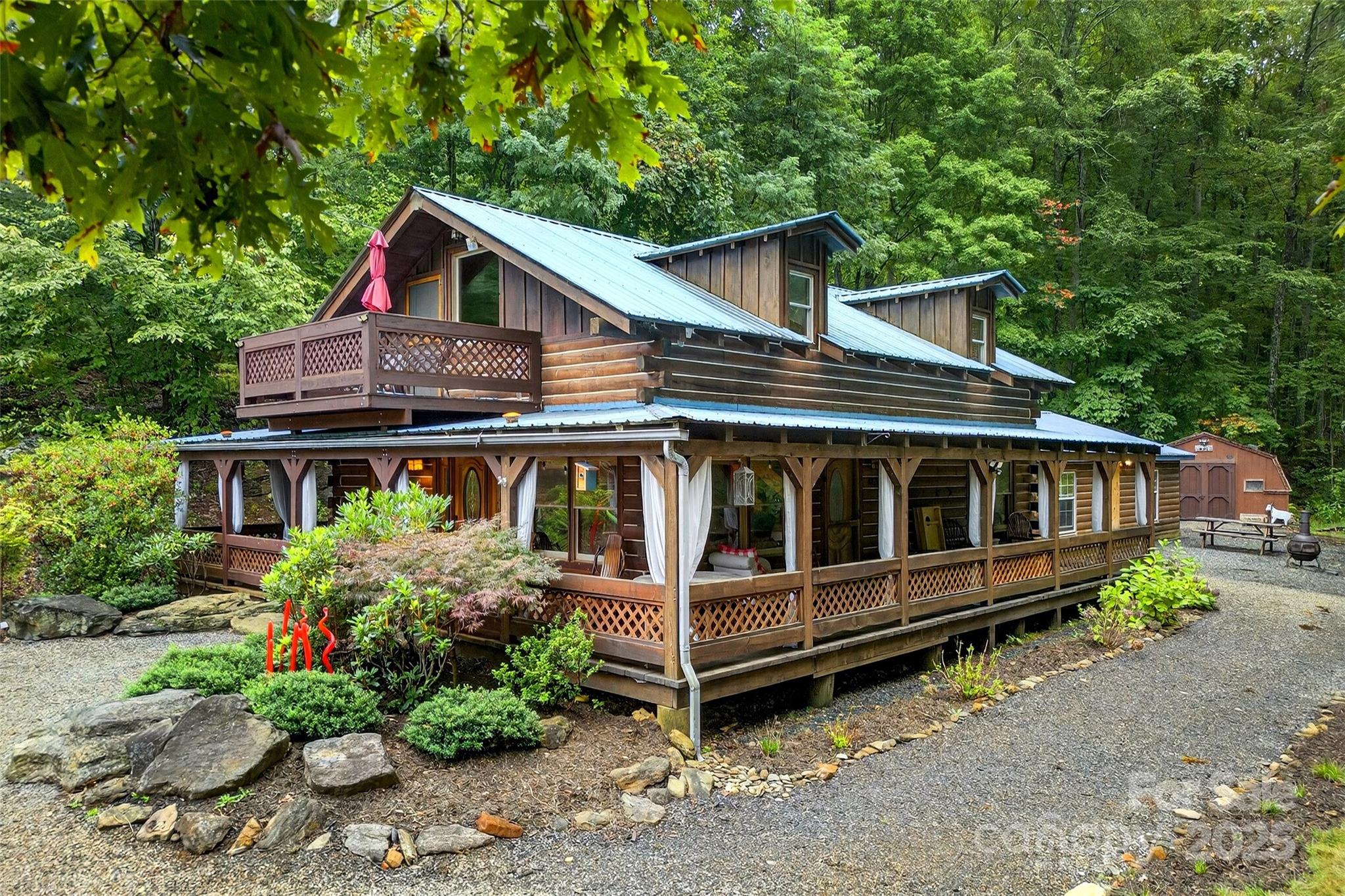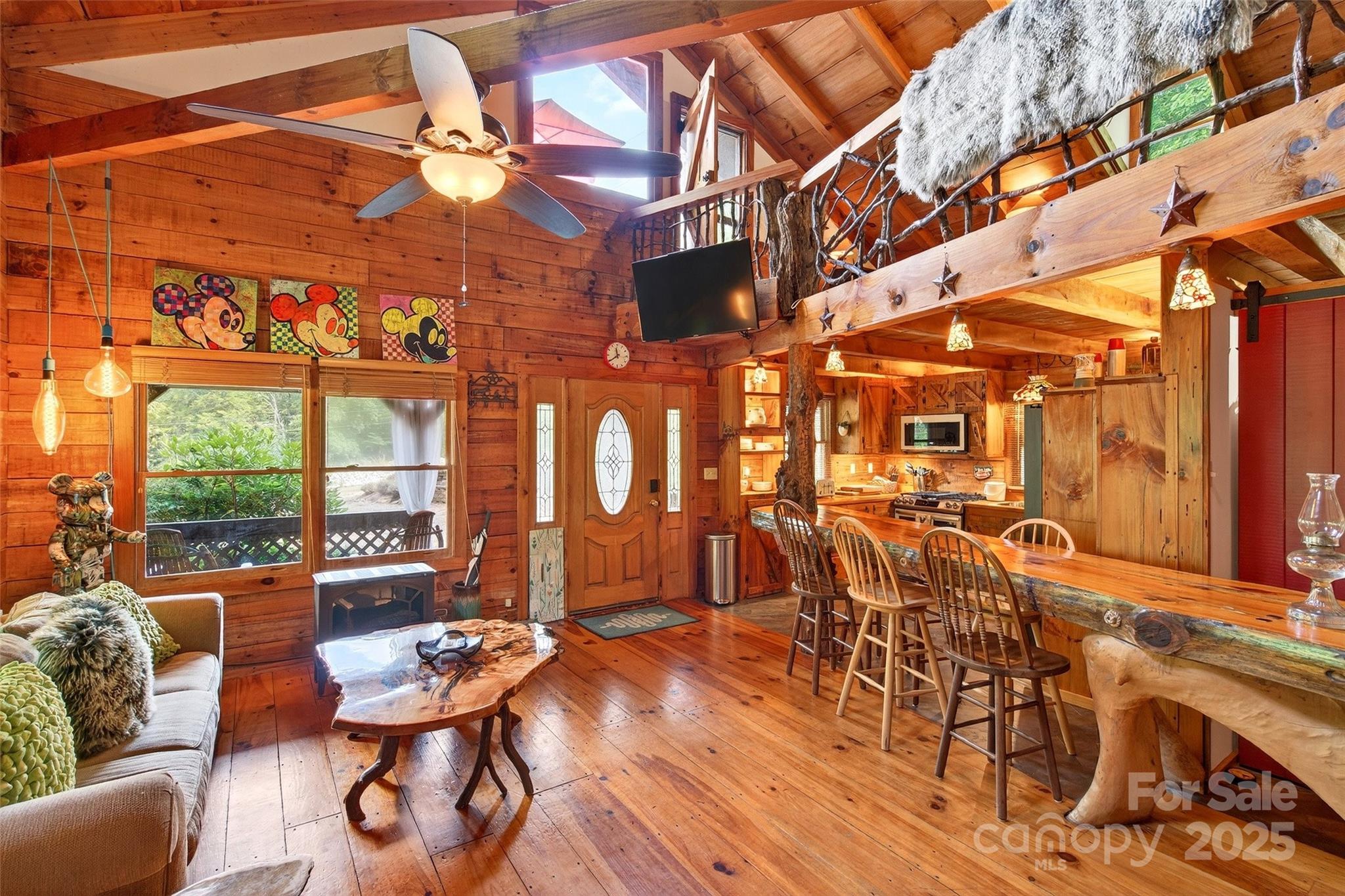 Nestled in the heart of the mountains, this one-of-a-kind log cabin blends rustic charm with modern luxury. Showcasing a stunning open floor plan, the home's centerpiece is a massive, hand-hewn tree trunk that serves as a structural post—bringing the forest indoors. With 2 bedrooms and 2 full baths, there's comfort for family or guests. Just off the loft is a balcony for your morning coffee. The highlight? A private indoor pool perfect for year-round relaxation. Sit outside on the 3 sided covered porch and enjoy listening to the sounds of nature and looking at the mountain views. Whether it’s a cozy getaway, a full-time retreat, or a short term rental this cabin has it all.