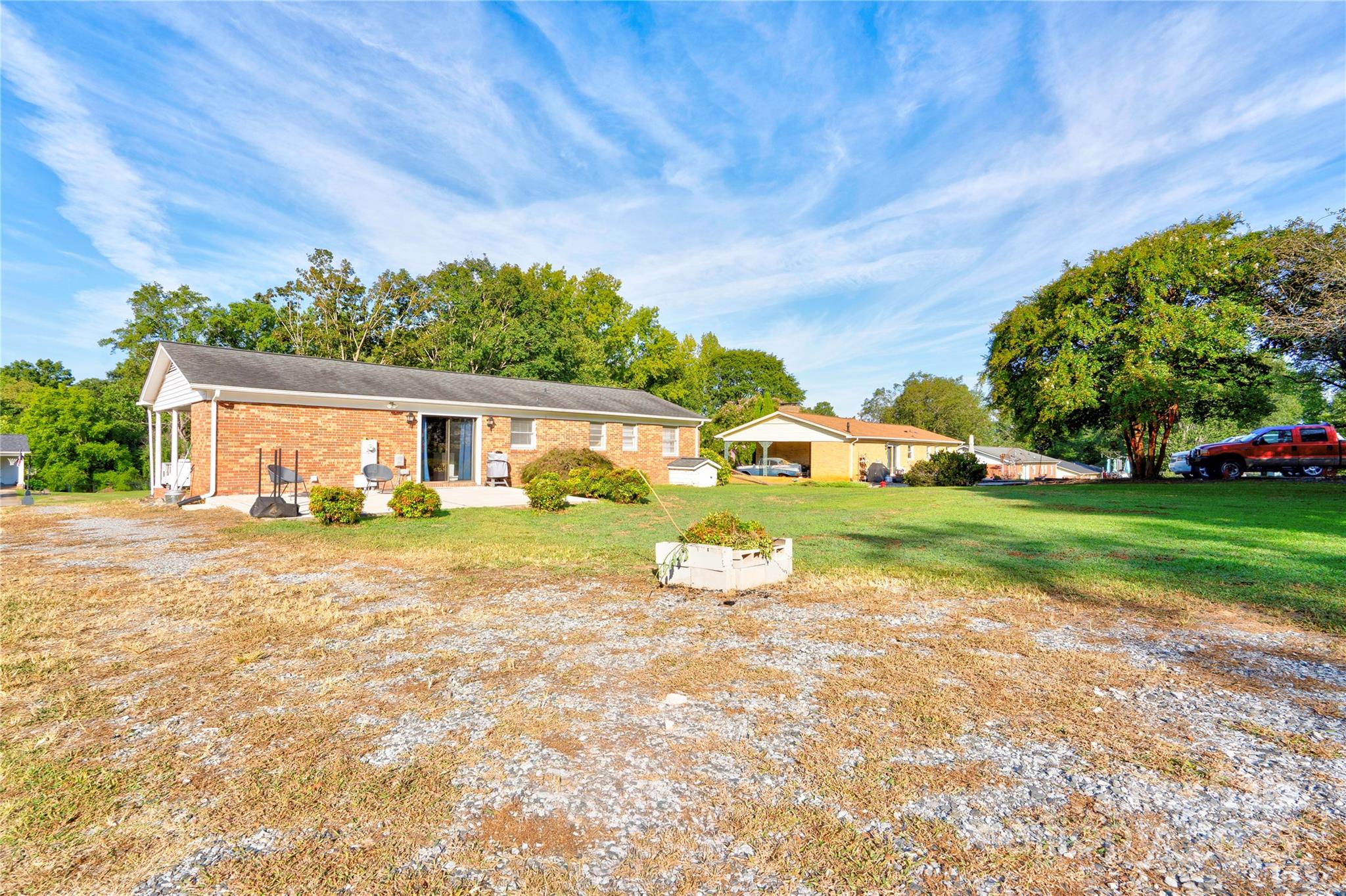 3 bedroom 1.5 bath brick ranch home on approx .68 acre lot in Suburban Acres subdivision in Southern Cleveland County. Home is built with an open floor plan and has h/w, LVP & vinyl flooring. Living Room and two of the bedrooms have chair railings. Kitchen has stainless appliances and a center island. All kitchen appliances (including refrigerator) remain, as do the washer and dryer. Dining area has chair railing and sliding glass doors to the rear patio. Home has a covered front porch and an extra large concrete rear patio. Sit and relax in your rocking chairs on the covered front porch. Patio is a great place for entertaining, grilling out, or just relaxing! Home has an attached single carport and a detached concrete double garage, so plenty of parking spaces. There is also another building in the back yard for storage. Back yard is spacious! Come make this your new dream home!