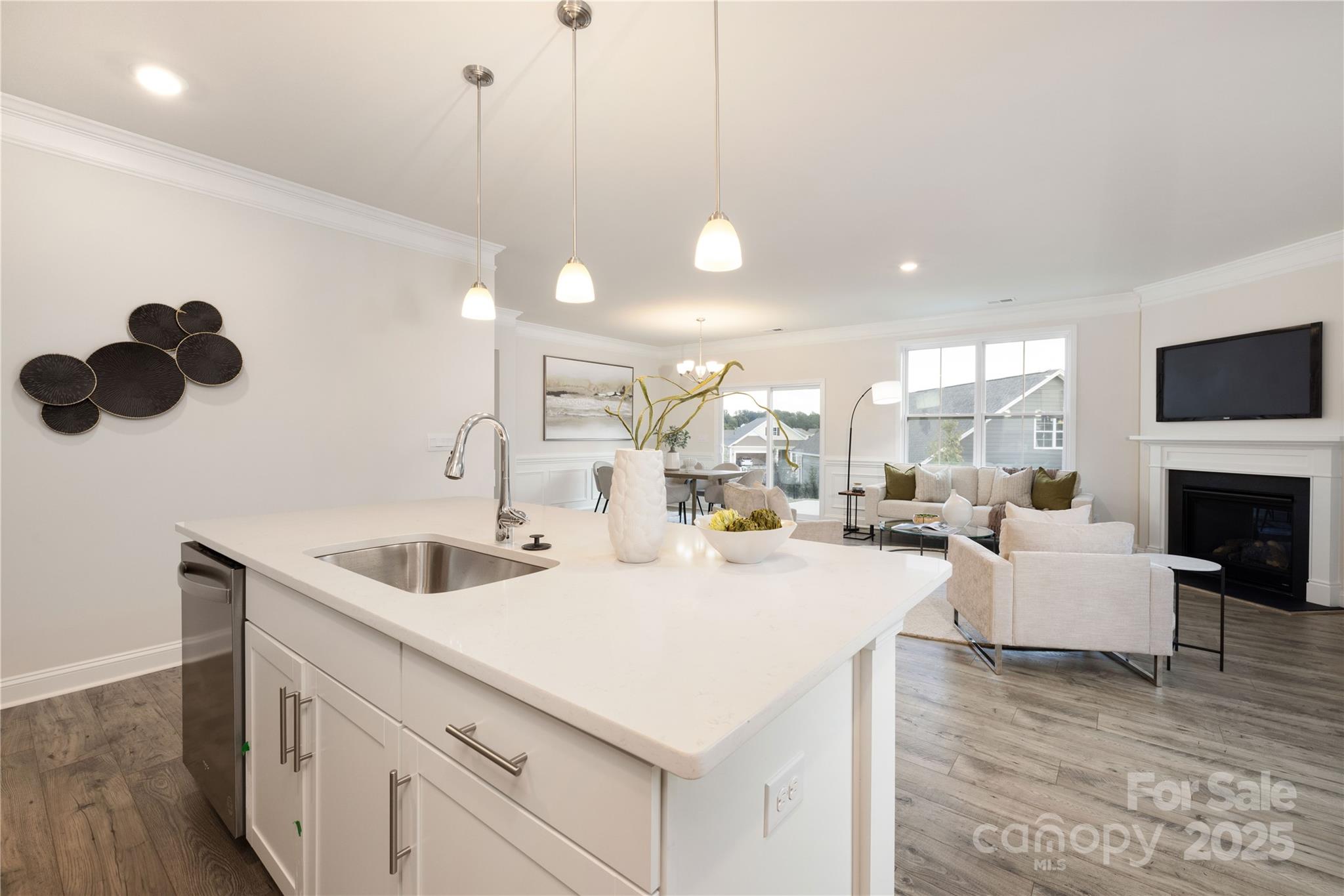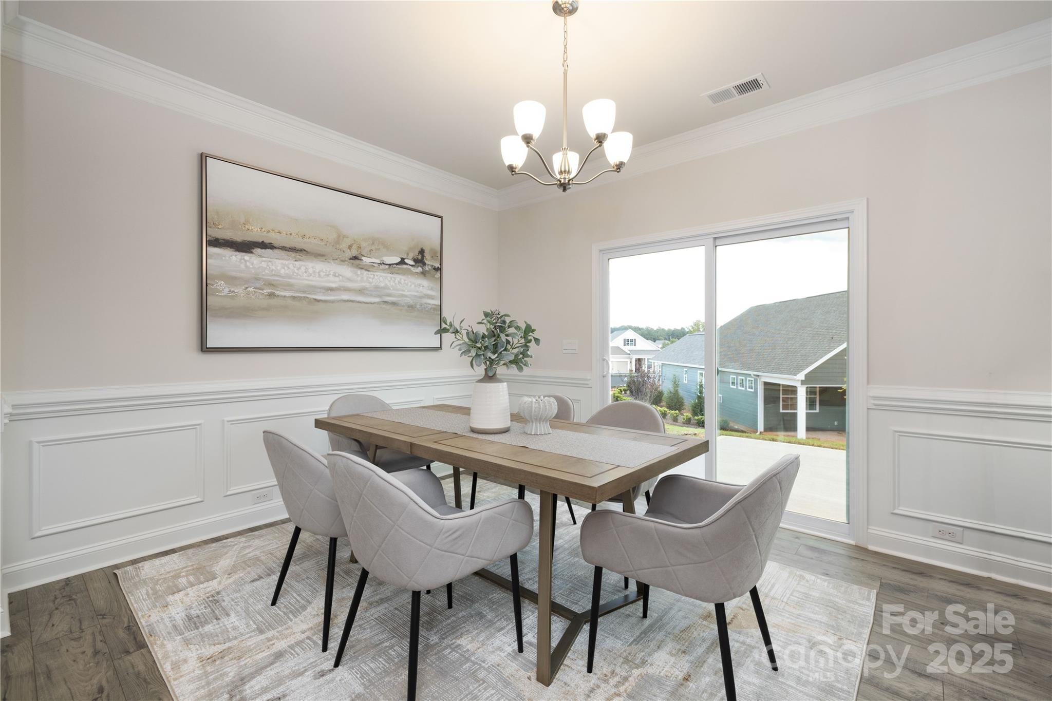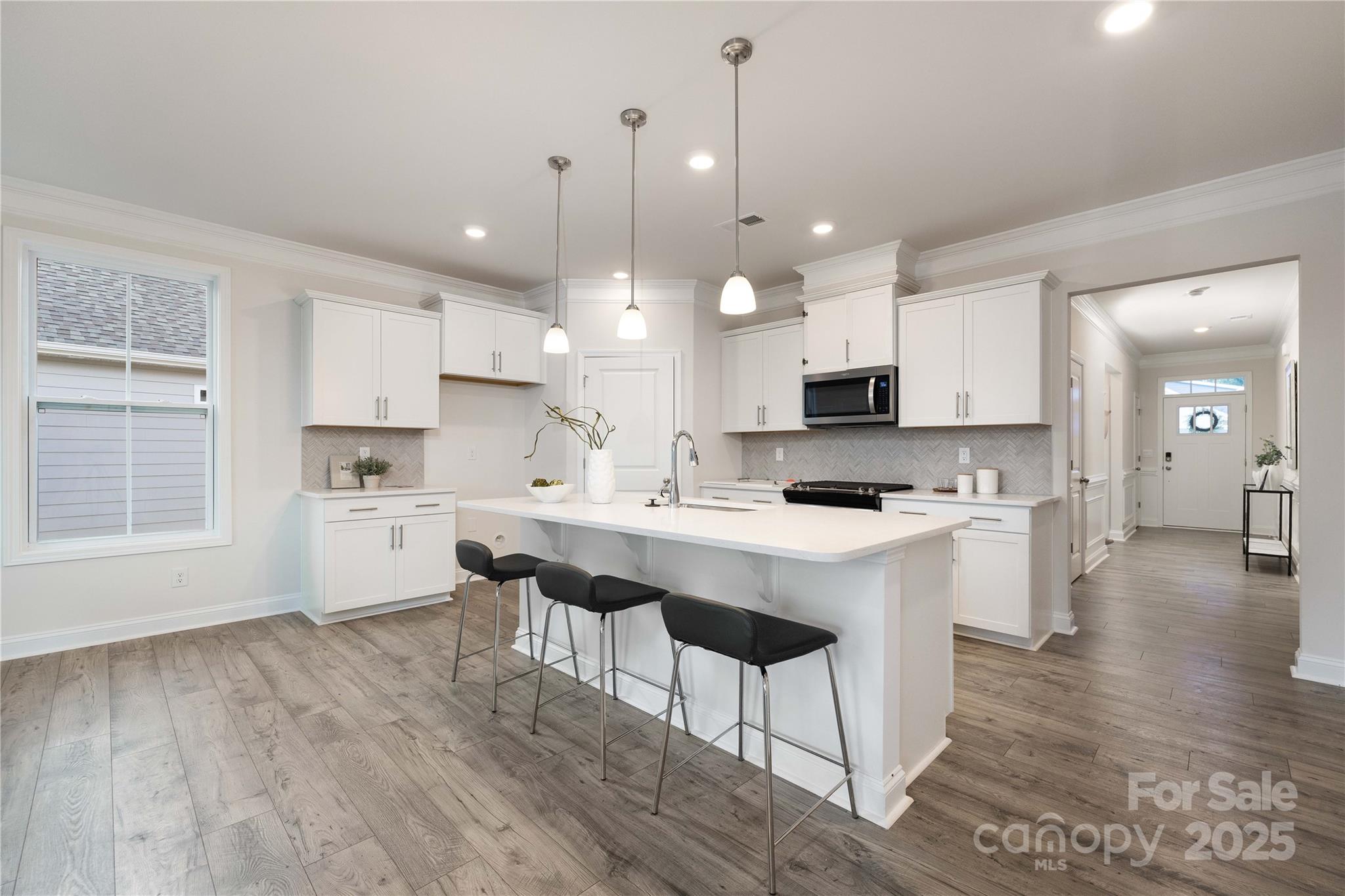 The Claiborne is a large open concept ranch home with wooded back views! A split floorplan gives the secondary bedrooms privacy with their own full bathroom. Primary bedroom is comfortably situated in the rear of the home and has s large walk in closet, dual vanity and walk in shower AND large garden tub. The open concept kitchen and dining area is open to the large living area. Many upgrades are included in this home such as crown molding throughout, wainscoting in the foyer, and Rev Wood luxury vinyl flooring throughout main living and dining areas. Brookside is a Ranch community located in beautiful Troutman with convenient access to downtown Troutman, Lake Norman State Park and all of the shopping and dining of Mooresville.