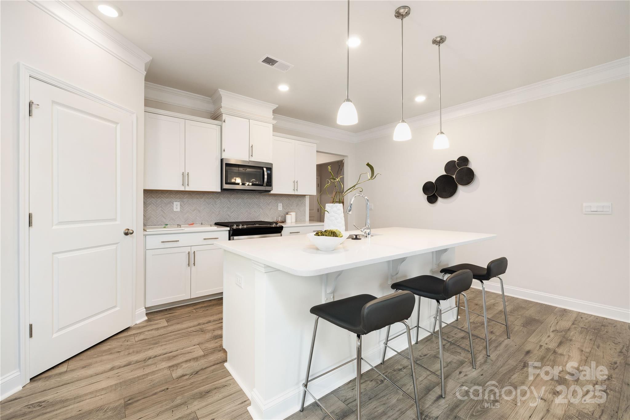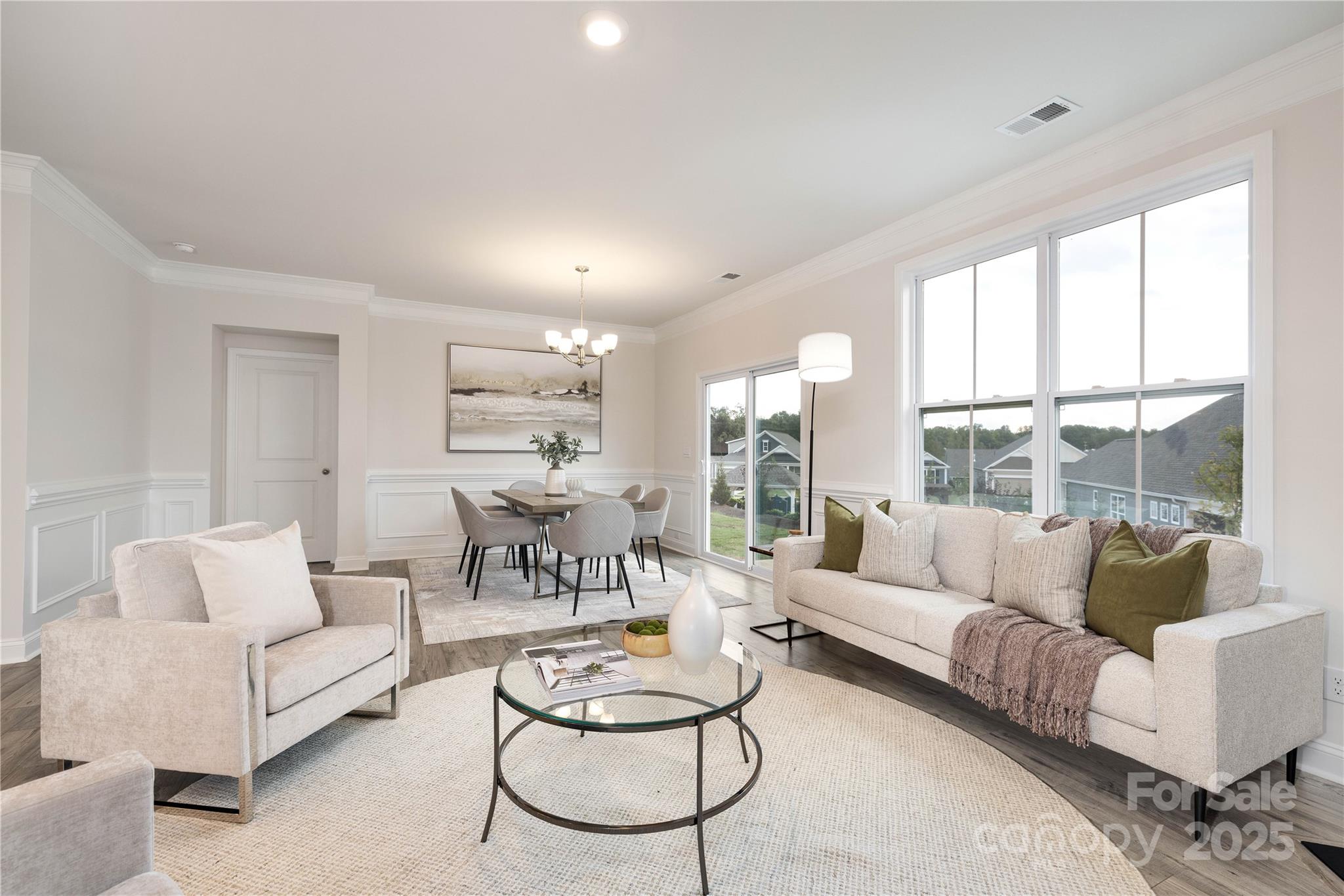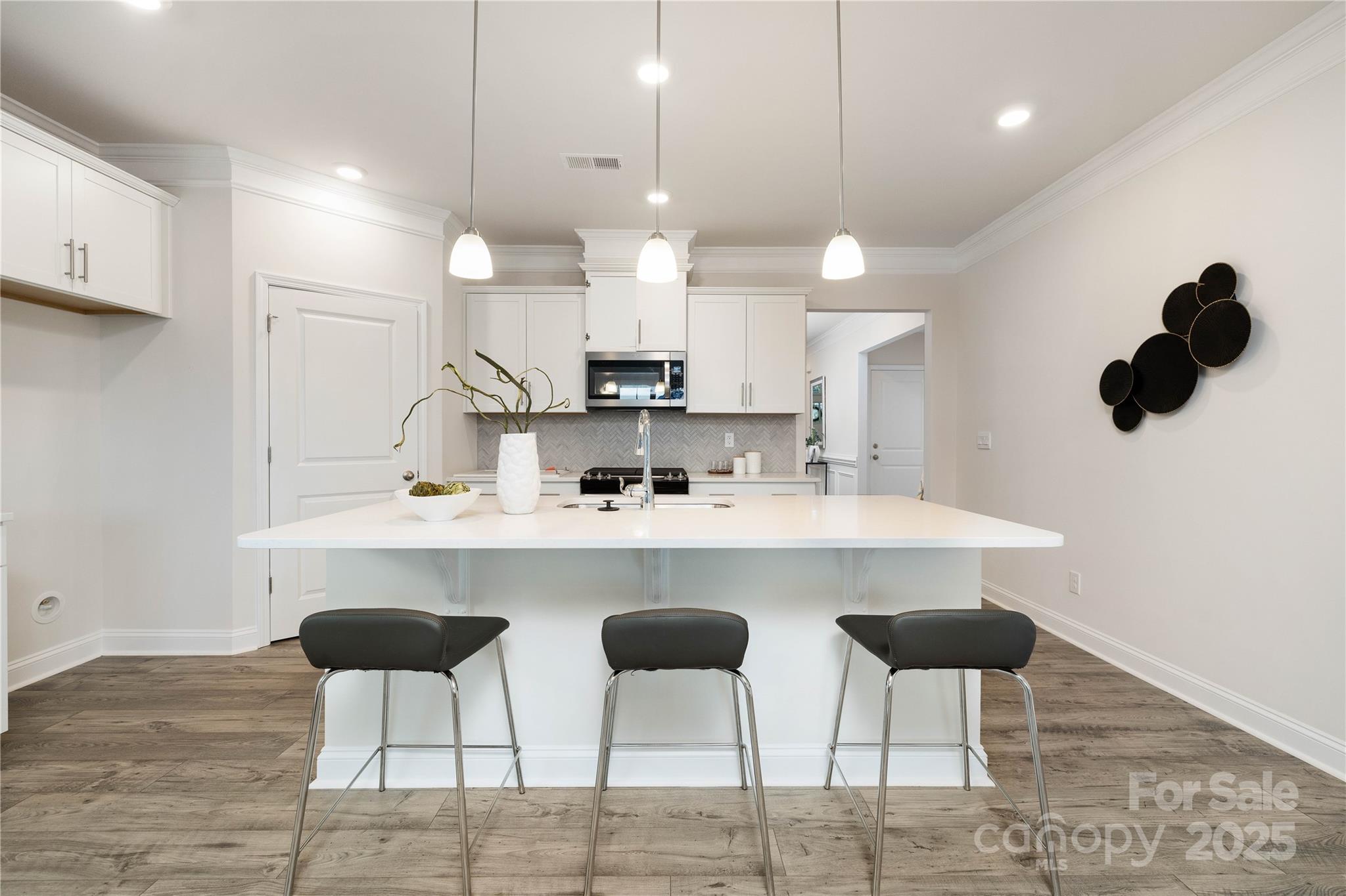 The Claiborne is a large open concept ranch home with wooded back views! A split floorplan gives the secondary bedrooms privacy with their own full bathroom. Primary bedroom is comfortably situated in the rear of the home and has s large walk in closet, dual vanity and walk in shower AND large garden tub. The open concept kitchen and dining area is open to the large living area. Many upgrades are included in this home such as crown molding throughout, wainscoting in the foyer, and Rev Wood luxury vinyl flooring throughout main living and dining areas. Brookside is a Ranch community located in beautiful Troutman with convenient access to downtown Troutman, Lake Norman State Park and all of the shopping and dining of Mooresville.