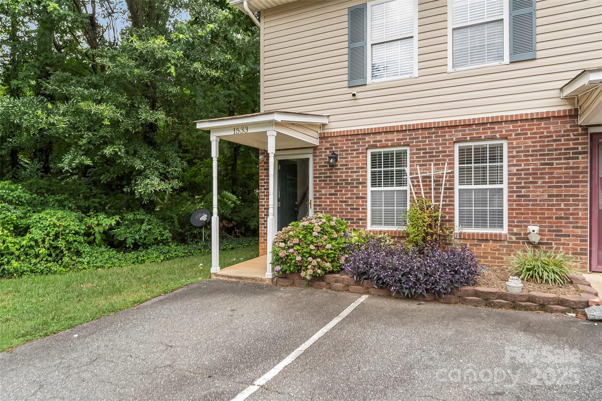 Wonderful 2BR/1.5BA end unit townhome located in the heart of Hickory! Only minutes from Downtown Hickory, LR University, multiple parks, along with all the amazing shopping and dining NW Hickory has to offer! Living room is spacious with large, bright windows and storage. Kitchen offers bar prep area, ample cabinets for storage and eat-in area. Half Bath on main level. Back patio offers mature trees for privacy. Second floor offers two large bedrooms and a full bath. Water, sewer and trash are included in dues.