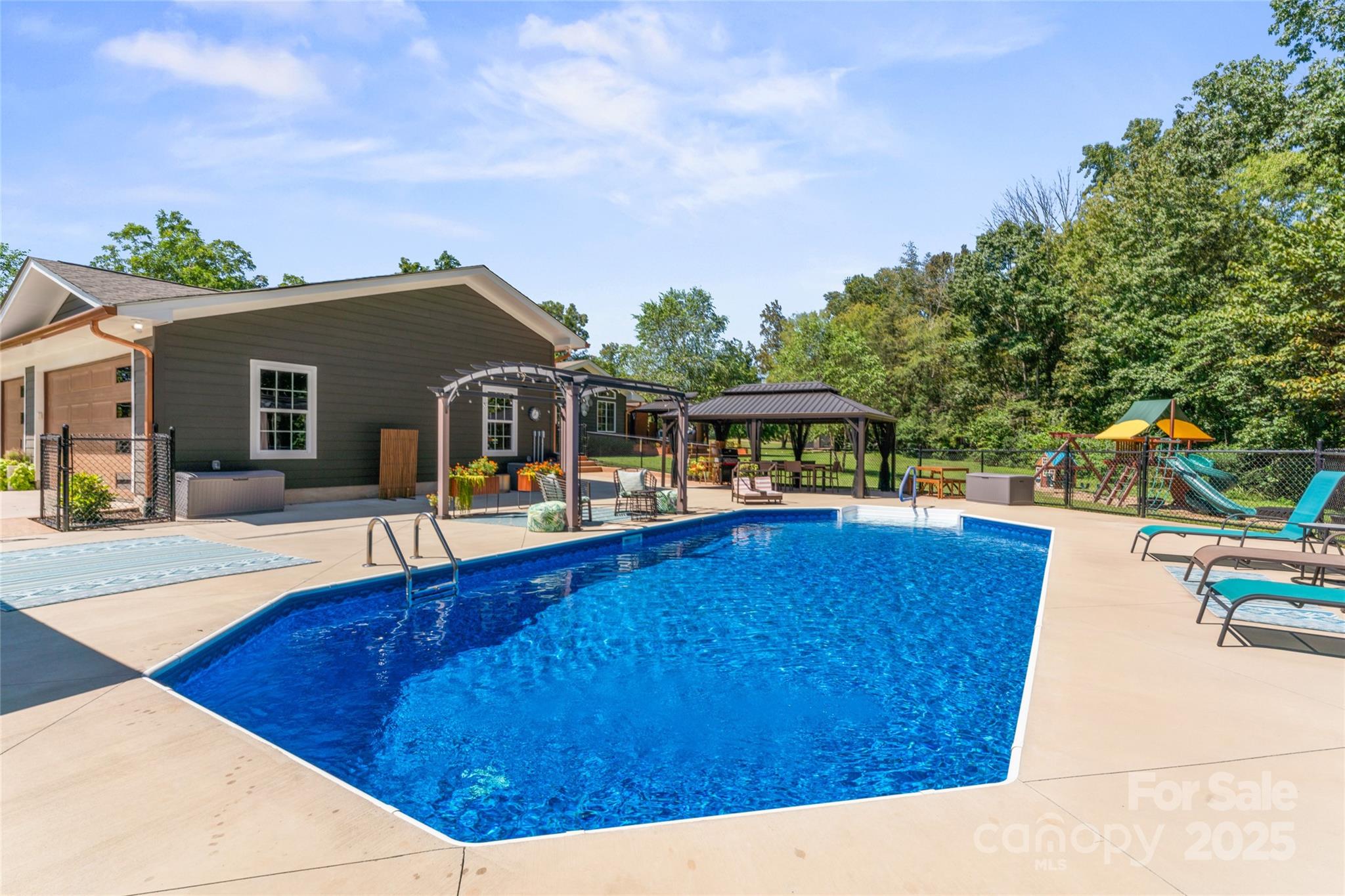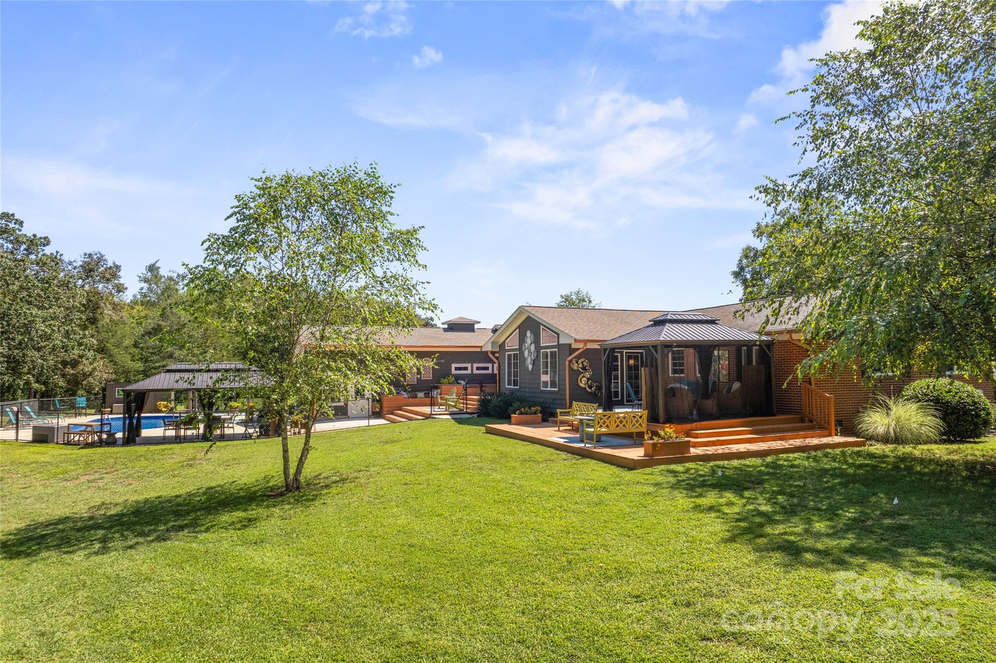 Nestled on over 3 acres of peaceful paradise, this property offers more than a home-it offers a lifestyle. Imagine waking up to the sounds of nature, sipping coffee on your porch, and exploring your very own wooded sanctuary where you can carve out private walking trails or simply enjoy the beauty of the seasons. Welcome to your private oasis in Concord! Here, there’s space to breathe, grow, and create the life you’ve always dreamed of- whether it’s gardening, entertaining, or just soaking in the serenity of wide-open spaces. The heart of this home has a recently updated 2025 kitchen, featuring new stainless steel appliances, sleek granite countertops, and a unique copper sink that adds a touch of rustic charm. Picture yourself gathered with loved ones, cooking and creating memories in this beautiful space. Step outside and you'll find an entertainer's dream, thanks to the incredible additions from 2023. Spend sun-drenched days by the refreshing in-ground pool, host unforgettable barbecues on the massive deck, or simply relax on the covered porch. With two gazebos, you'll have endless opportunities to create serene moments in your own private retreat. The spacious primary bedroom, updated in 2024, is a luxurious retreat designed for ultimate relaxation. It's a true escape from the everyday, complete with an elegant en suite bath featuring dual vanities. Three additional bedrooms and two more full baths provide plenty of room for family and friends. This property is a rare find, combining extensive modern upgrades with the peace and freedom of expansive country living. With a 3-car garage, a separate shed/shop, and an electrified shed, there's a place for all your hobbies and storage needs. Come experience the perfect blend of luxury and country charm.