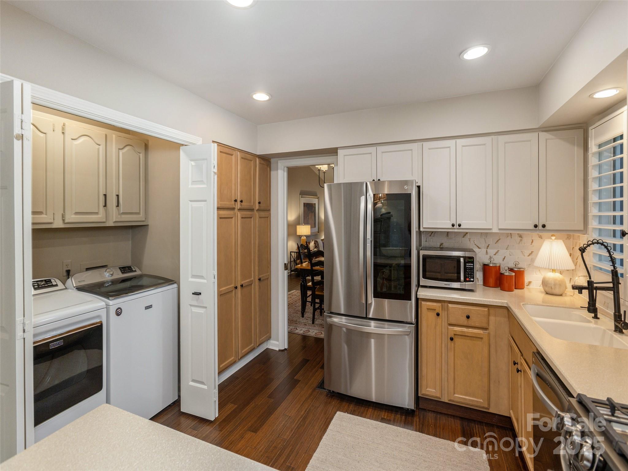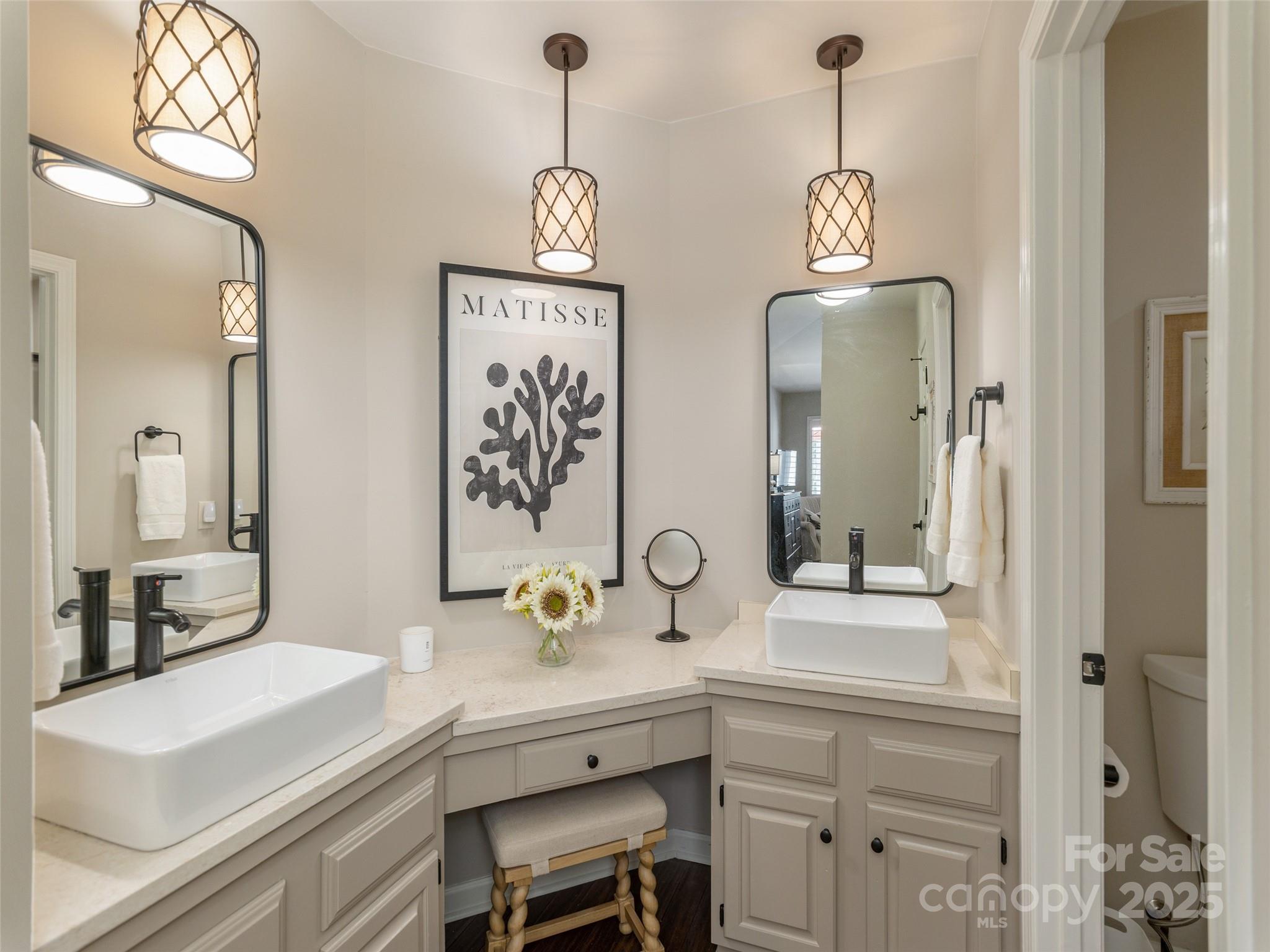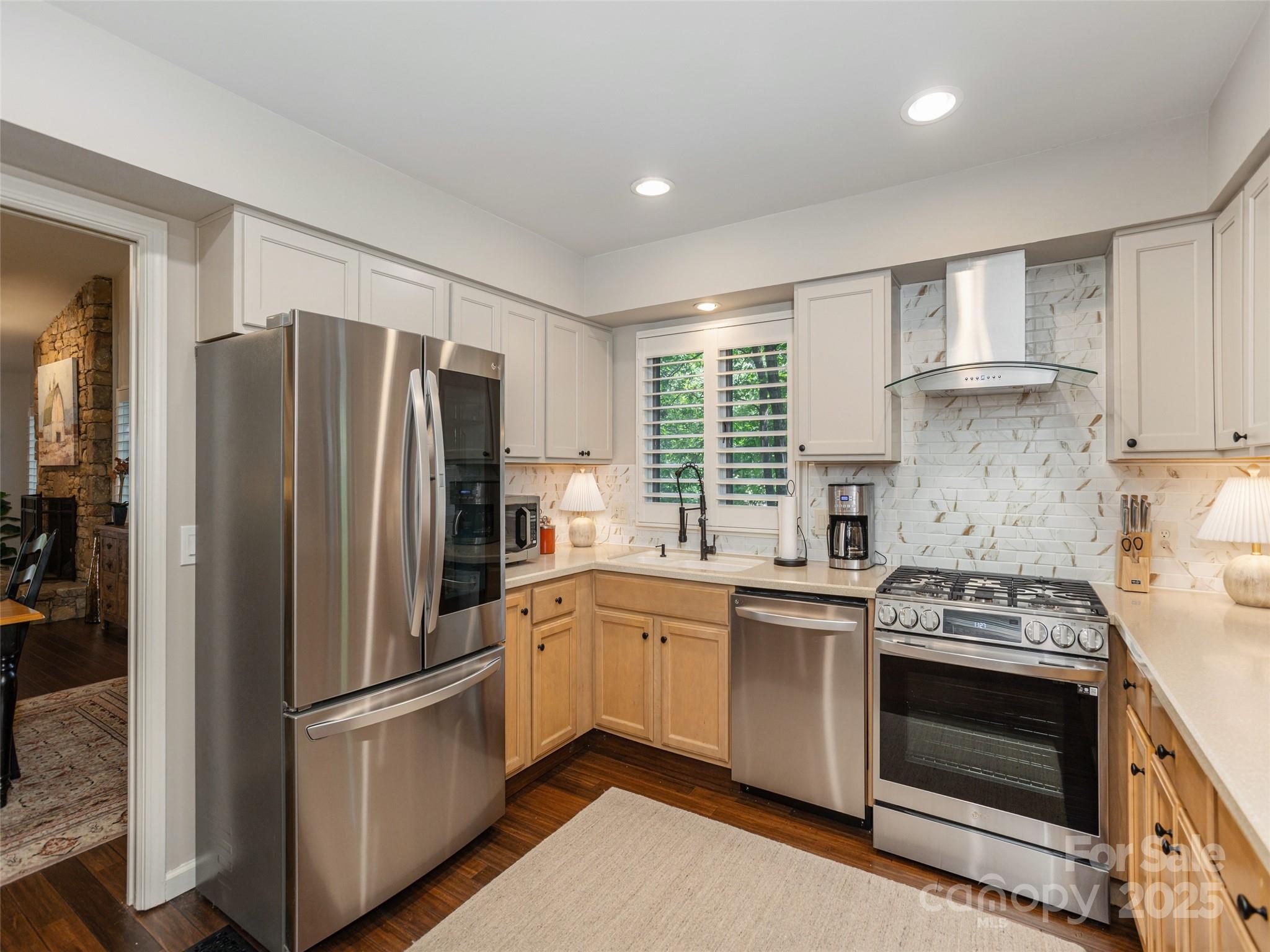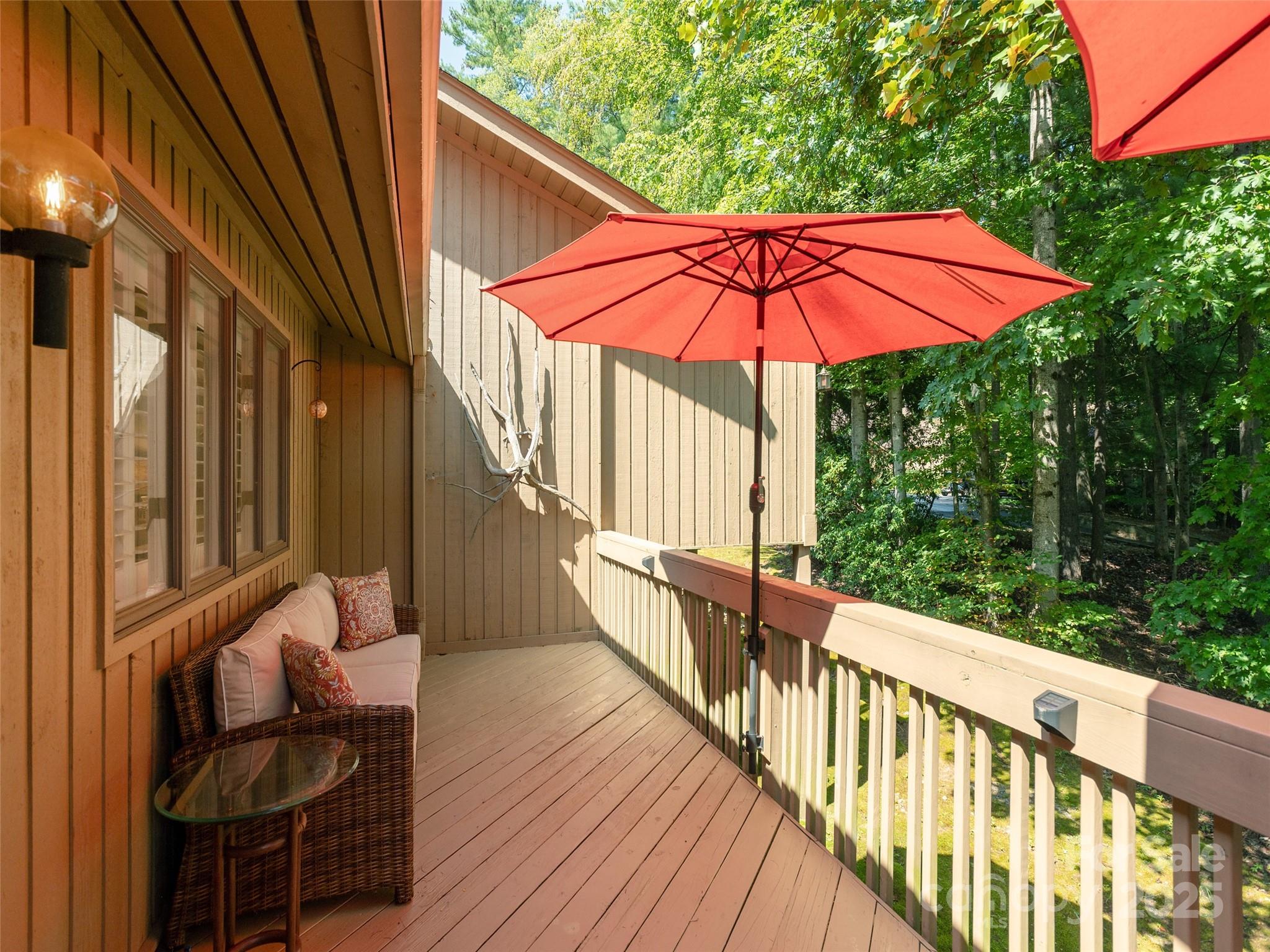 This gorgeous, move-in-ready end unit offers the perfect blend of privacy, style, and comfort—all on one level and nestled among mature trees. Enjoy the tranquility of the outdoors from expansive, newly stained and sealed decks, perfect for relaxing or entertaining. Inside, you’ll find soaring, smooth vaulted ceilings and a beautiful neutral color palette that highlights the rich tones of the bamboo flooring throughout. The spacious living room features a striking stone fireplace with brand-new gas logs, creating a warm and inviting atmosphere. The home is filled with thoughtful upgrades, including plantation shutters, updated lighting, and dual sinks in the luxurious primary en-suite. Every detail has been carefully curated to offer both elegance and ease. Furnishings available outside of the sale of the home. This exceptional property is a rare find—don’t miss the opportunity to make it yours!