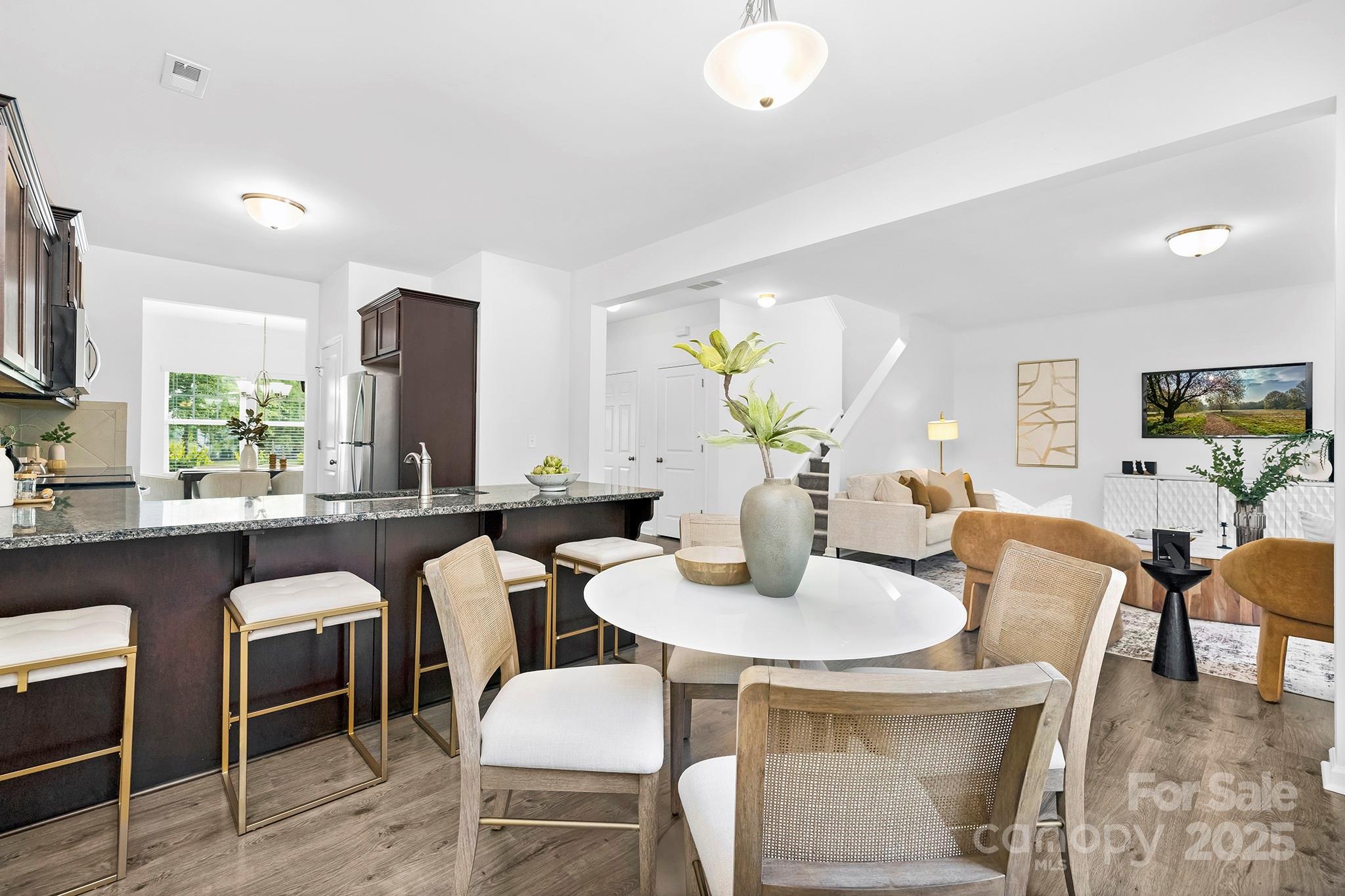 Beautifully maintained 4 BR / 2.5 BA in the desirable Larkin community, offering amenities like a playground and scenic sidewalks, as well as optional access to premier amenities like a clubhouse, golf course, pool and tennis courts. This move-in-ready home features an open-concept layout with modern finishes throughout. The main level includes a formal dining room, a contemporary kitchen with breakfast nook, and a spacious great room ideal for gathering. Upstairs you'll find a generous primary suite with private bath, three additional bedrooms, full bath, and a convenient laundry room. All appliances convey—including refrigerator, washer, dryer, and window blinds. Plus, a new Solo Stove is included with the sale—perfect for evenings under the stars. Optional access to the pool and tennis amenities are available via a separate HOA fee managed by William Douglas Management Company. Membership to the golf course and clubhouse are arranged directly through the golf course.