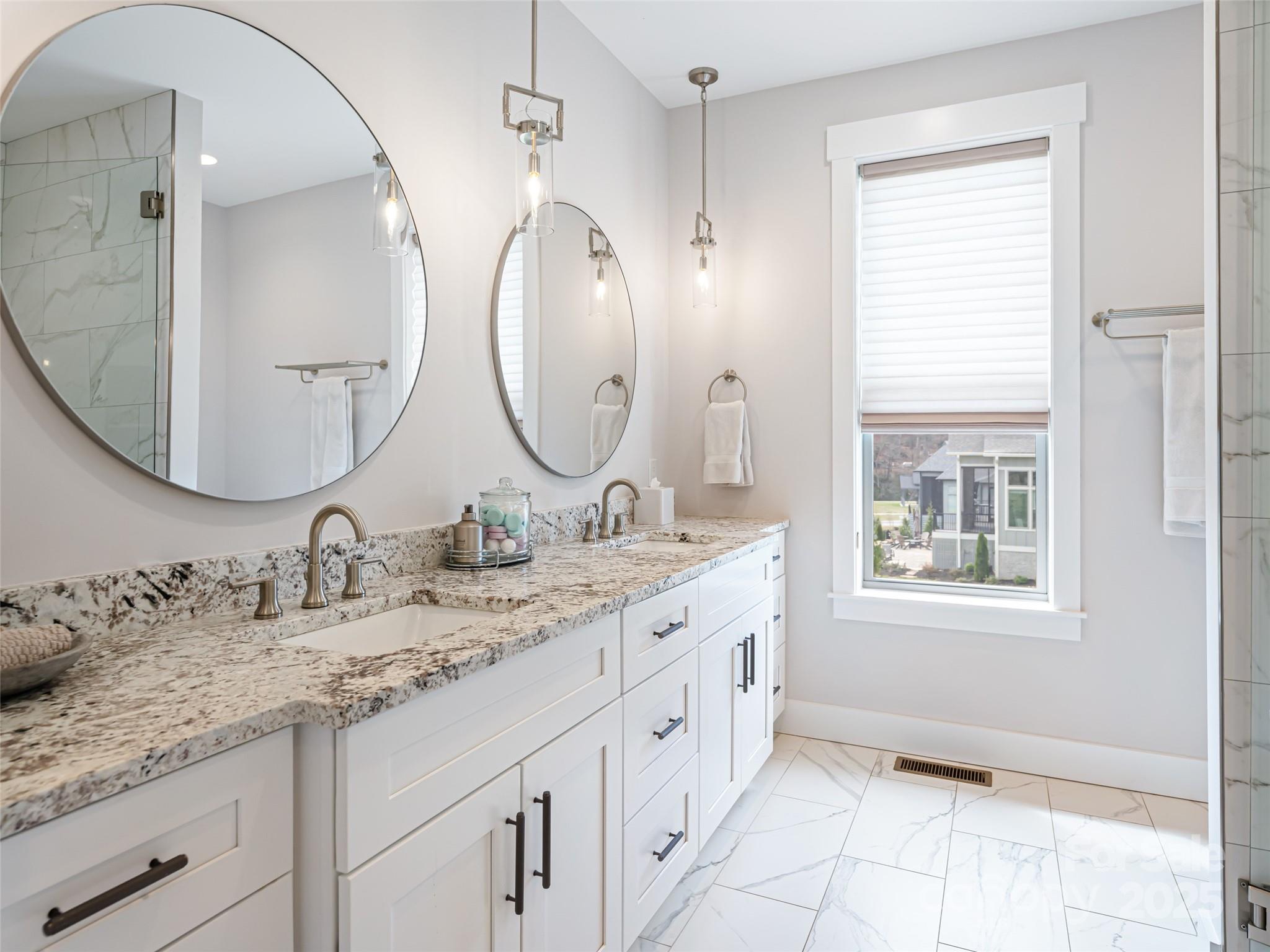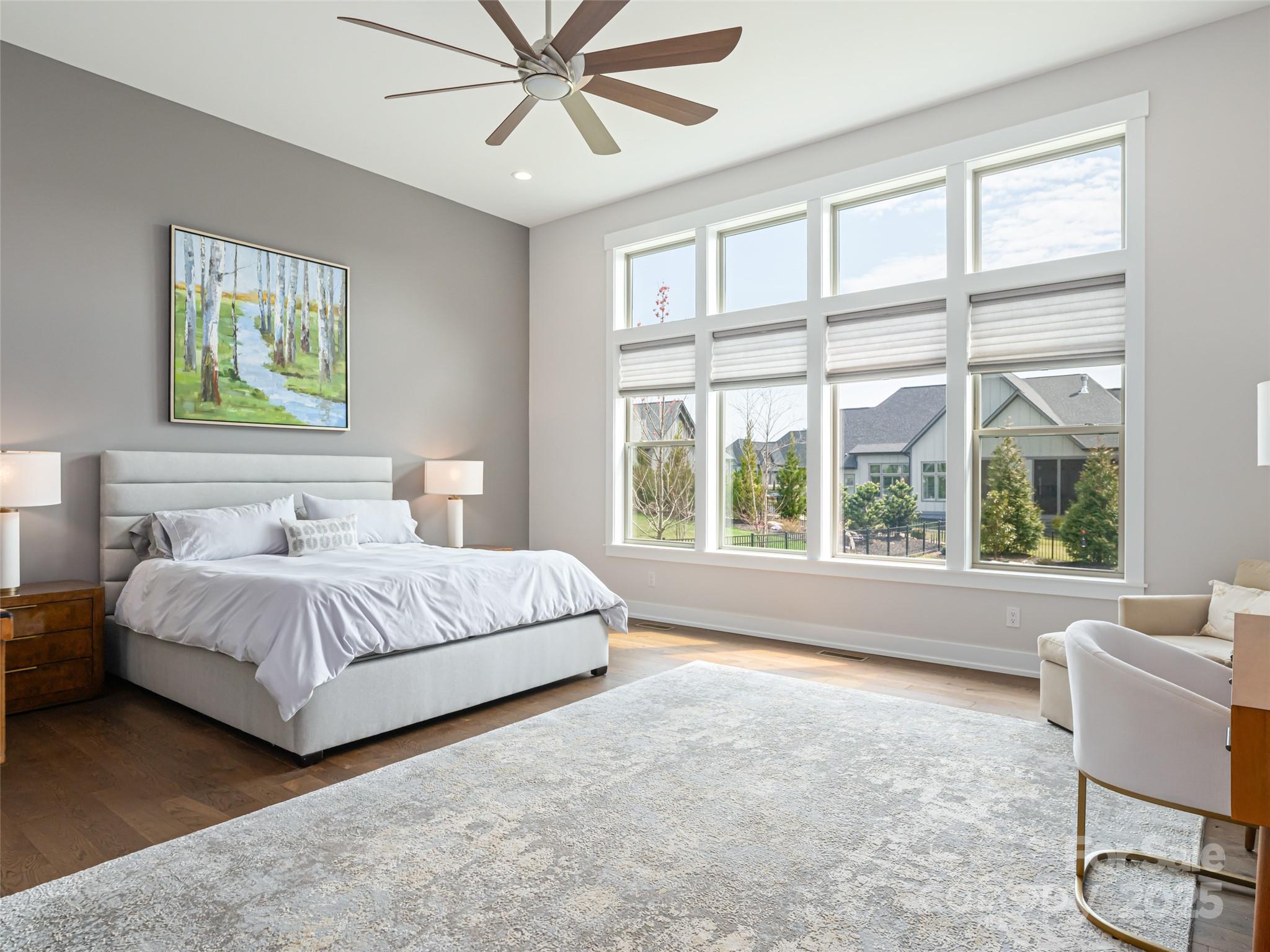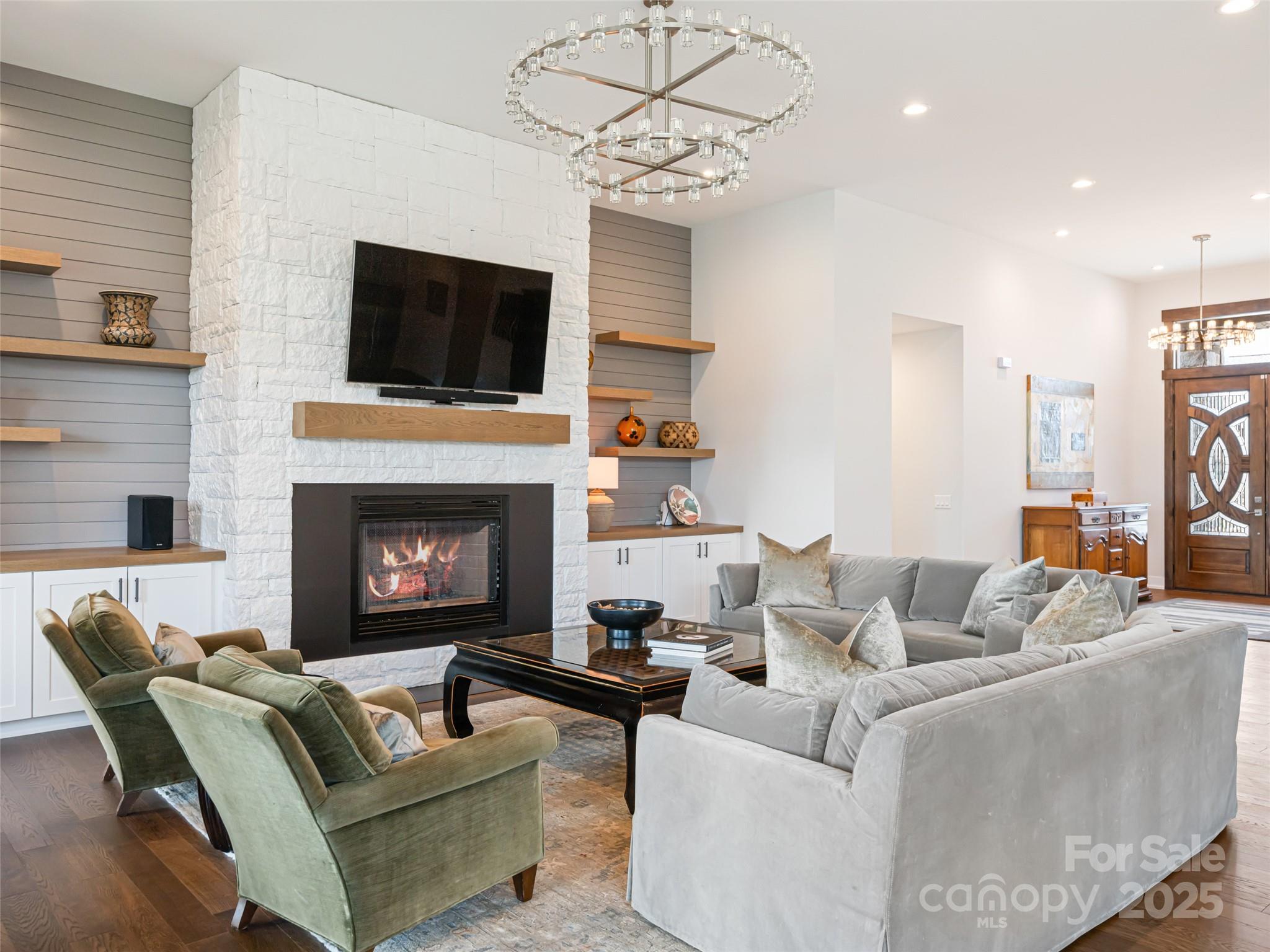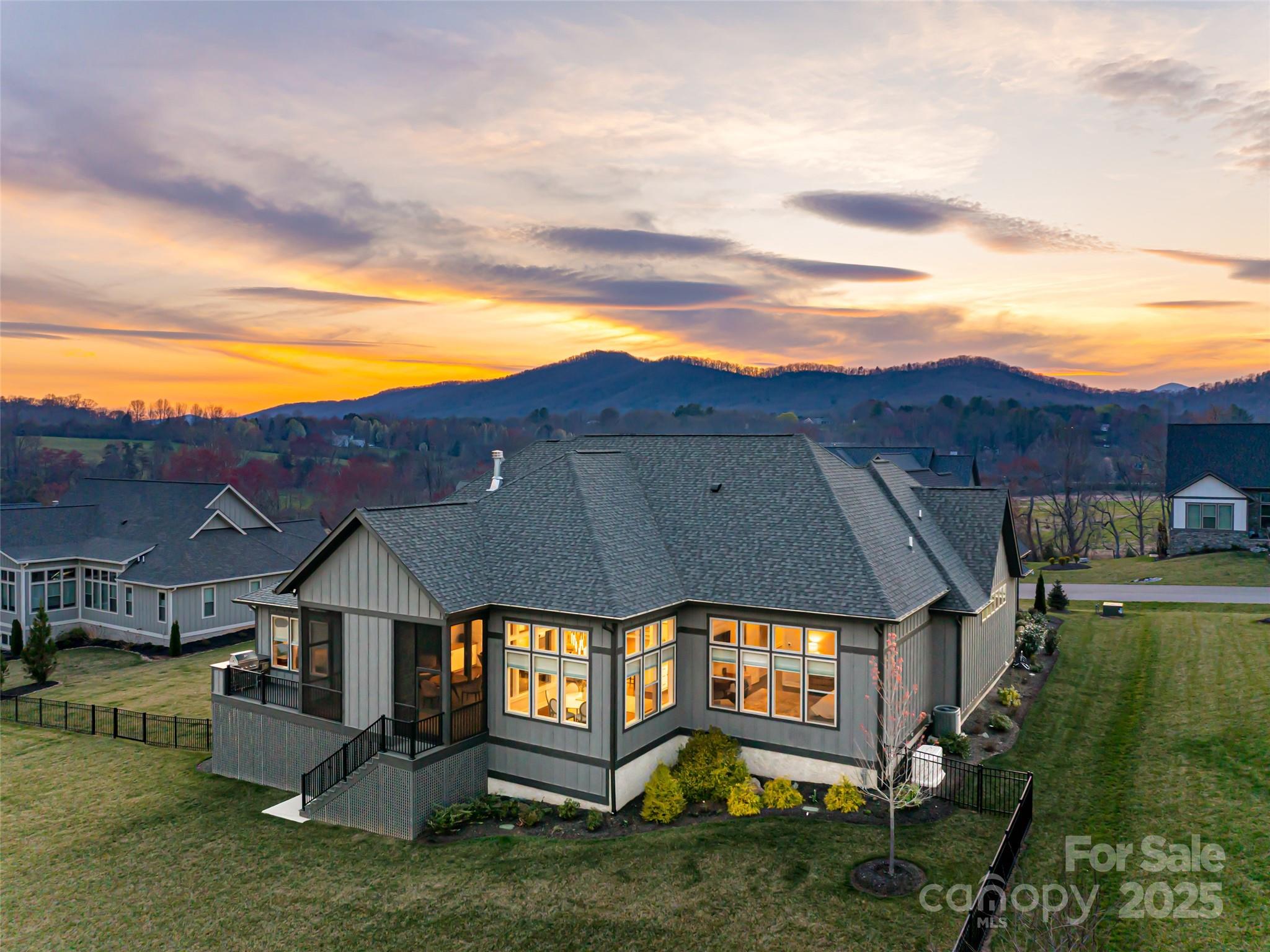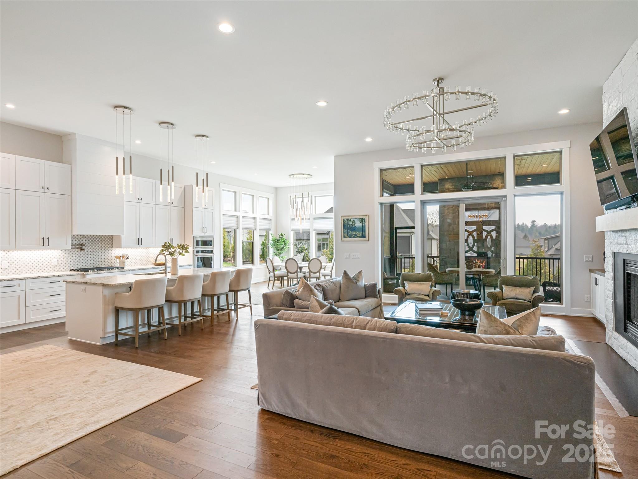 Nestled amid thoughtfully designed and fenced landscaping, this exquisite home showcases luxury and easy one-level living. Step inside to soaring vaulted ceilings, accentuated by Restoration Hardware lighting and an open-concept floor plan that seamlessly connects the spacious great room to a chef’s kitchen, where honed granite countertops, premium KitchenAid appliances, and an island create the perfect space for entertaining. Retreat to the fully screened porch complete with a stacked stone fireplace, the perfect backdrop for creating lasting memories. The primary suite is a serene sanctuary, boasting dual walk-in closets and a lavish bath with an indulgent double-entrance shower and deep soaking tub. Well-appointed guest suites provide exceptional comfort and privacy. French doors open to a large office with built in cabinetry. Designed for today’s living, there's a whole-house generator and EV charging station in the 3 car garage, ensuring low-maintenance & modern comfort.