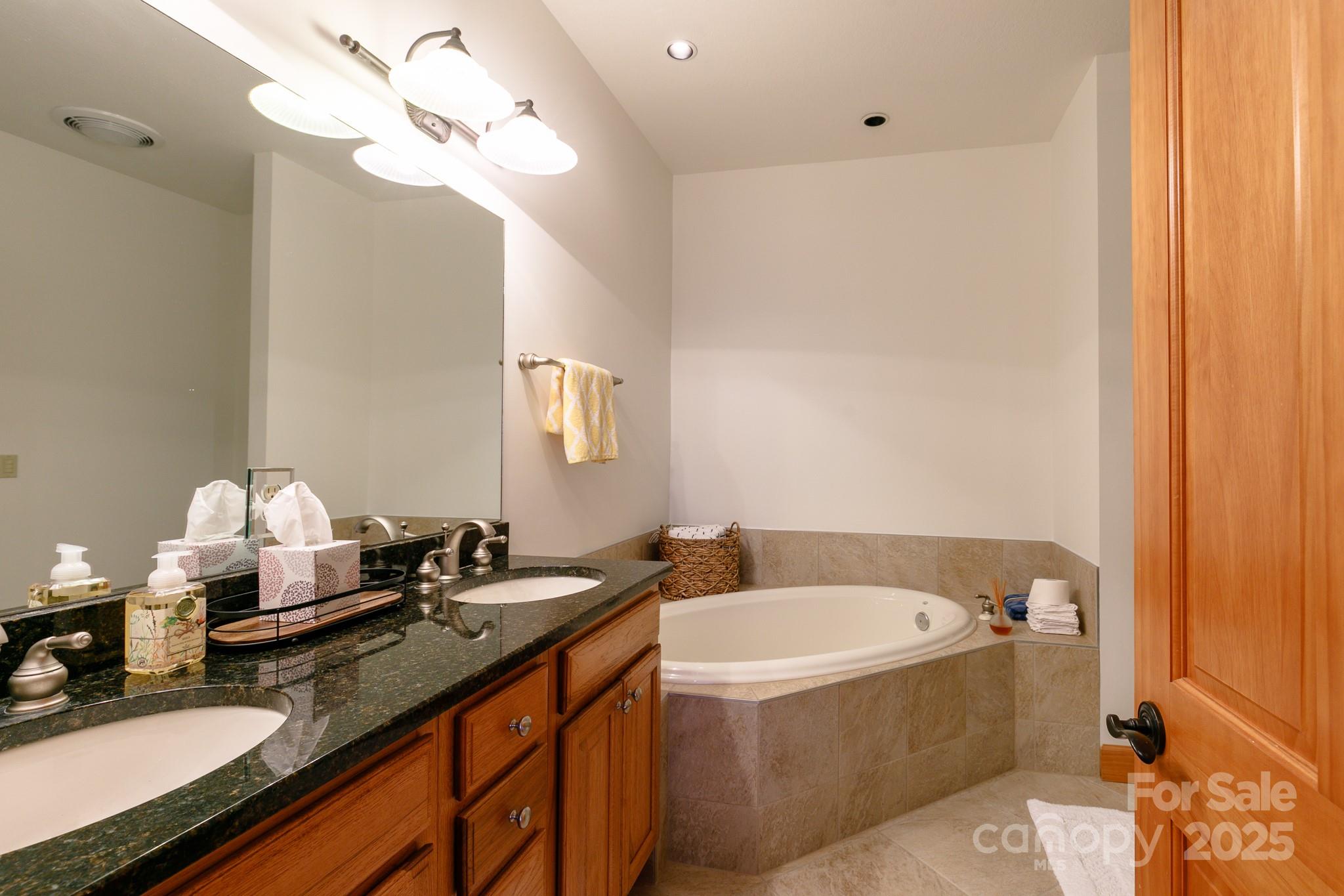 Hear the creek below from this beautifully maintained Austin View Villa at MOUNTAIN AIR with stunning long-range sunset mountain views. Great room offers 10' ceilings, hardwood floors, a stone gas-log fireplace, built-ins, and floor-to-ceiling windows. Covered view decks on both levels. Dining area opens to a screened porch with a second stone fireplace. The gourmet kitchen features granite counters, ample cabinetry, and a breakfast nook. The main floor primary suite has its own view deck; the tiled bath includes a soaking tub, separate shower, and double vanities. Also on the main floor: guest bedroom, full bath, and laundry. The lower level has a bonus room with built-ins—ideal as an office or family room—and another spacious bedroom suite with full bath. Golf cart garage and covered carport. FURNISHINGS ARE INCLUDED. Seller is willing to pay up to $15K toward buyers Social Club Membership with accepted offer; Golf cart included! MOUNTAIN AIR Club amenities available with membership.