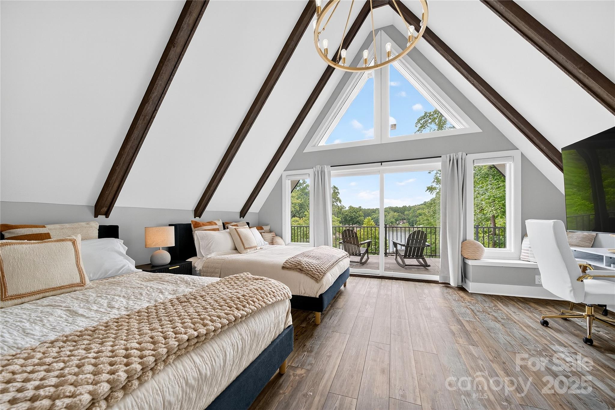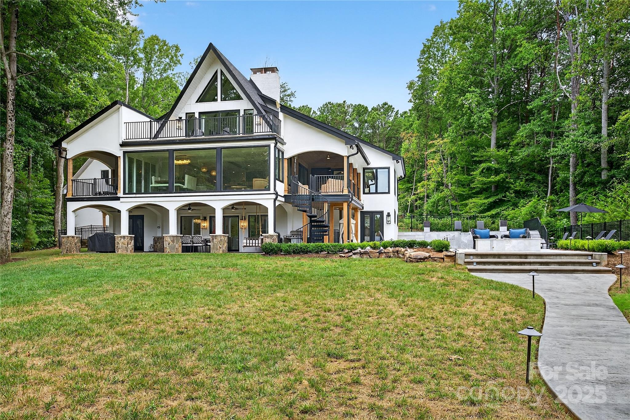 Lakefront Masterpiece meticulously rebuilt in 2023, this Lake Norman retreat offers over 700' of pristine shoreline. Originally taken down to the foundation, the home was completely reimagined as the builder’s residence with no detail overlooked. Designed for comfort & luxury, the open-concept floor plan features a stunning waterfall entry, high-end appliances, fireplaces, & an elevator. The primary suite is located on the main level, with additional bedrooms & laundry on each level. Step outside to enjoy a heated pool & hot tub, surrounded by luxury travertine, professionally designed landscaping, custom lighting, & an irrigation system. The updated 2024 dock & kayak stand provides direct access to the lake—detached 3-car garage with an unfinished upper level. The garage completion is underway, with sleek black doors to be installed. Previously operated as a vacation rental, the property boasts a profitable history, making it a compelling investment opportunity or a private retreat.