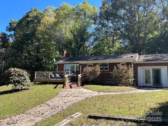 BRAND NEW SURVEY PROVIDED TO BUYERS! Welcome to this charming one-story brick home on almost an acre in the rolling hills just outside Waynesville, offering stunning mountain views. With 1,358 sq. ft. of comfortable living space, this home blends warm wood finishes with practical upgrades and outdoor amenities. The recently completed Trex deck with a gentle sloped ramp to enter the home is perfect for entertaining or enjoying a quiet morning coffee, while the covered front porch provides a relaxing spot to take in the scenic surroundings. Inside, the home features two bedrooms, one and a half baths, a den with built-in bookcases, and a cozy living room with a fireplace that doubles as a secondary heat source. The kitchen offers ample cabinetry, counter space, roll-out shelves, and room for cooking or entertaining. The roomy hall closets offer additional storage for seasonal clothes, decorations, and more. Additional highlights include a garage basement for parking, storage, or workshop space, a tall detached carport for oversized vehicles, a storage building, and a quaint potting shed. A whole-house generator, oil furnace backup for the electric heat pump, and propane fireplace ensure year-round comfort and peace of mind. Washer, dryer, and refrigerator convey with the home. With easy access via paved public road, privacy, and mountain charm, this property is ideal as a forever home or mountain retreat.