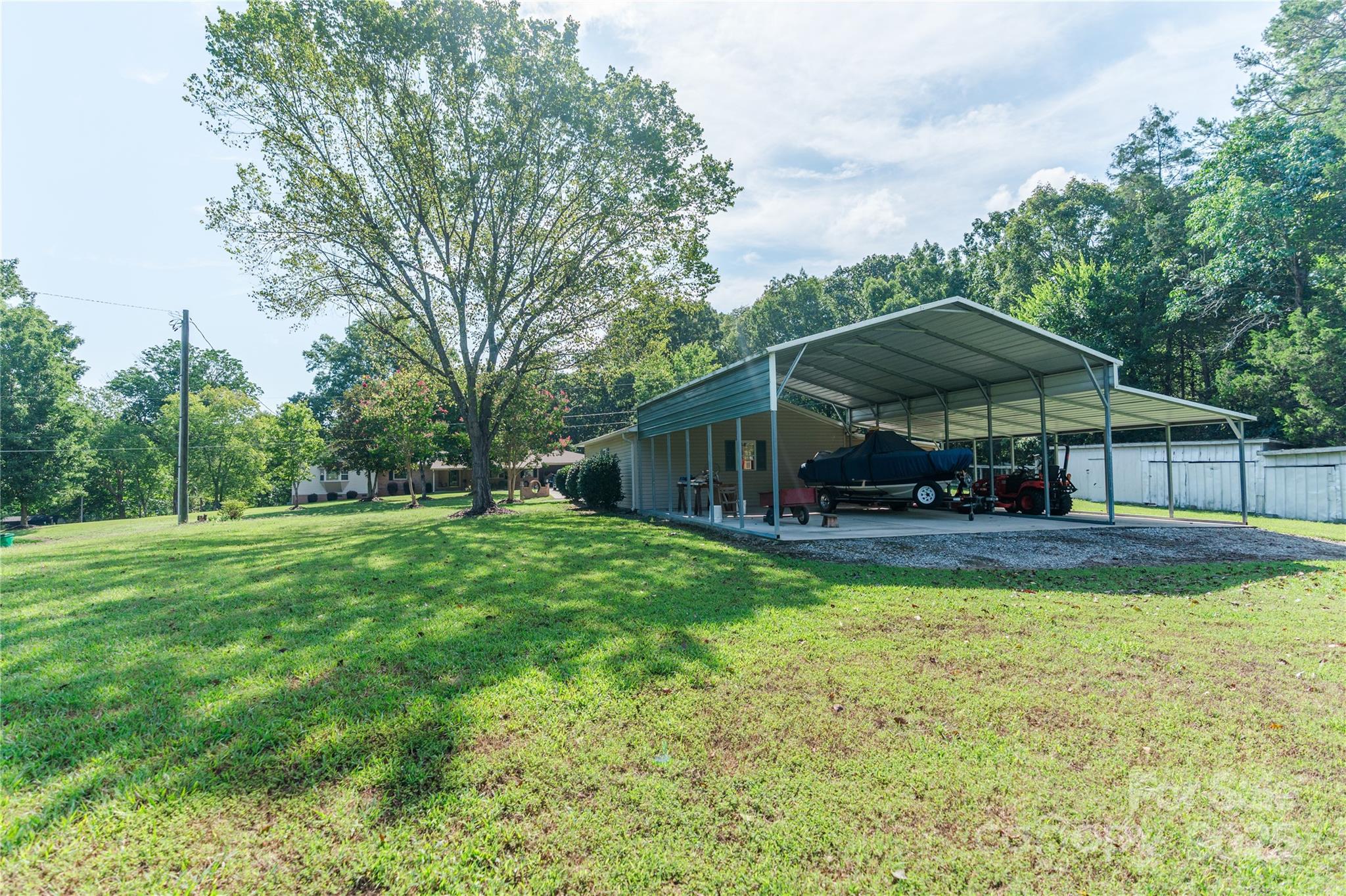 Wow! Take a look at this country estate. Beautifully updated brick ranch with walk out basement situated on 3.70 private acres. Family room with wood floors and wood burning fireplace. Nicely appointed kitchen with island and plenty of counter space. Large dining area with small office adjacent. Two guest bedrooms with wood floors one with own suite. Updated hall bathroom. Large owner suite addition with walk in closet and access to 3 seasoned porch. Large own suite bathroom with garden tub in bay window. separate walk in shower and his and hers vanities. Basement has large game room with wood burning fireplace, study (sellers are currently using as a fourth bedroom), a full bathroom and large laundy room. Additional storage. Large patio. Across the street is a detached 2 car garage with carport for additional parking.