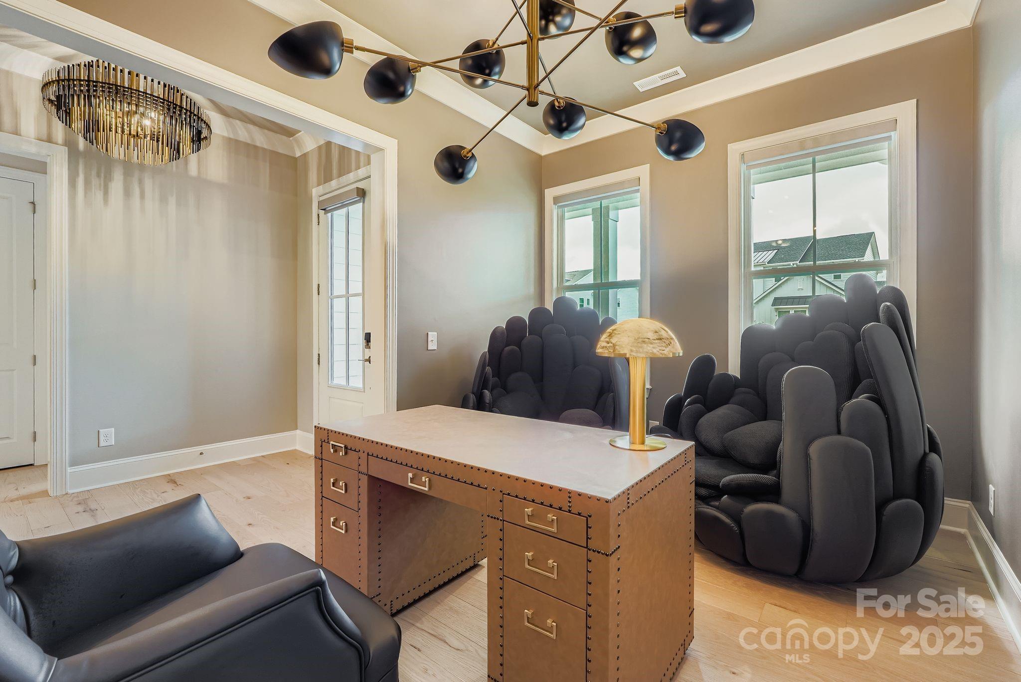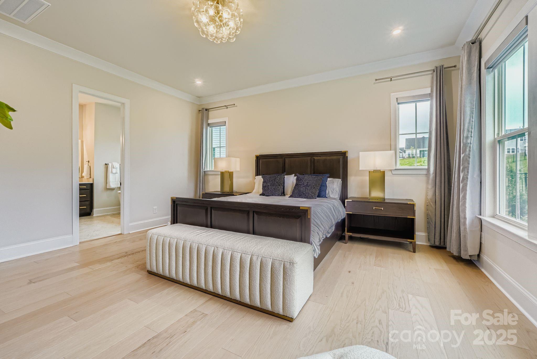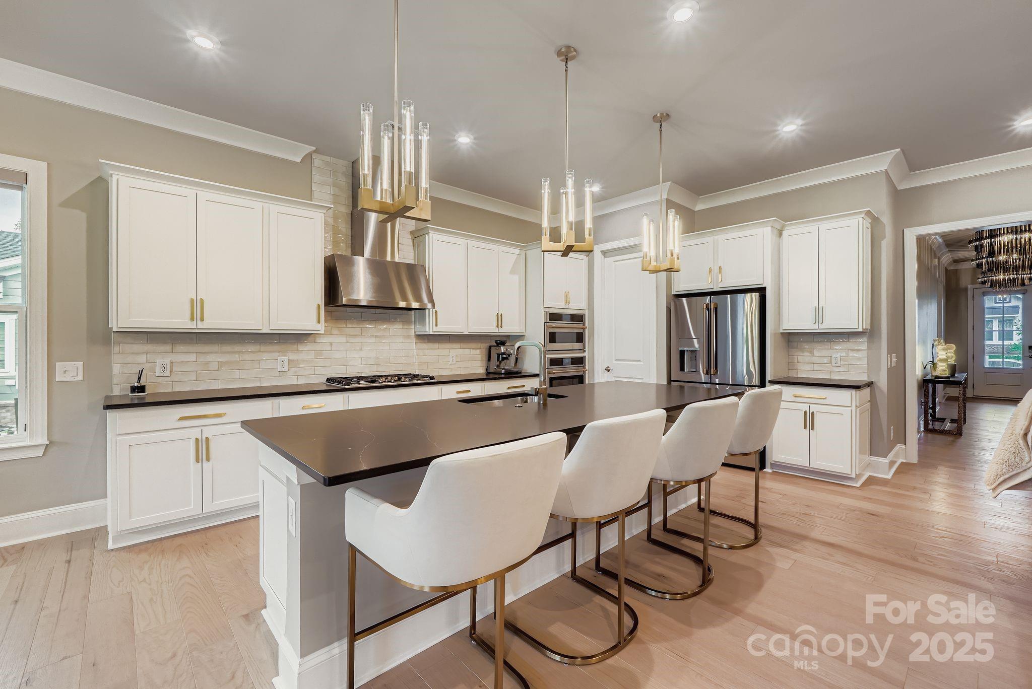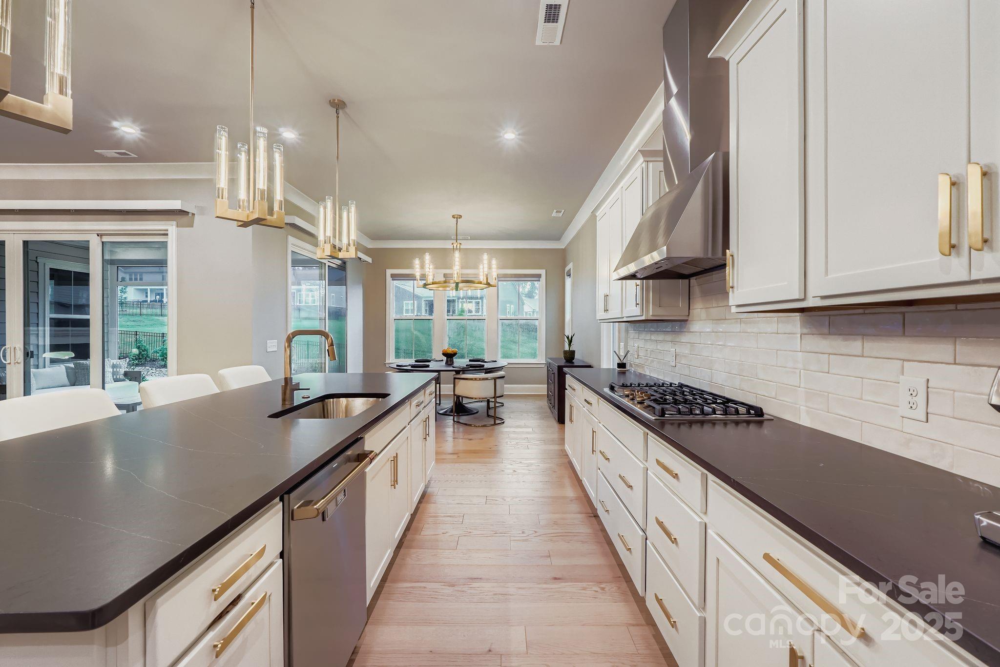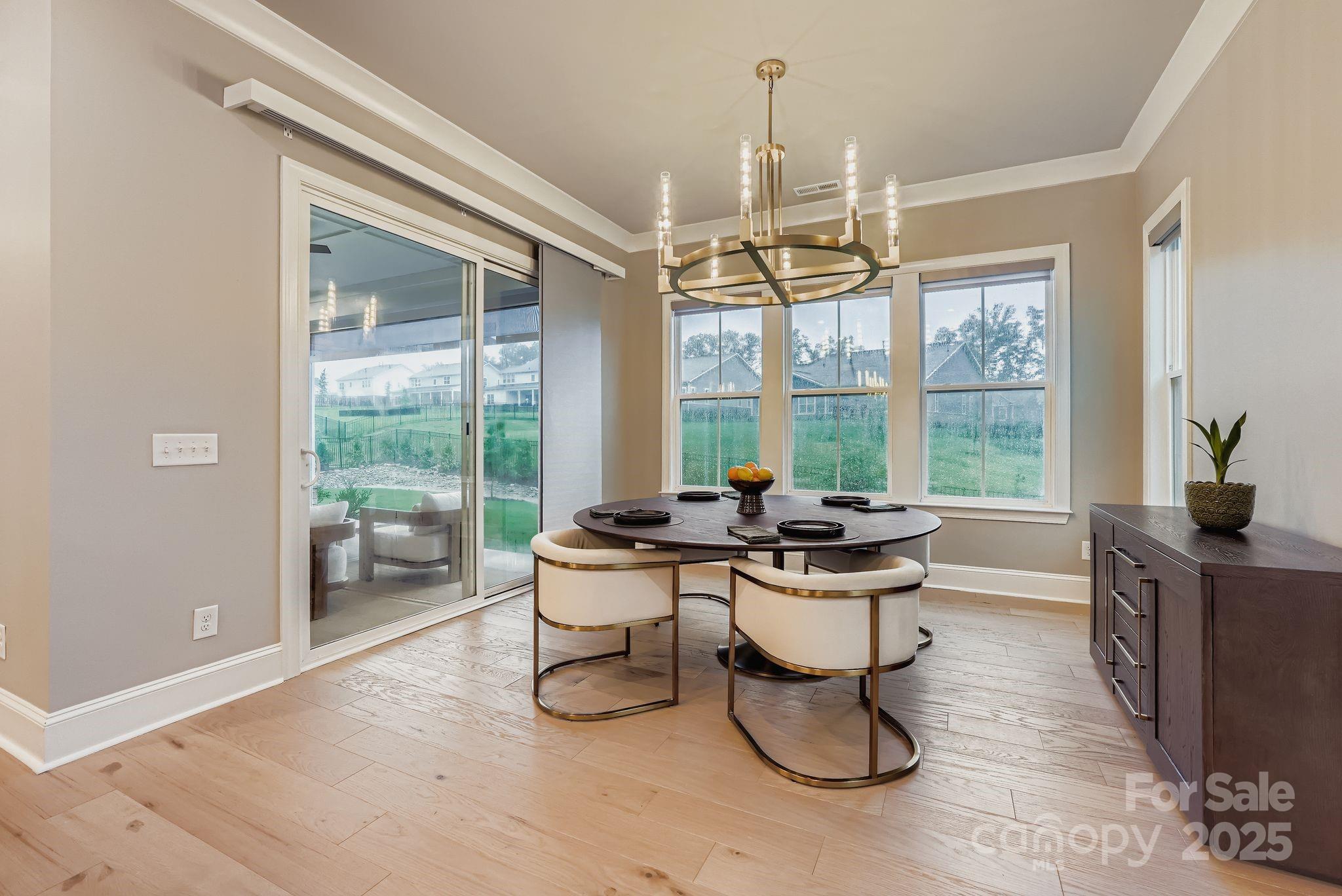 Stunning luxury home nestled into the premier South Shore community at Mclean, is lake living at it's finest. The community features a Club House, Dog Park, Fitness Center, Lake Access, Outdoor Pool, Picnic Area, Playground, Pond, Recreation Area, Street Lights, Walking Trails and is steps away from Mclean and Harbortowne Marinas plus waterfront dining at Drift. The one story open floor plan boasts 10' ceilings, crown molding and hardwoods throughout. They are tastefully accented with Restoration Hardware and Arhaus style lighting. The gourmet kitchen is updated with Energy Star Cafe' appliances including a 30” Café Smart Oven, 30” 240v Café 5-in-1 Advantium Oven, 36" gas cooktop and GE commercial vent hood. Custom closets feature rotating shoe racks. The primary bathroom includes a tile shower with seat and freestanding tub. There are smart roller blinds and smart roller shade for covered back porch. Too many upgrades to list, you must come tour this one of a kind property in person.