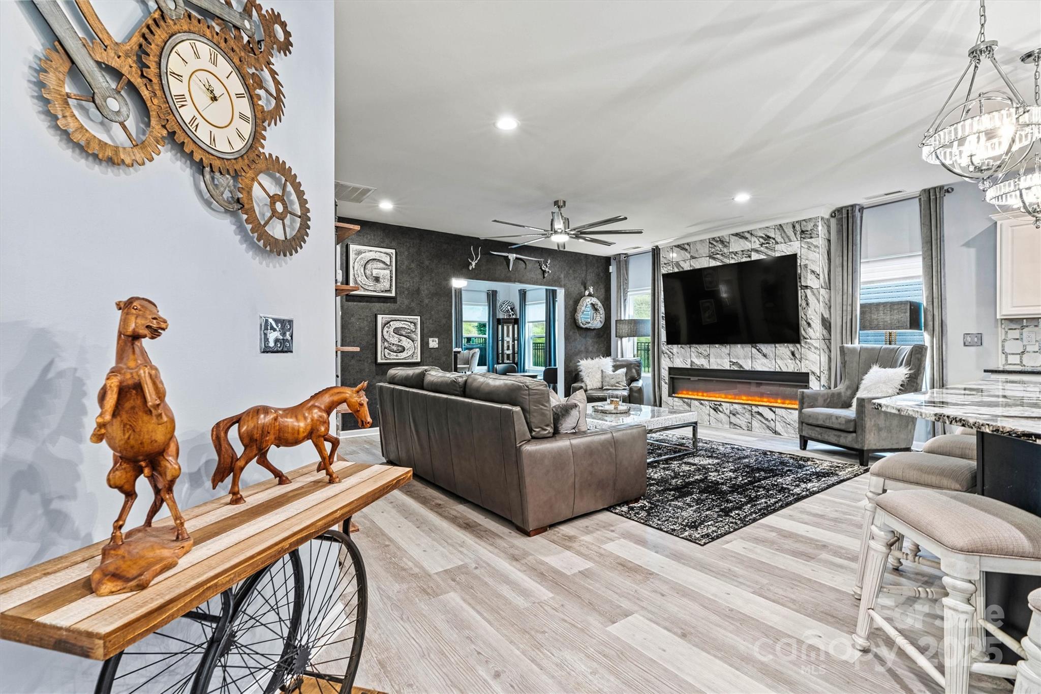 Welcome to 7809 Creek Park Drive — where thoughtful design and modern comfort come together. This 3-bed, 3-bath home with 2,552 sq ft offers an inviting layout with the primary suite conveniently on the main level. Inside, you’ll find custom wall moldings, stylish lighting, and a stunning 6-ft modern fireplace anchoring the open living space. The kitchen features a Carrara marble backsplash and designer finishes that make it feel one-of-a-kind. Enjoy the sunroom filled with natural light, a fenced backyard with pergola and privacy berm, and a low-maintenance lifestyle with lawn care and trash pickup included in the HOA. Nestled in a quiet community with a pool and close to Denver conveniences, this home is designed for easy living and elegant entertaining. Recently adjusted to $507,000, offering exceptional value for the quality and location. Come see what makes this one stand out! Located just 6 miles from boat access and LKN’s new swim beach, and close to shopping, dining, and highways! Multiple items will remain.