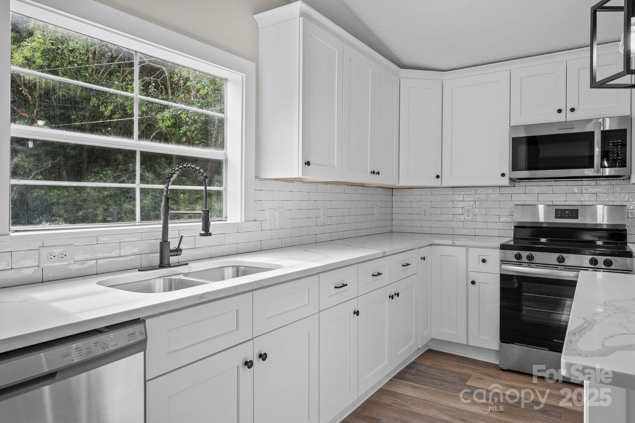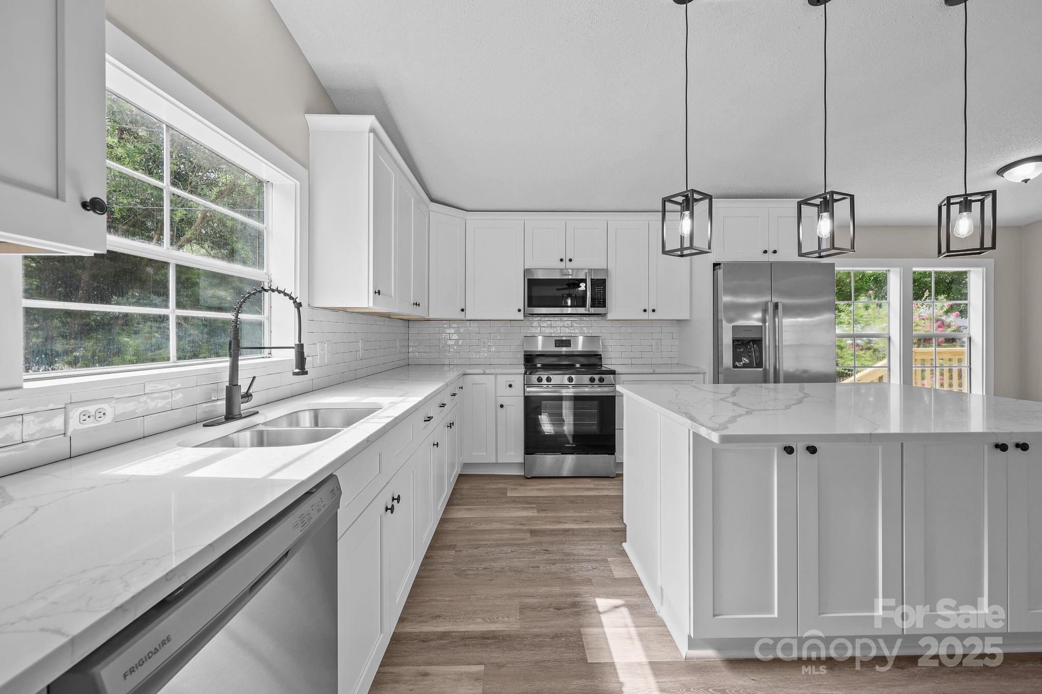 This fully renovated 3-bedroom, 2-bath home on a corner lot in Kannapolis offers modern updates and everyday comfort. Inside, you’ll find brand-new laminate flooring, freshly installed sheetrock, and new paint throughout, giving the home a clean, contemporary feel. The kitchen has been completely upgraded with new cabinets, quarts countertops, a stylish backsplash, a spacious center island, and brand-new stainless steel appliances. Both bathrooms feature new vanities, with the primary bath showcasing a relaxing tub, separate walk-in shower, and a large walk-in closet. The two additional bedrooms are bright and roomy, perfect for family, guests, or a home office. Situated in a lively area of Kannapolis, this home is close to local restaurants, shopping, parks, and everything the community has to offer.